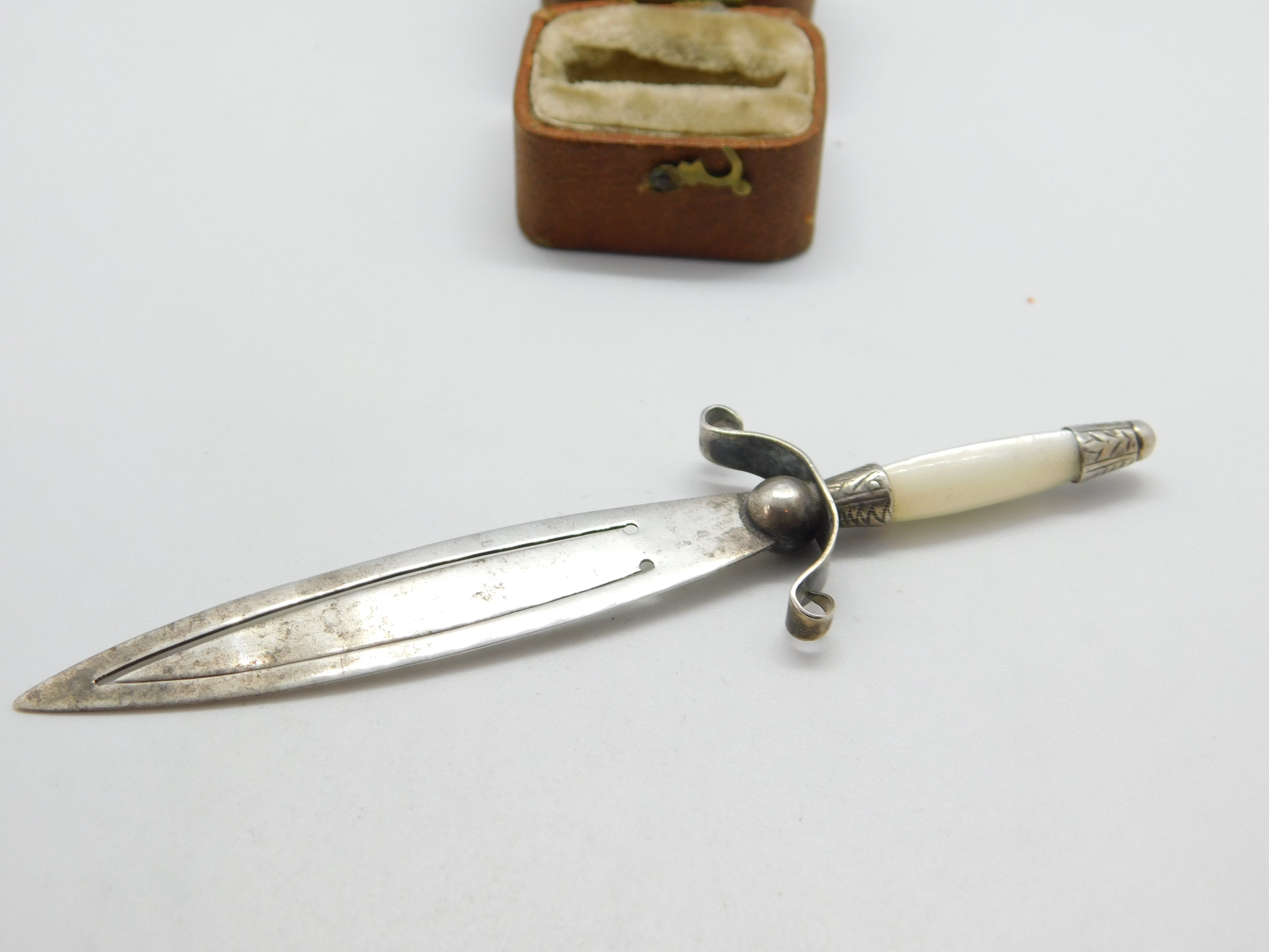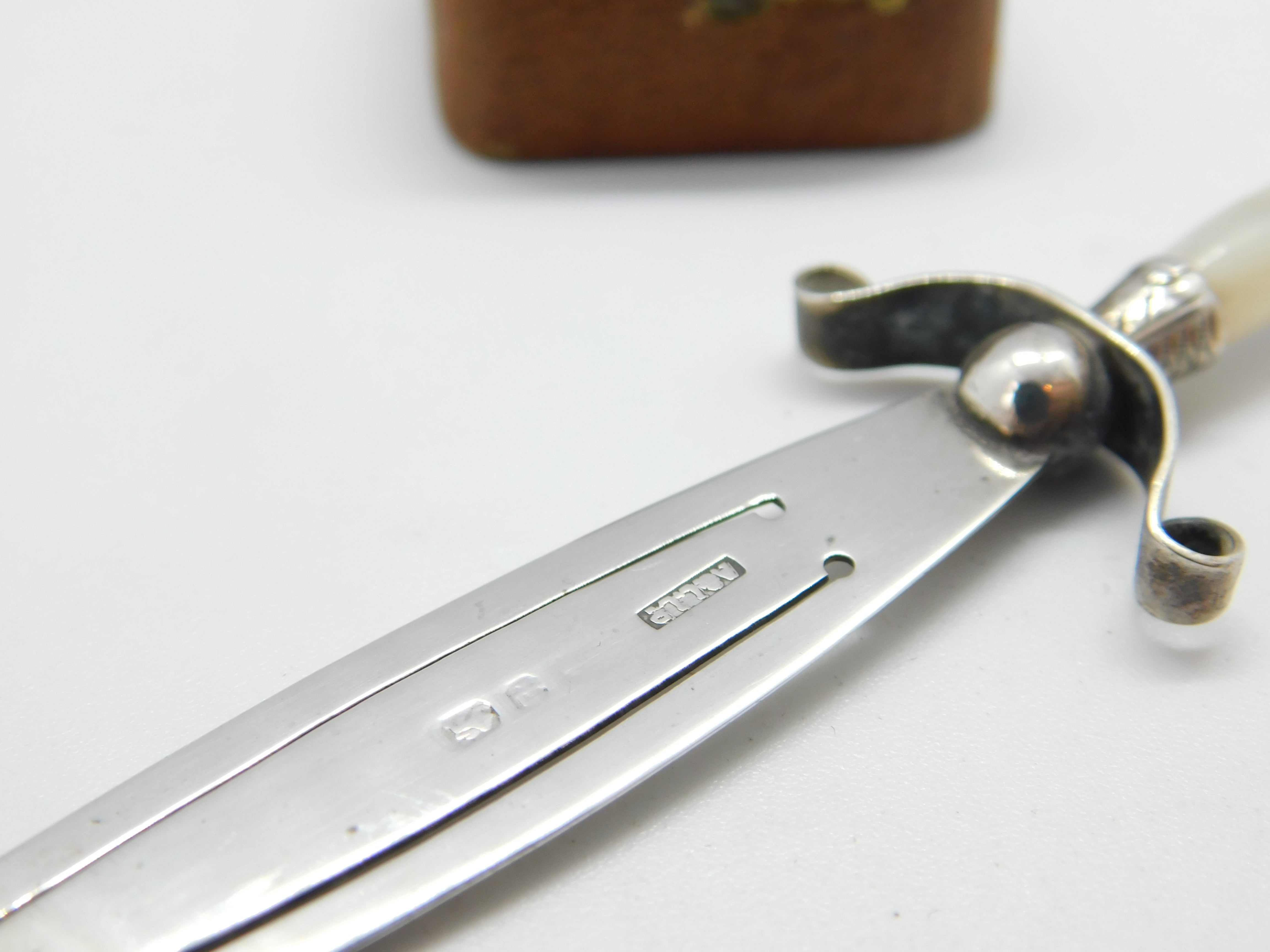 Details: A fantastic and wonderfully designed antique Victorian sterling silver & mother of pearl sword shaped bookmark with lovely detailing hallmarked Birmingham 1889 by Adie & Lovekin. This is a wonderful item that would make a perfect gift or addition to any collection. The BOX pictured is for PRESENTATION ONLY and is NOT included in the listings but used to frame the pictures unless specifically stated otherwise.
