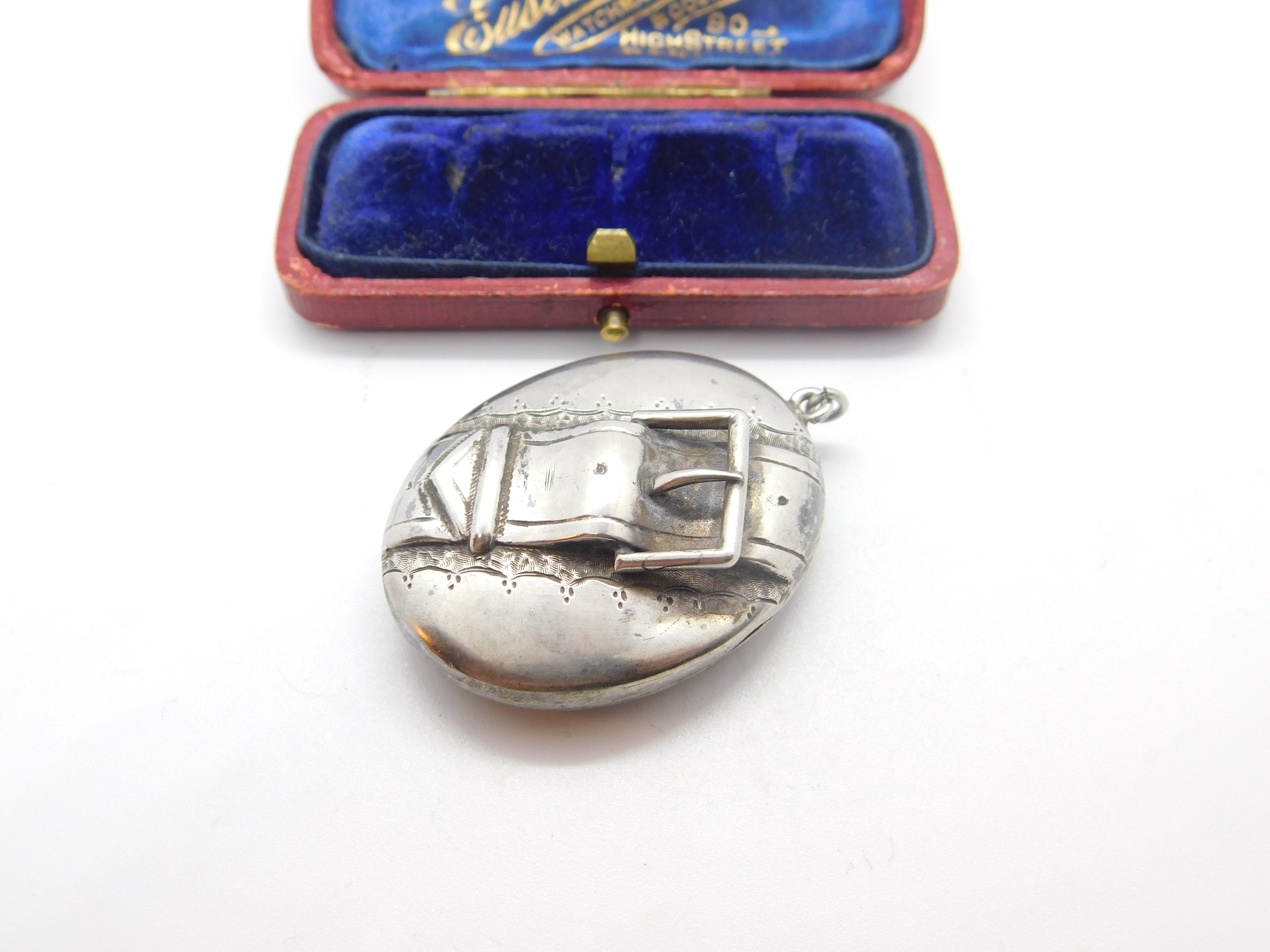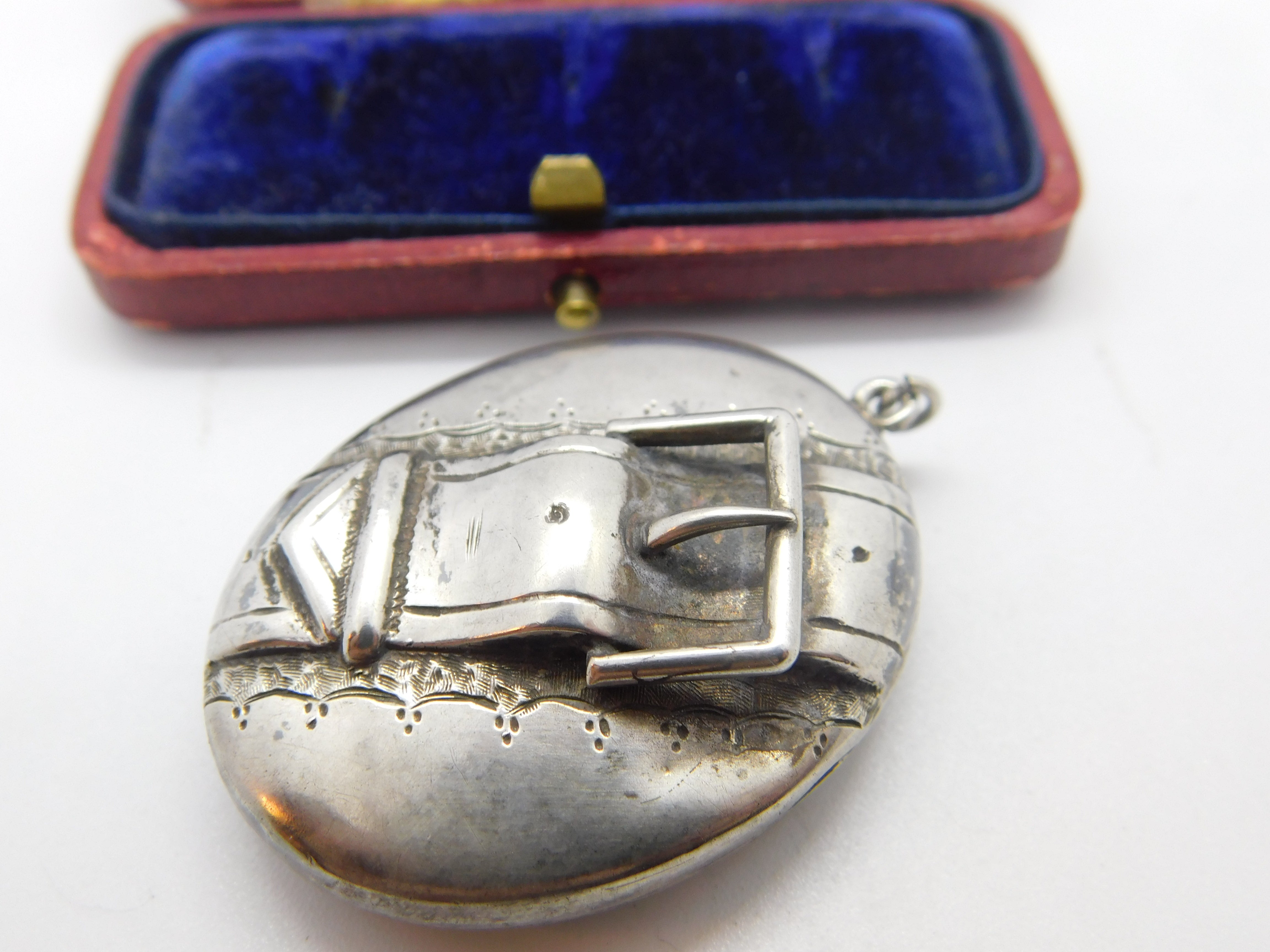 Details: A fantastic and wonderfully designed antique Victorian sterling silver buckle form mourning sweetheart locket pendant with lovely design c1860. This is a wonderful item that would make a perfect gift or addition to any collection. The BOX pictured is for PRESENTATION ONLY and is NOT included in the listings but used to frame the pictures unless specifically stated otherwise.