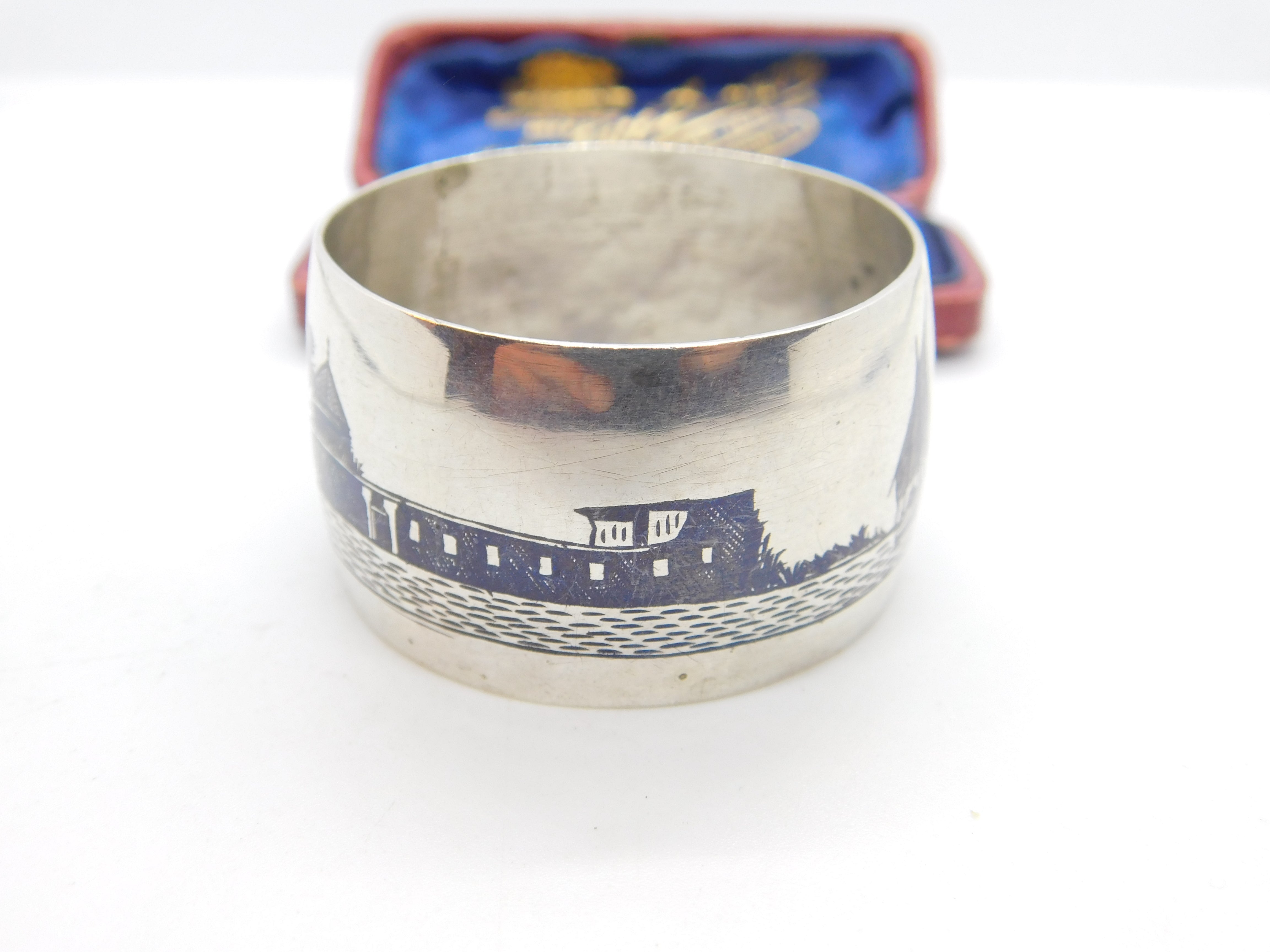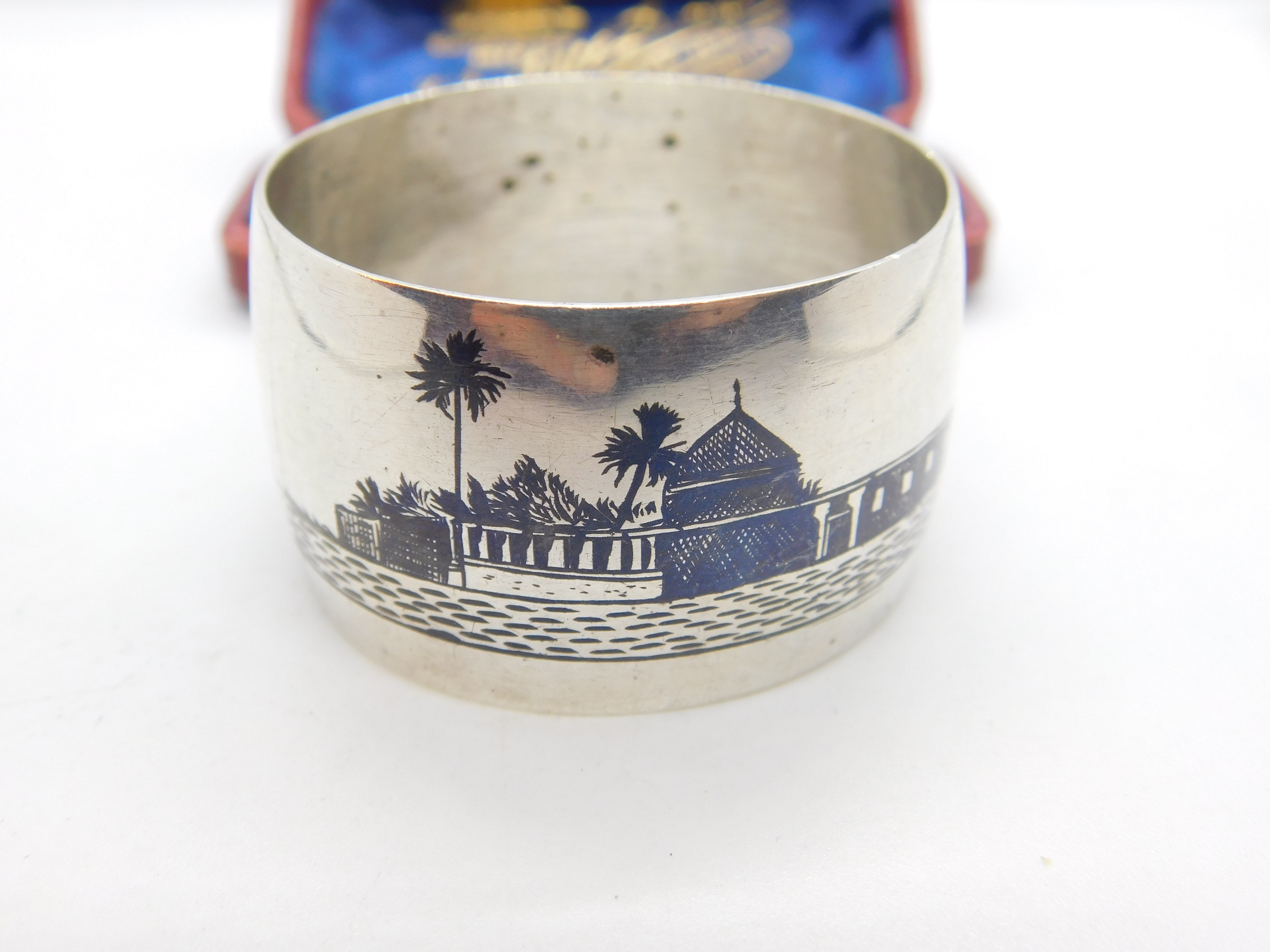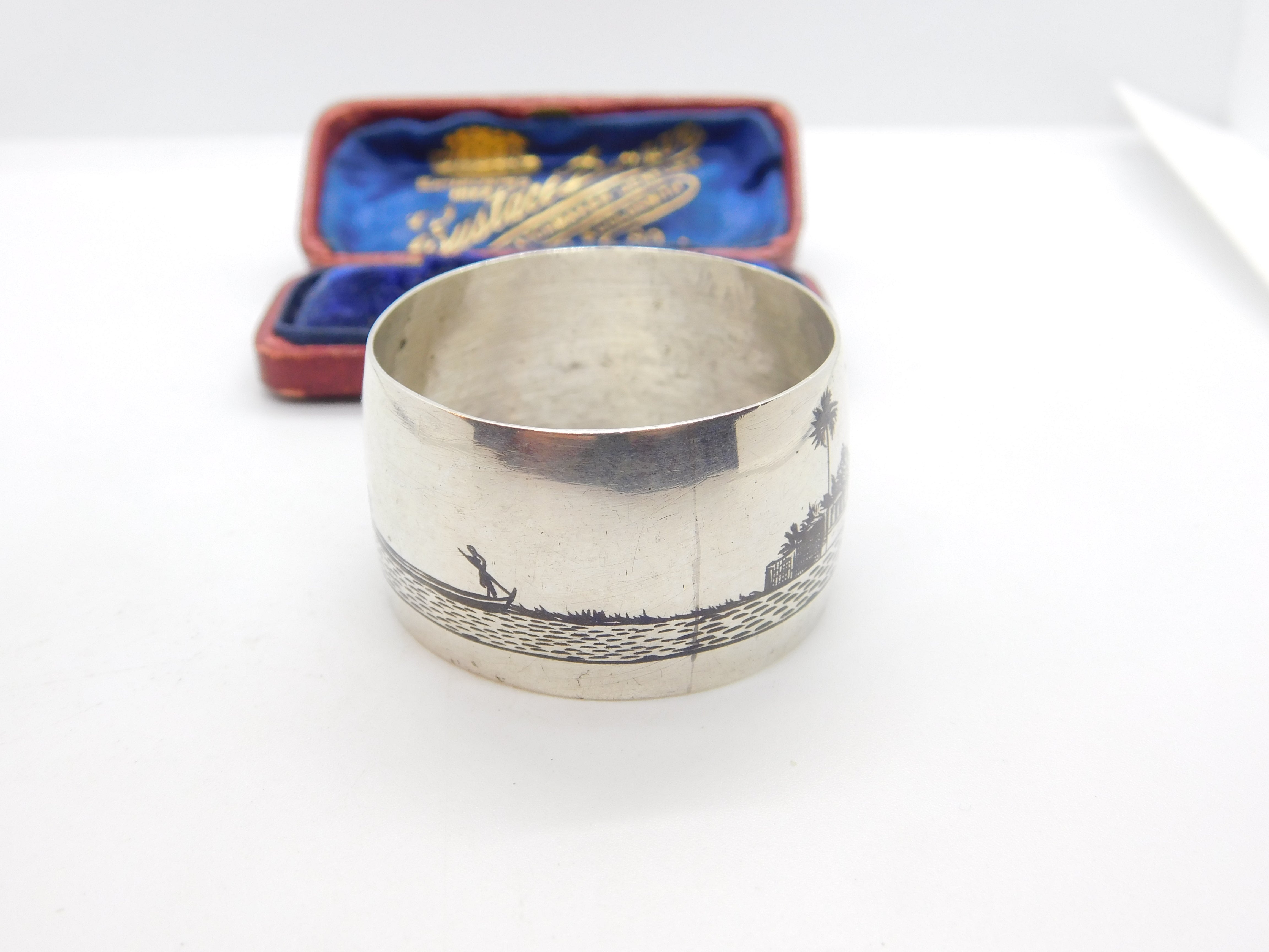 Victorian Sterling Silver & Niello Enamel Scene on the Nile Napkin Ring c1890