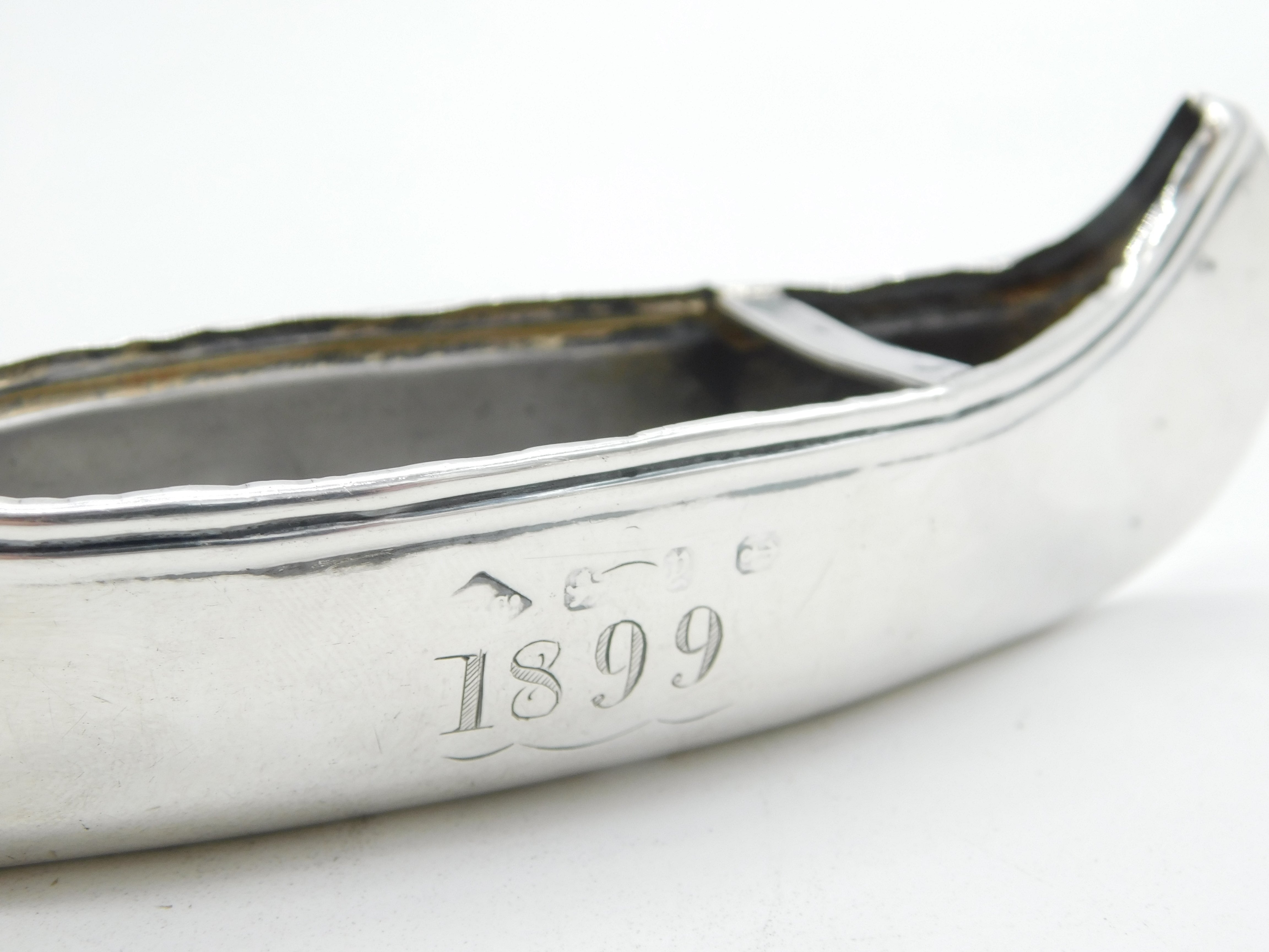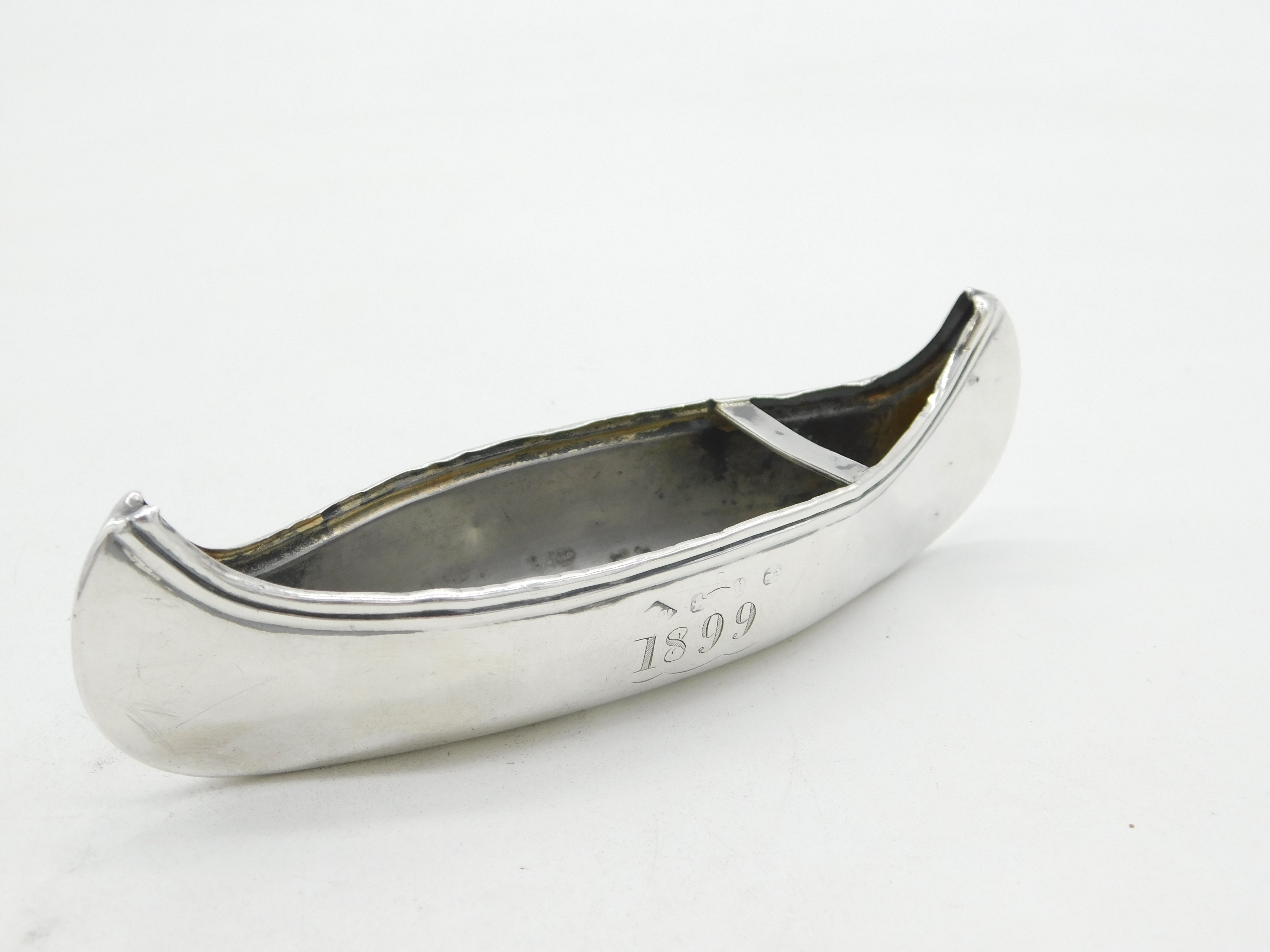 Victorian Sterling Silver Novelty Presentation Canoe Boat Salt Antique 1898 Birmingham