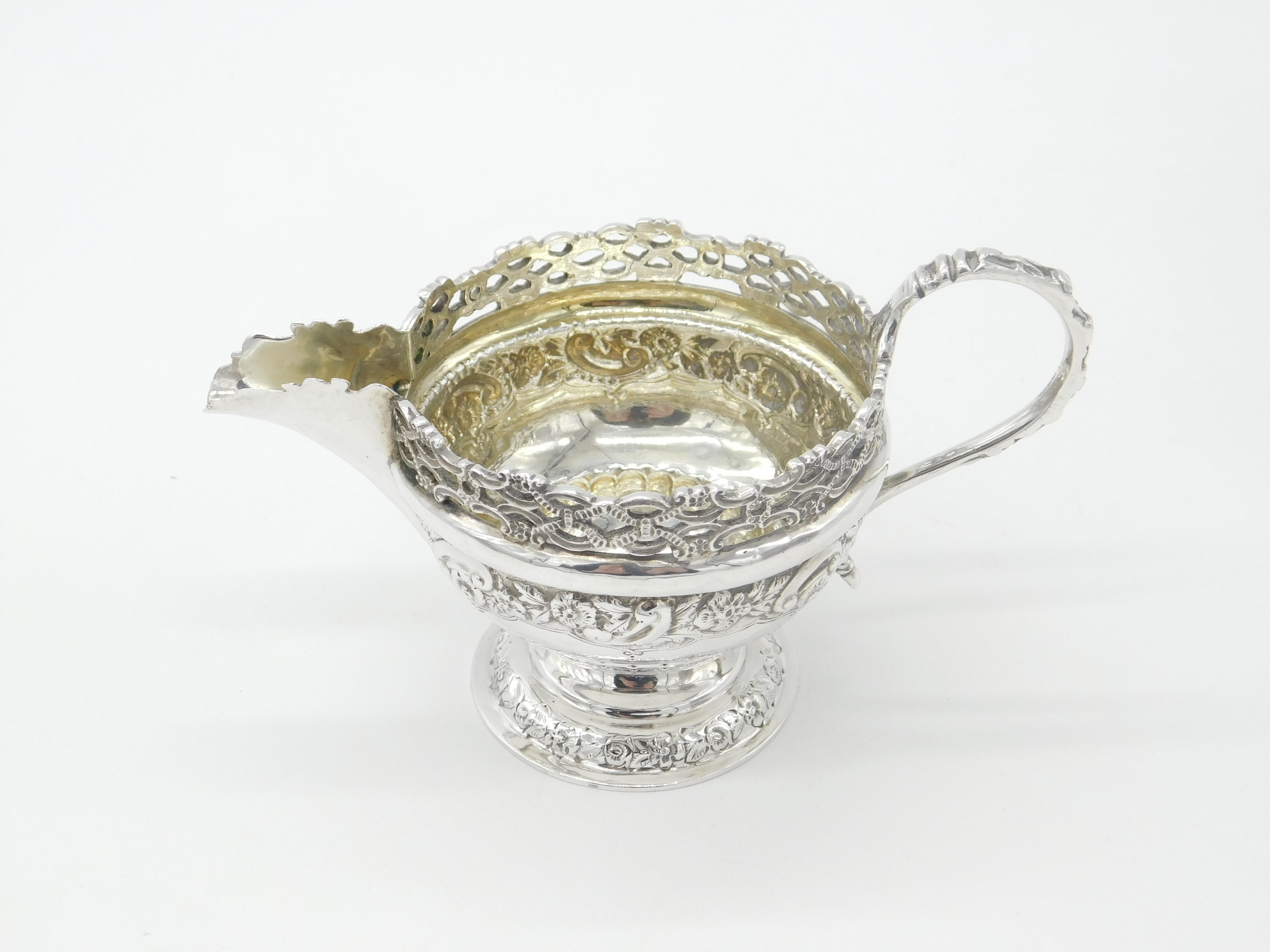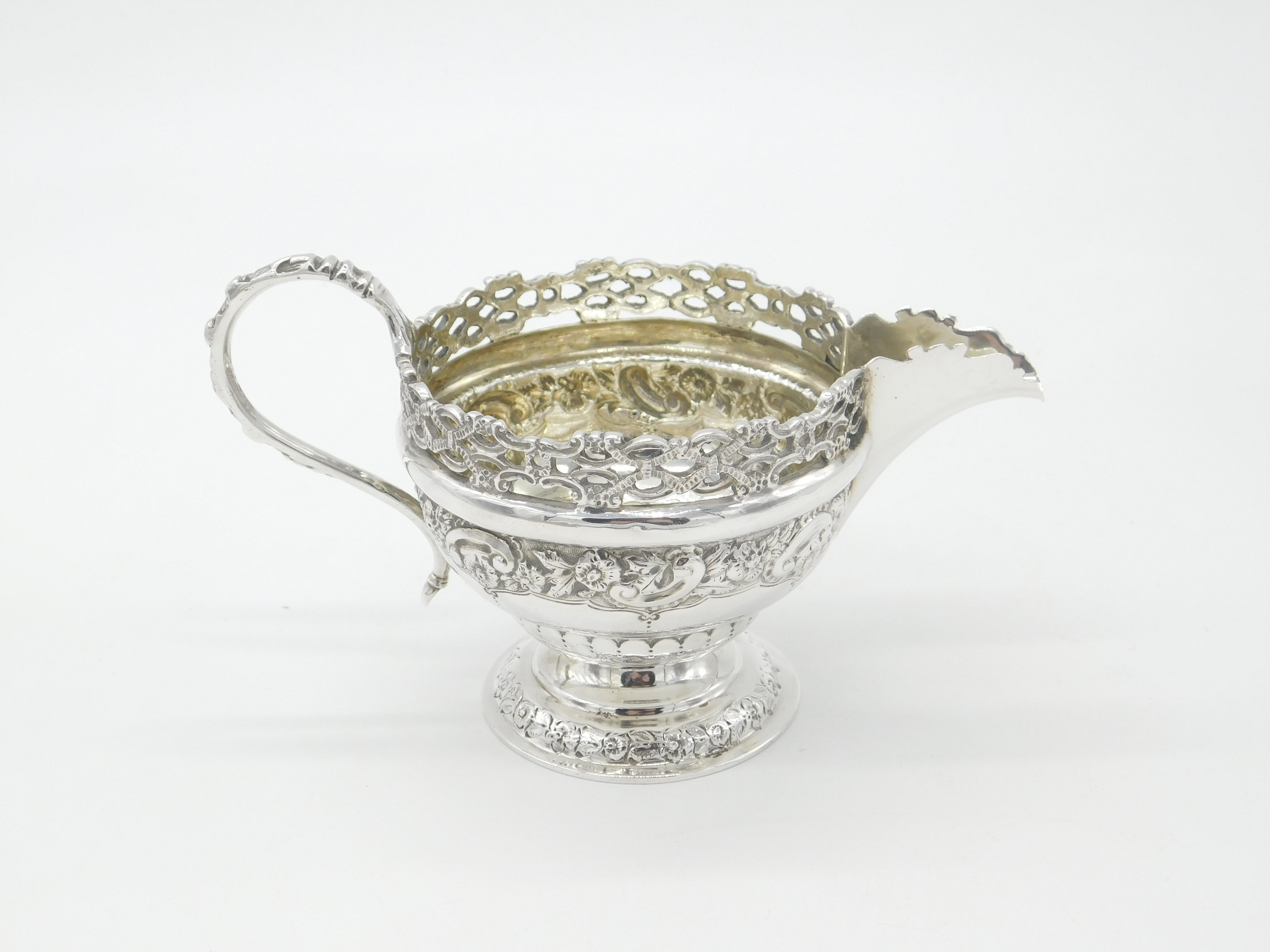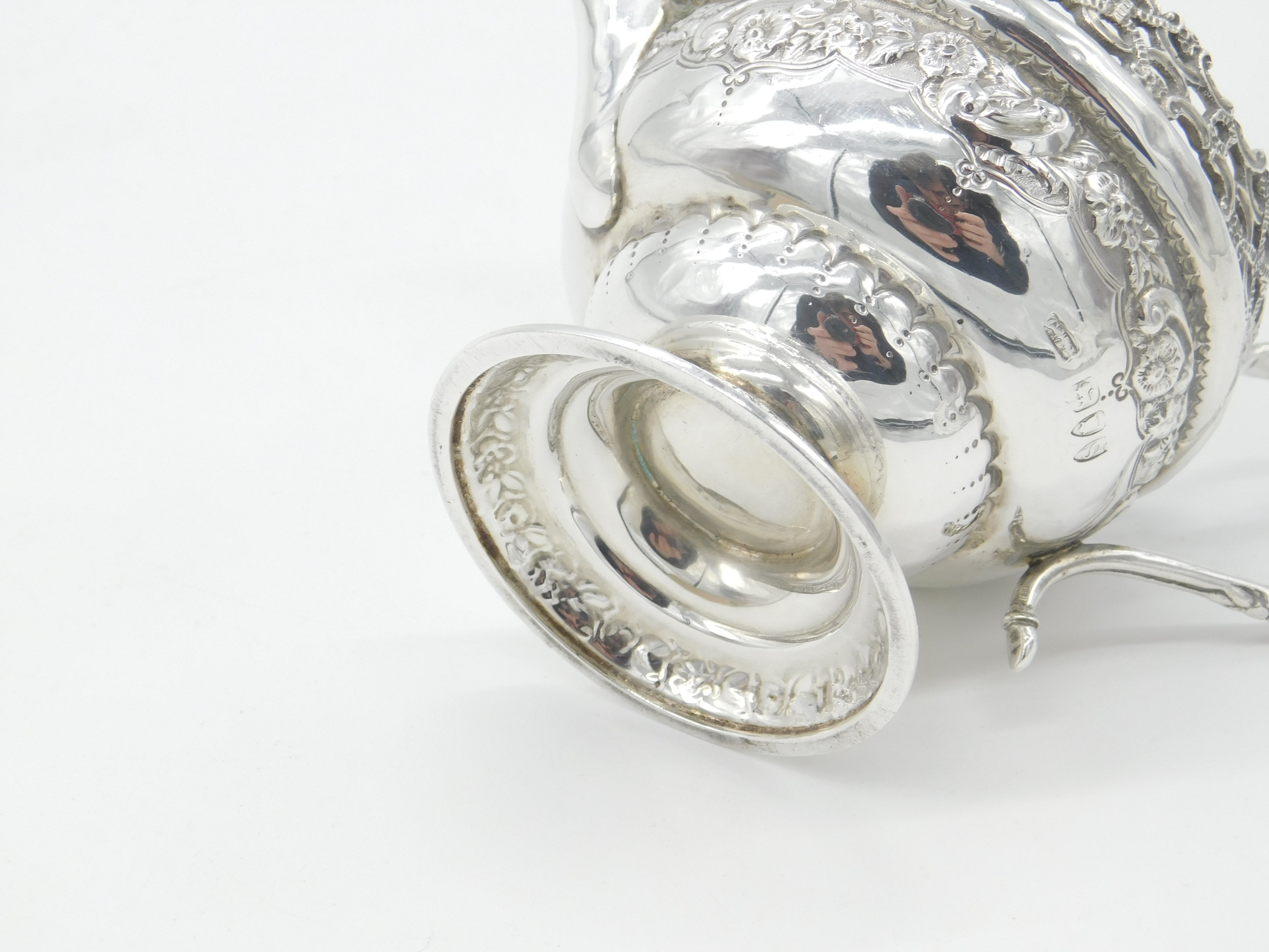 Victorian Sterling Silver Ornate Floral Decorated Cream Jug 1893 London Antique