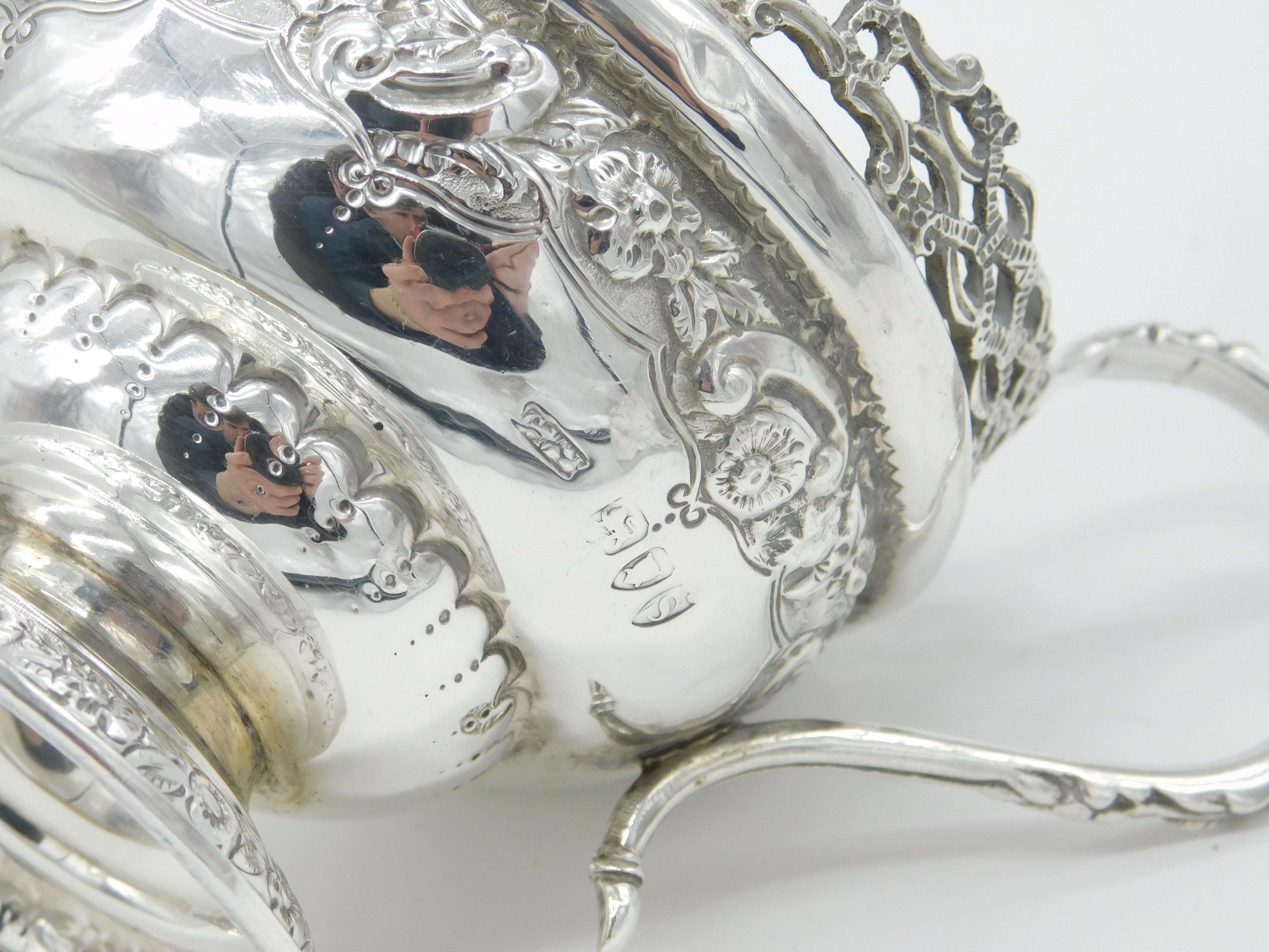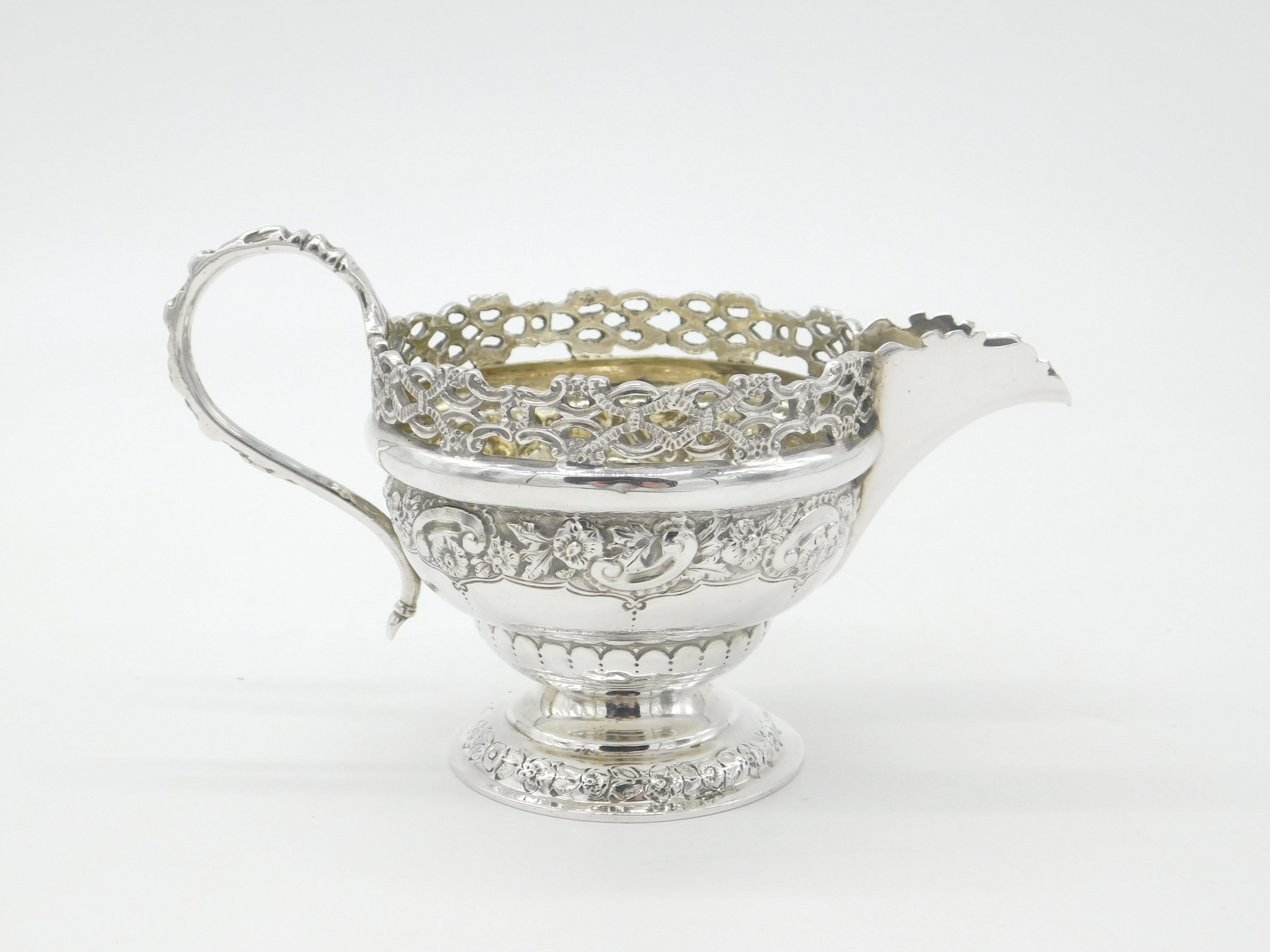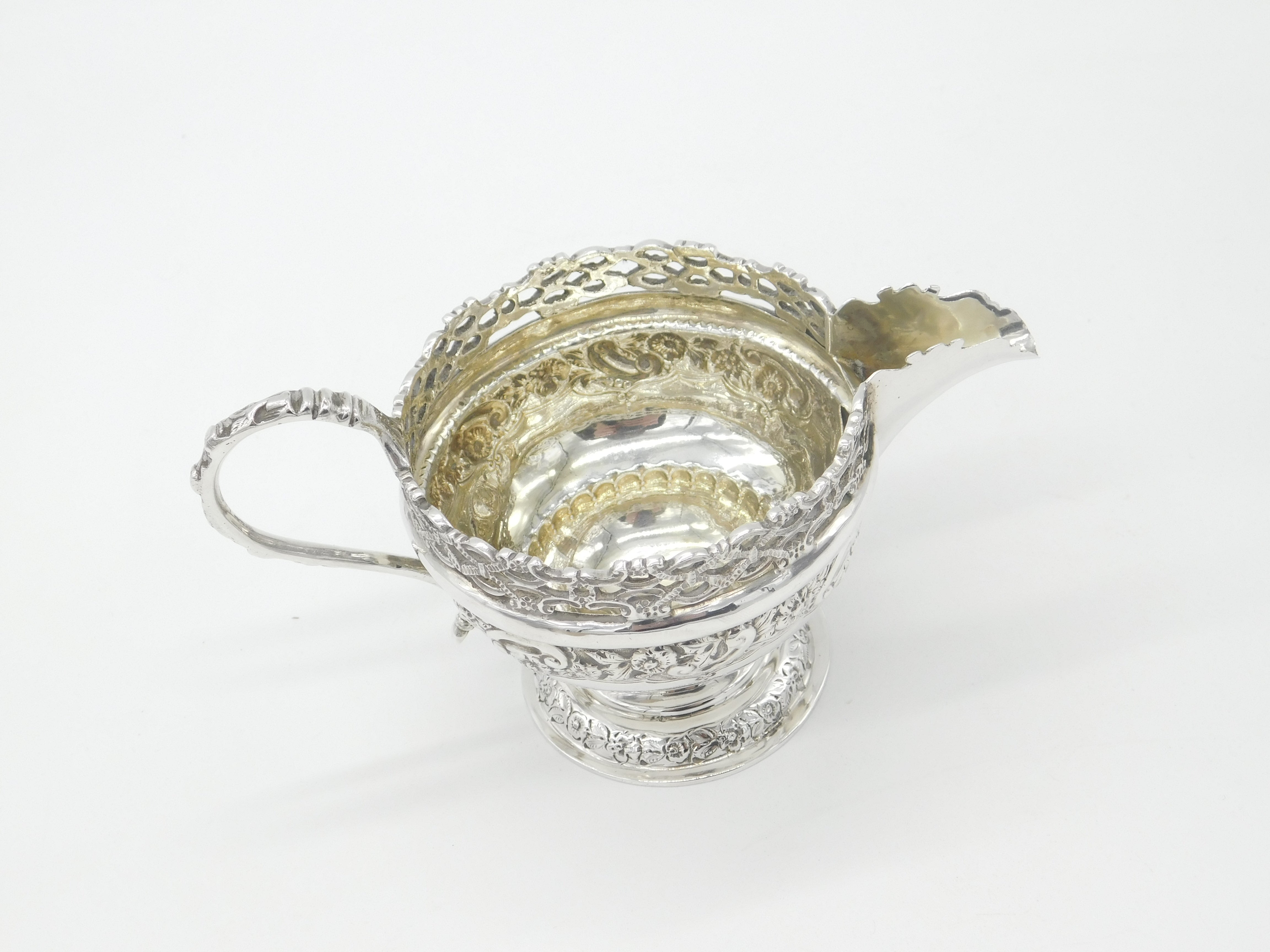 Victorian Sterling Silver Ornate Floral Decorated Cream Jug 1893 London Antique