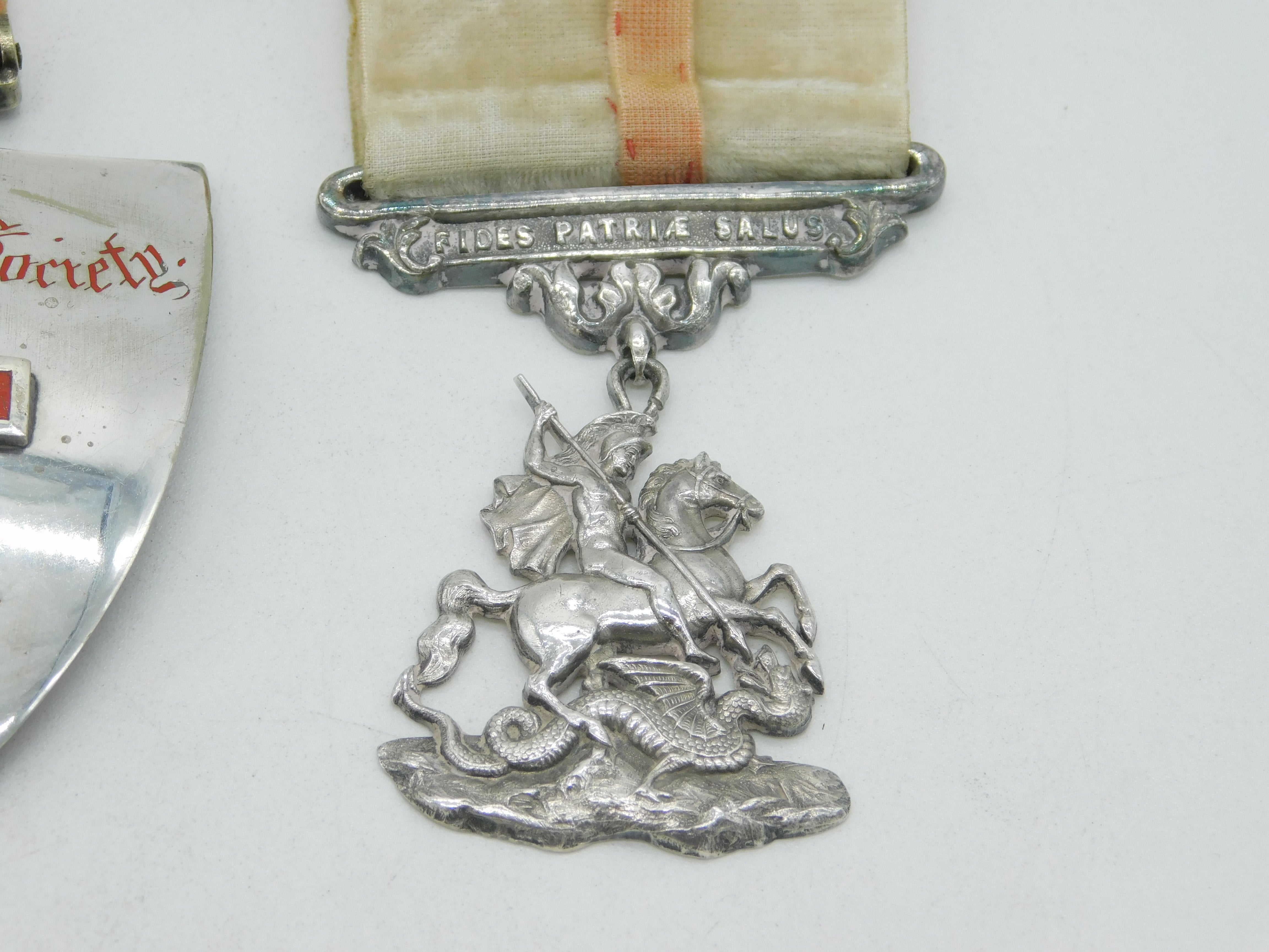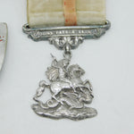 Details: A fantastic and wonderfully designed antique Victorian pair of Canadian sterling silver medals issued by the Society of St George, Saint John in New Brunswick, Canada awarded to the President of the Society, Mr Henry Garbutt a prestigious merchant, the medal depicting George slaying the dragon is hallmarked and the other has been tested. Very unusual examples included with research material. This is a wonderful item that would make a perfect gift or addition to any collection. The BOX pictured is for PRESENTATION ONLY and is NOT included in the listings but used to frame the pictures unless specifically stated otherwise.