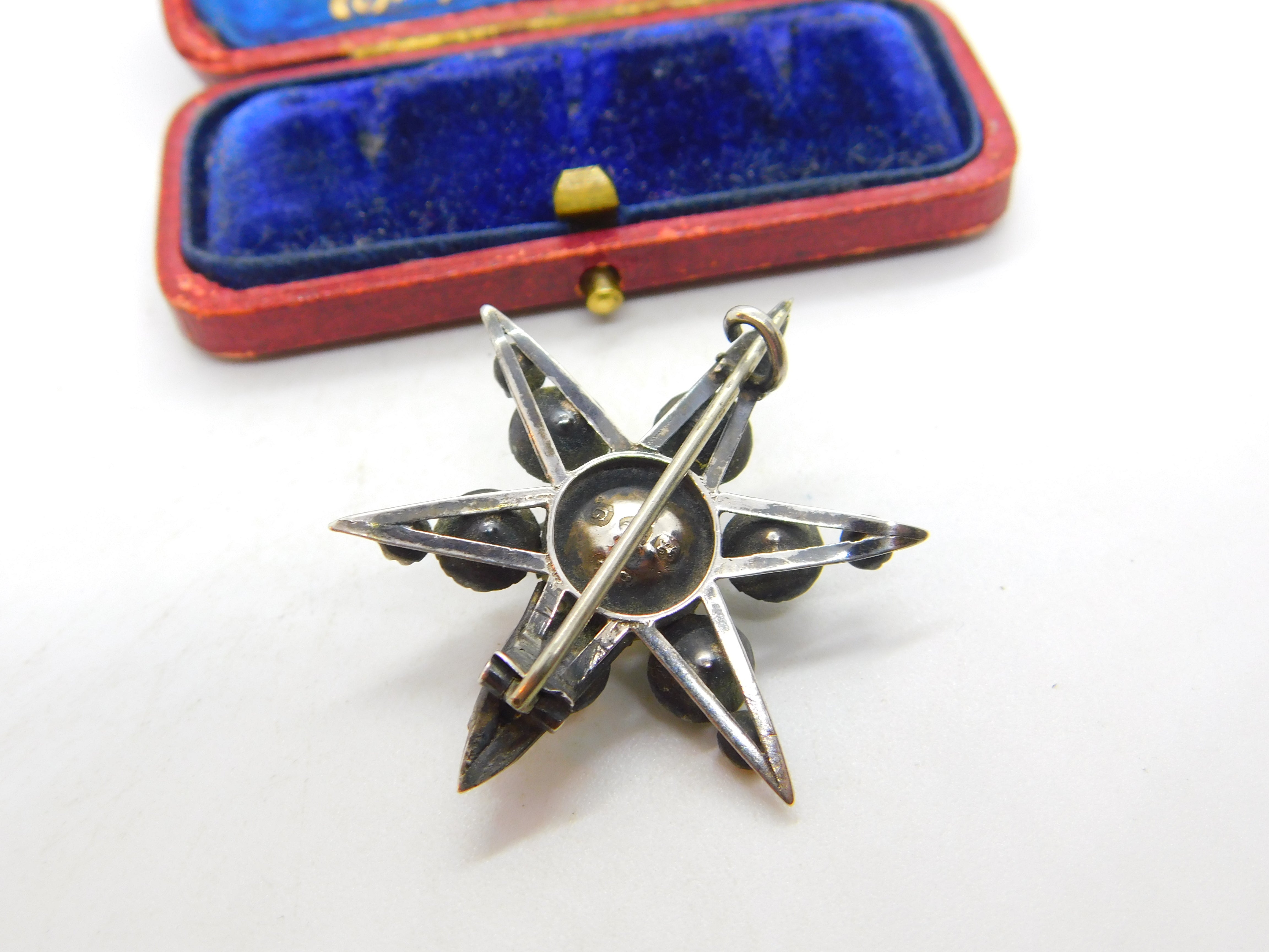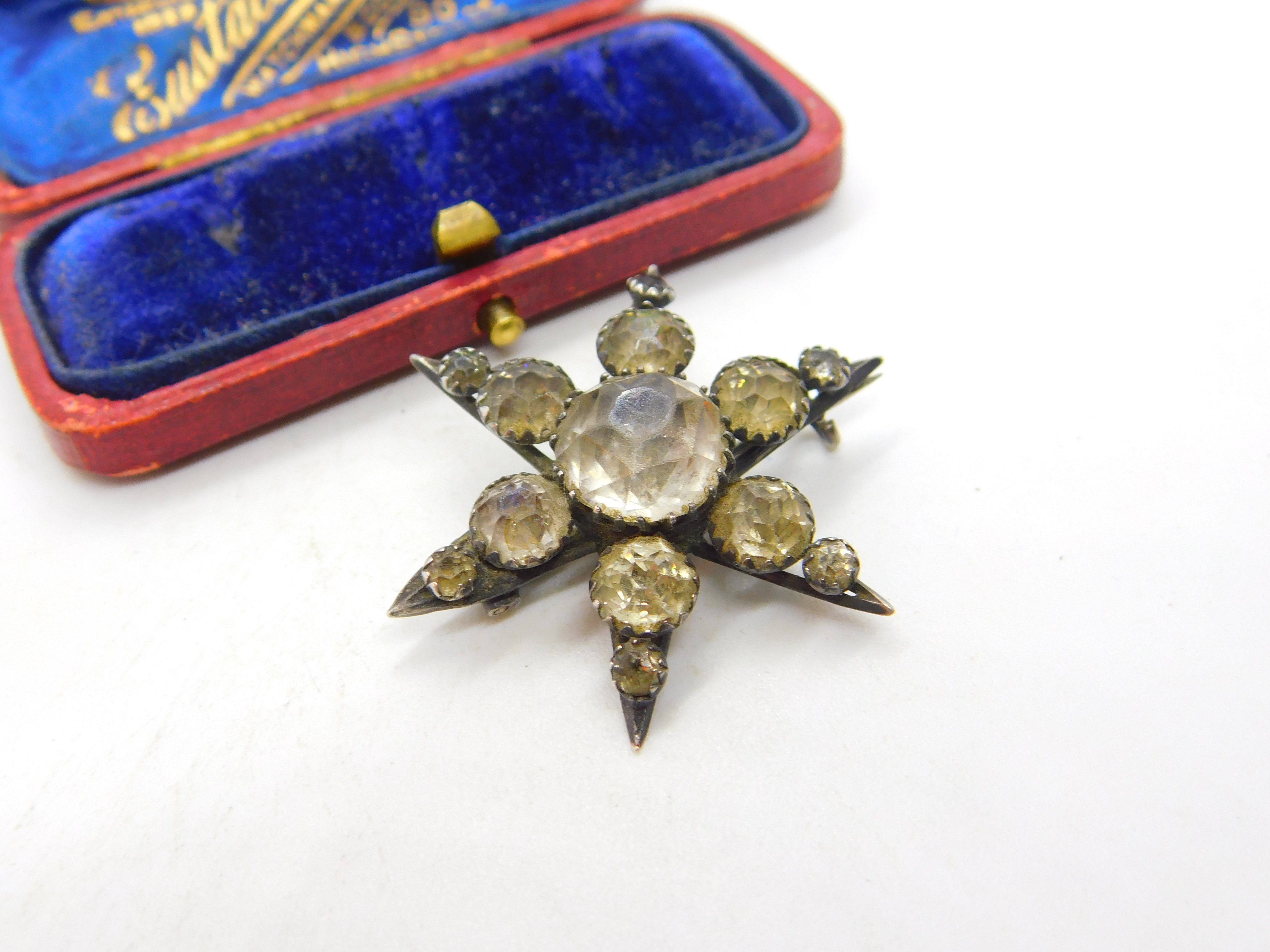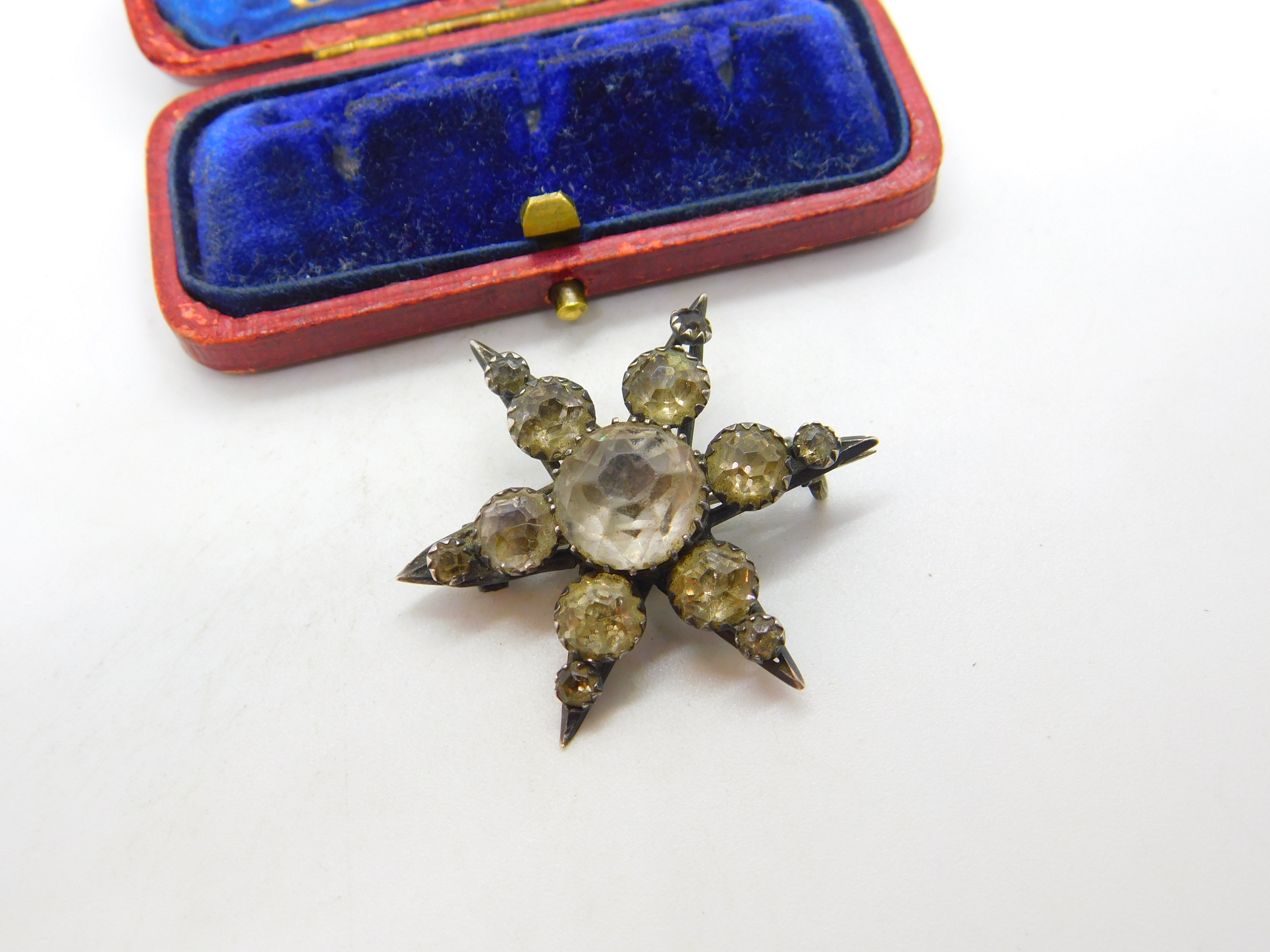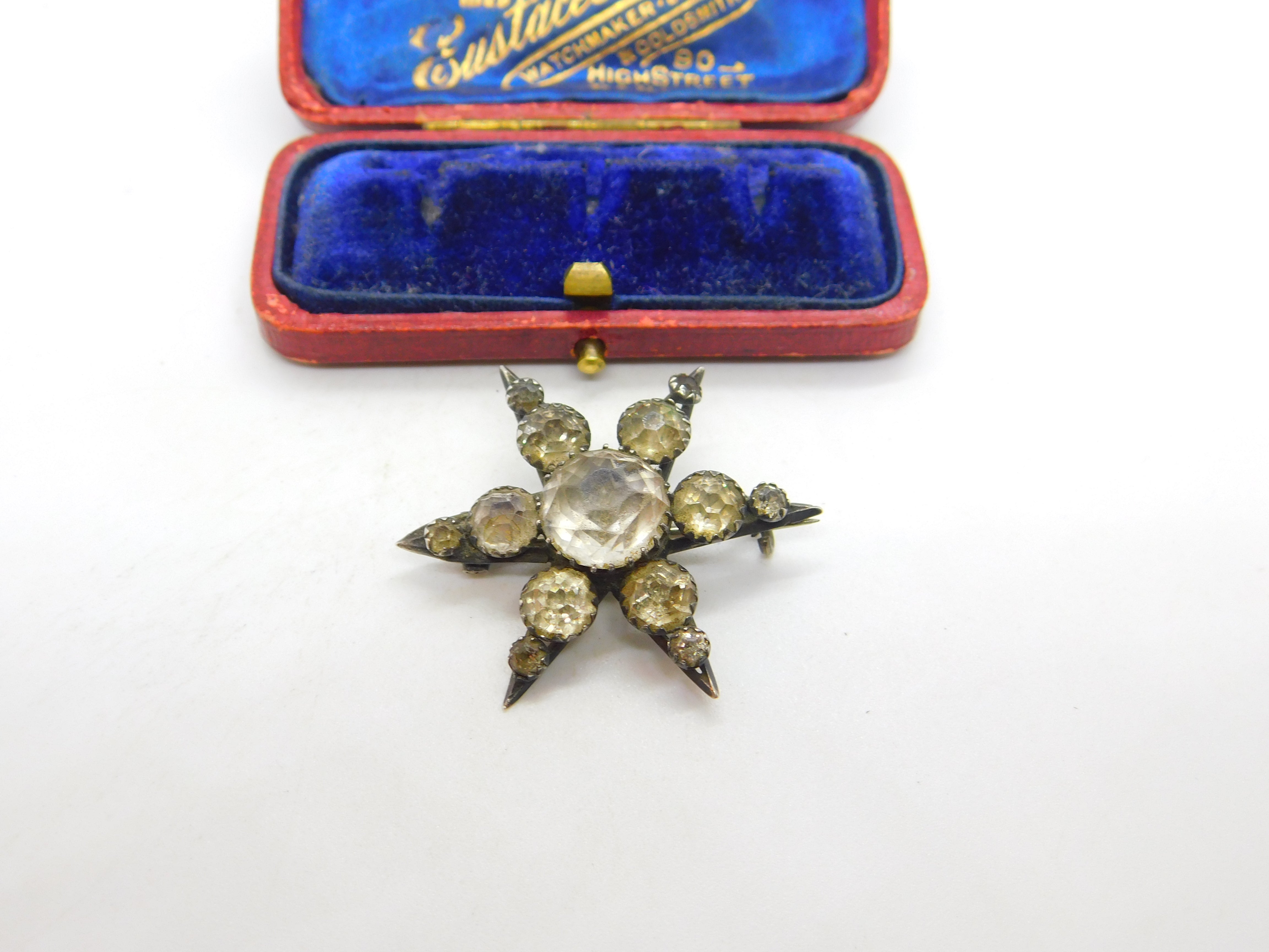 Victorian Sterling Silver Paste Set Starburst Brooch 1890 Chester Antique