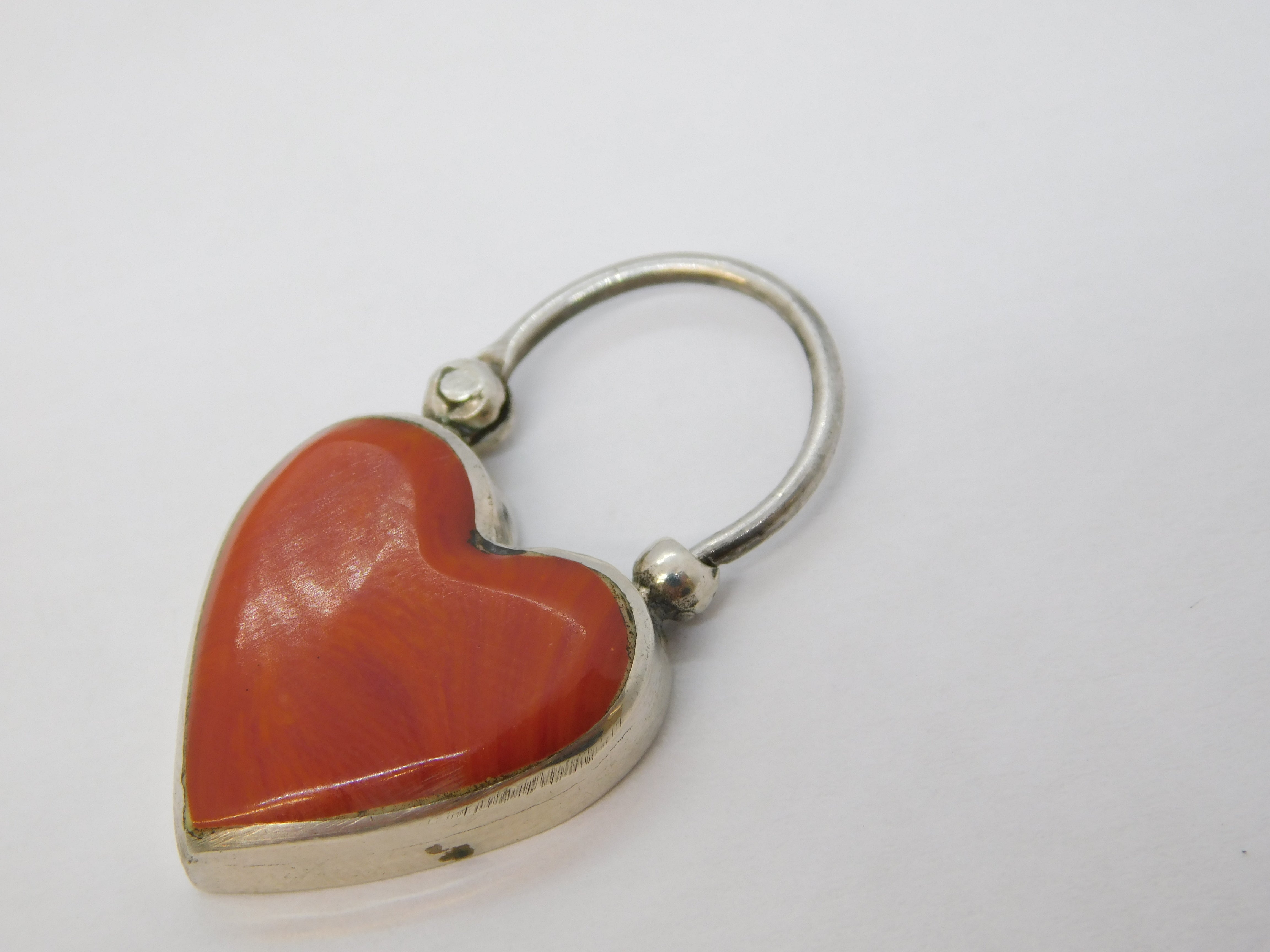 Details: A fantastic and wonderfully designed antique Victorian sterling silver heart lock pendant set with red agate to the front c1880, the silver has been XRF tested as it is unmarked. This is a wonderful item that would make a perfect gift or addition to any collection. We are more than happy to provide XRF reports for items upon request.