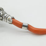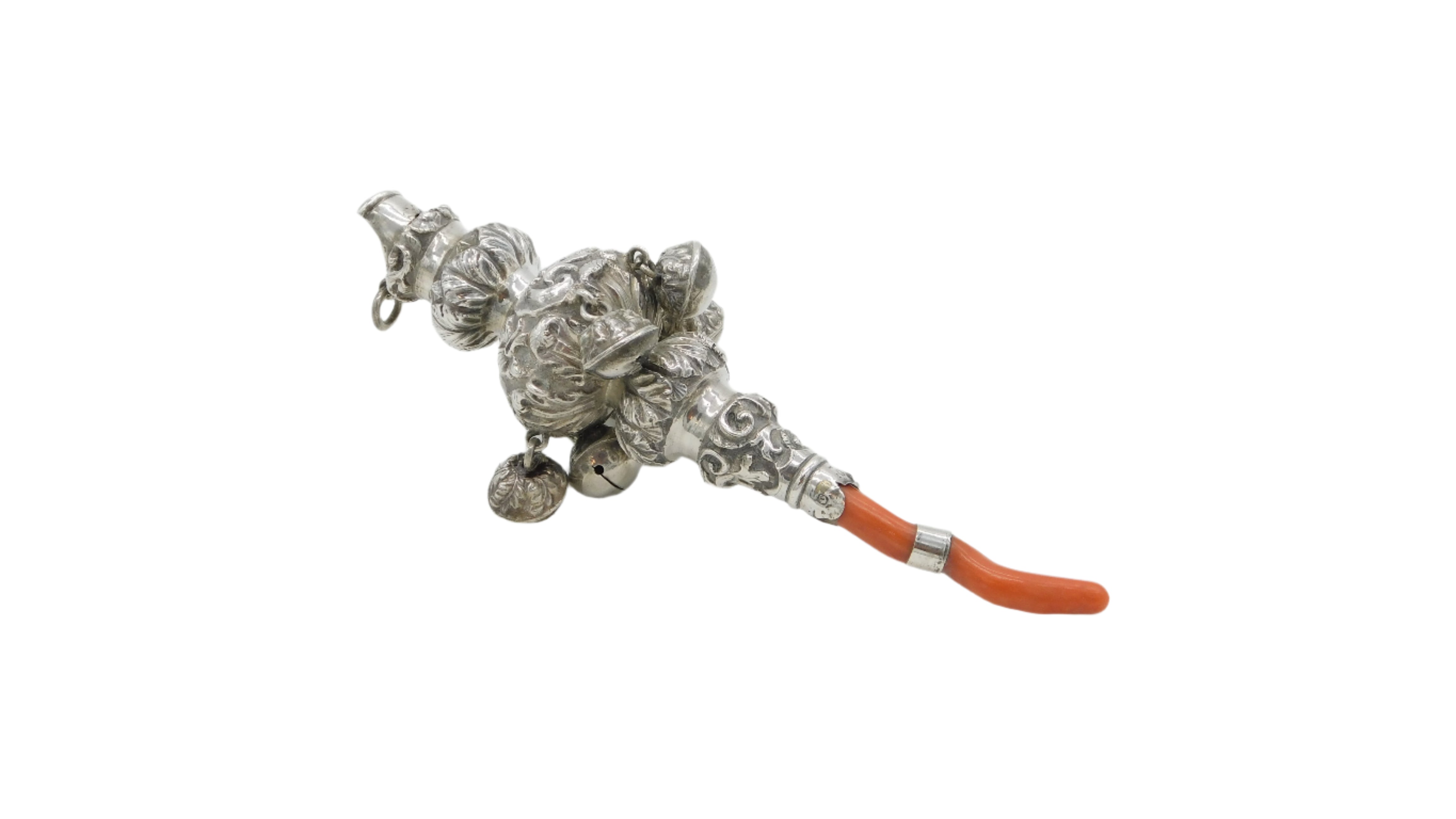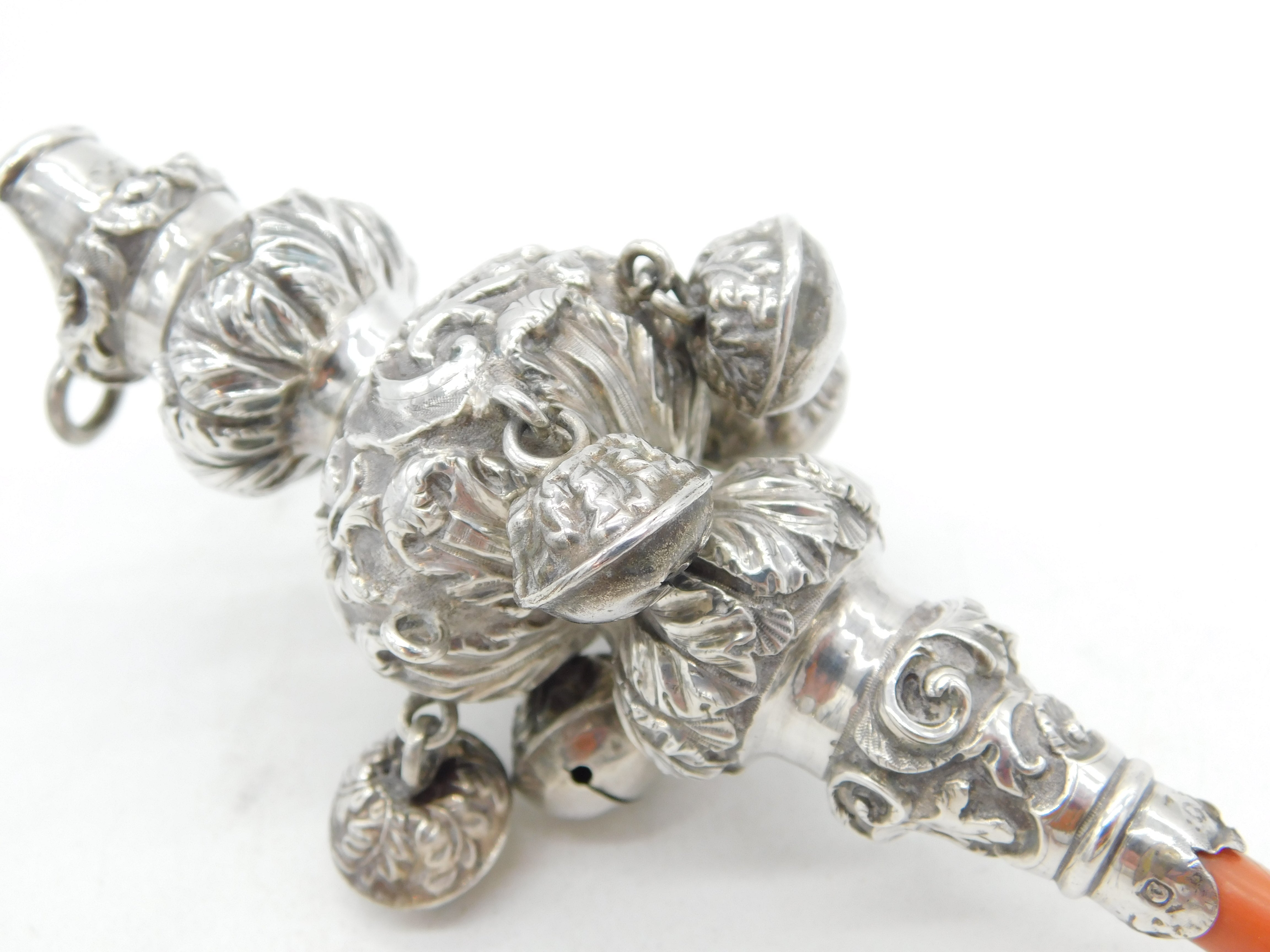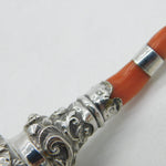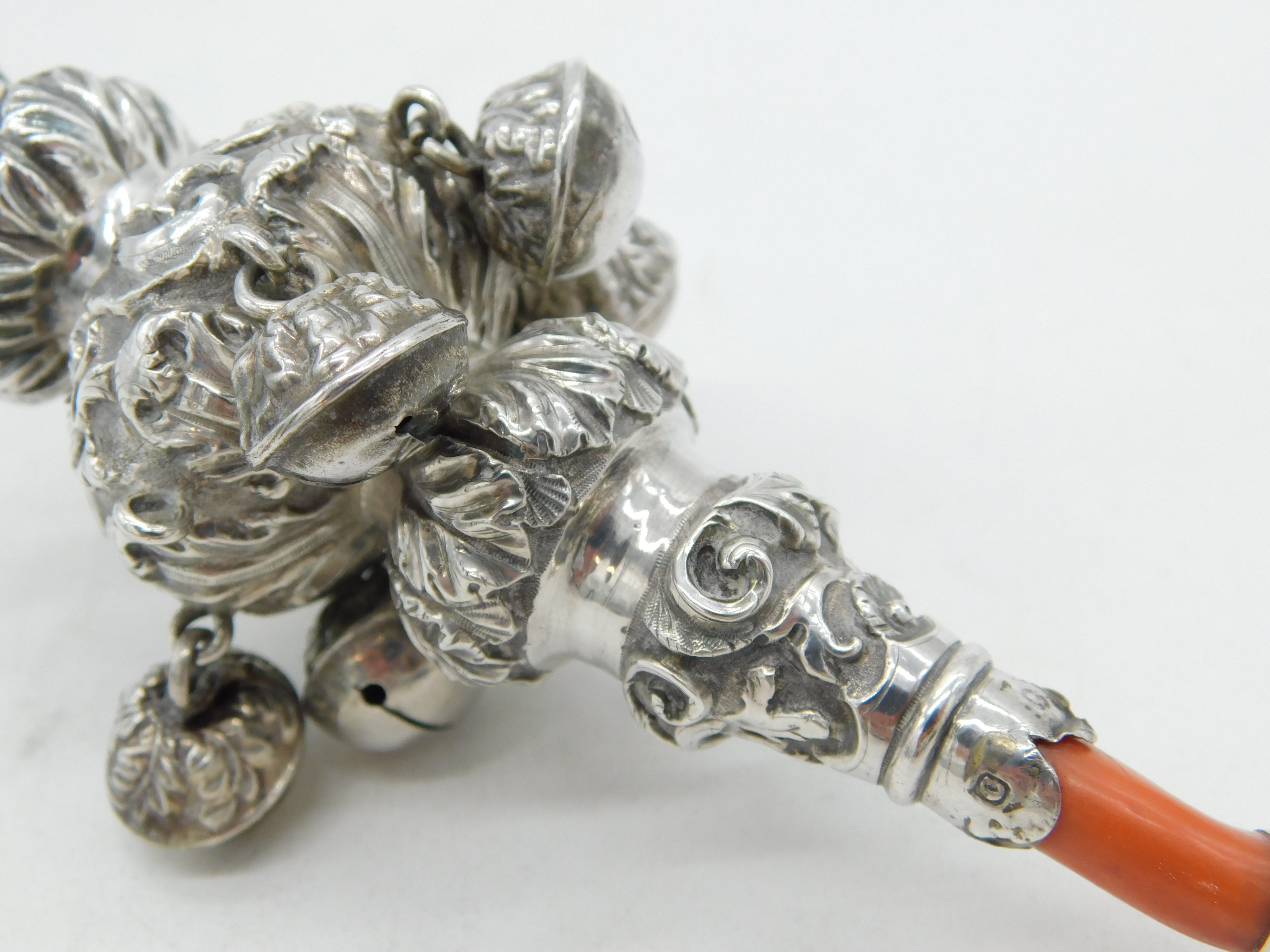 Victorian Sterling Silver & Red Coral Baby Rattle & Teether Antique 1851 Birmingham