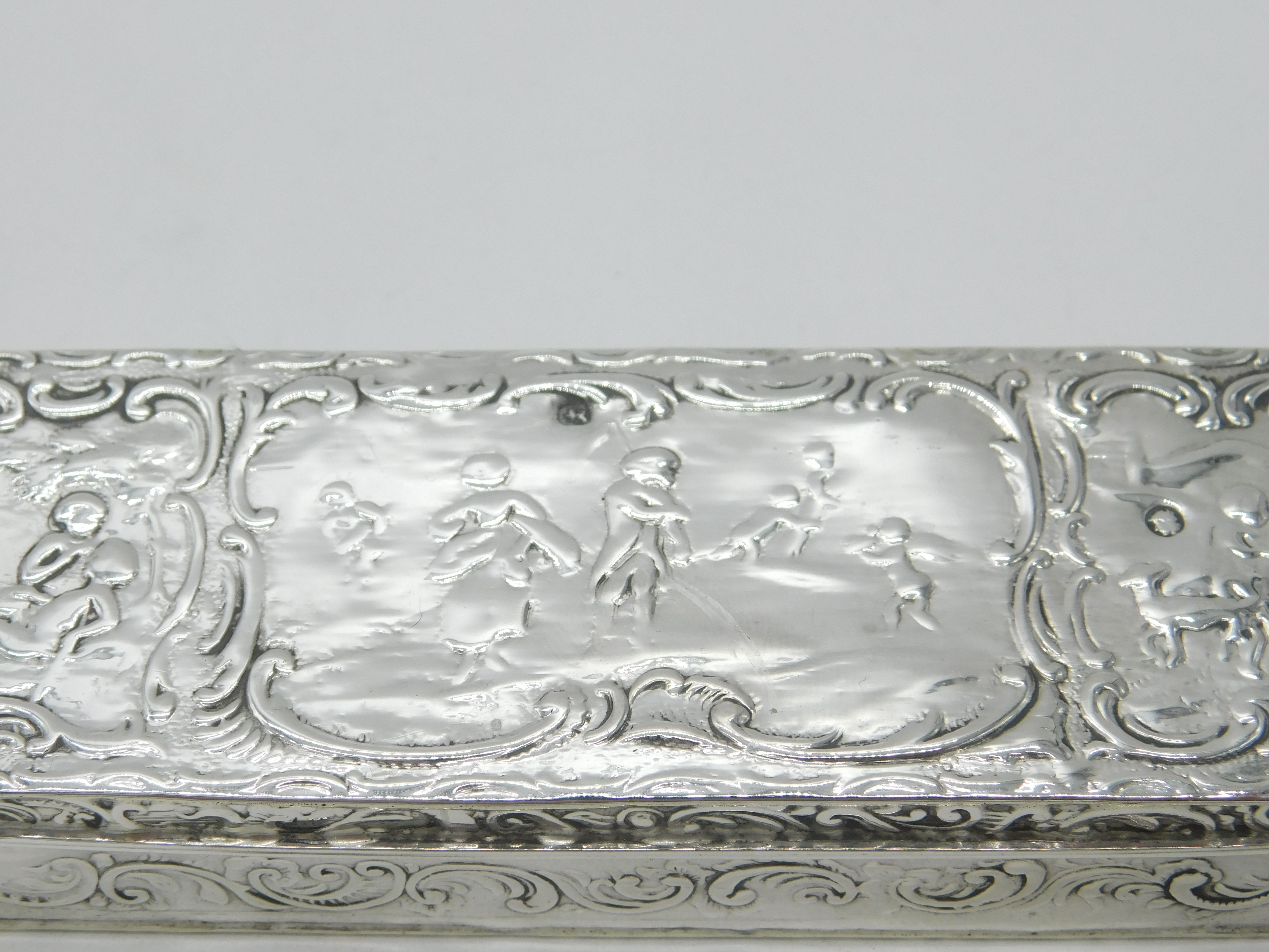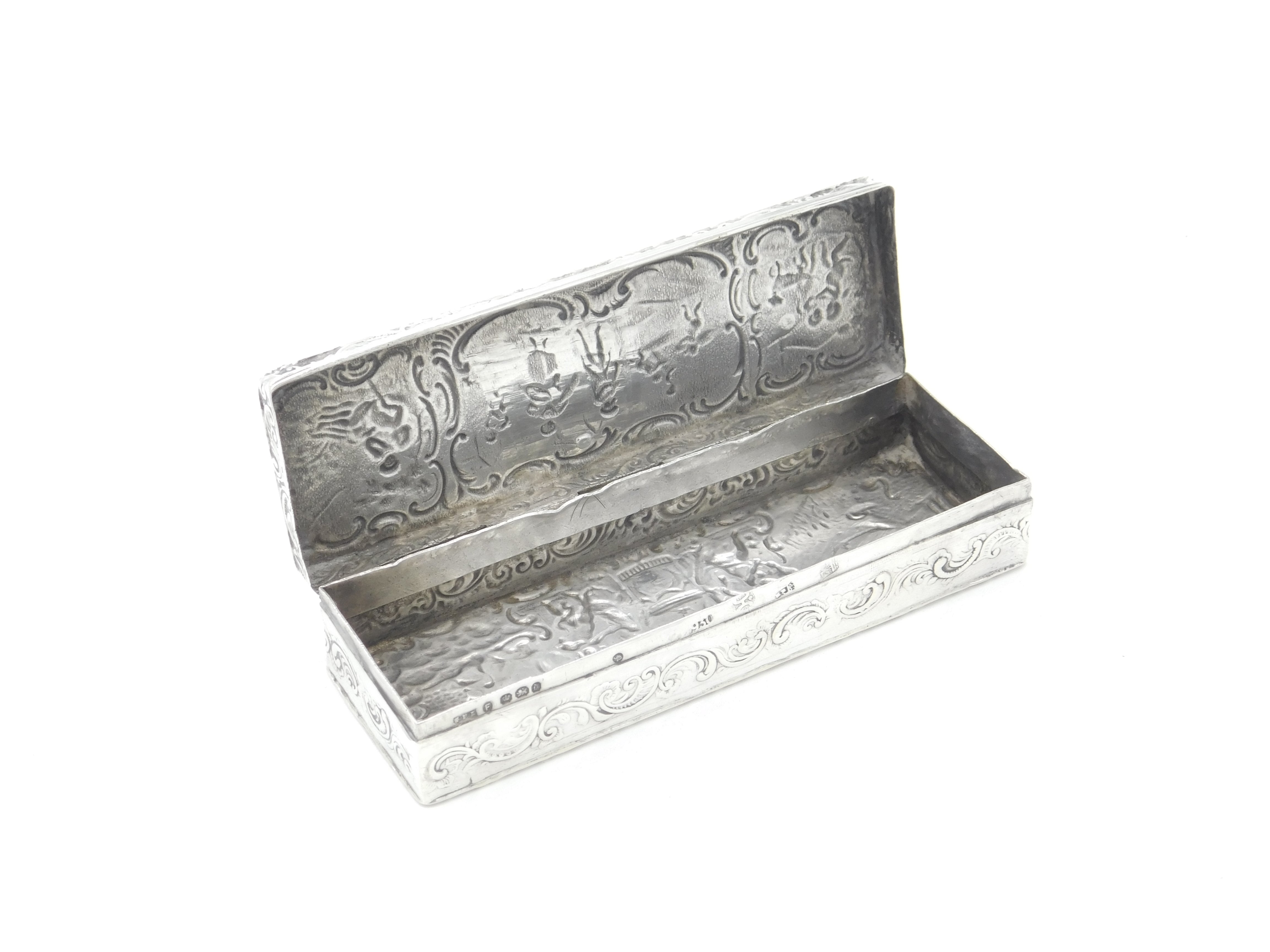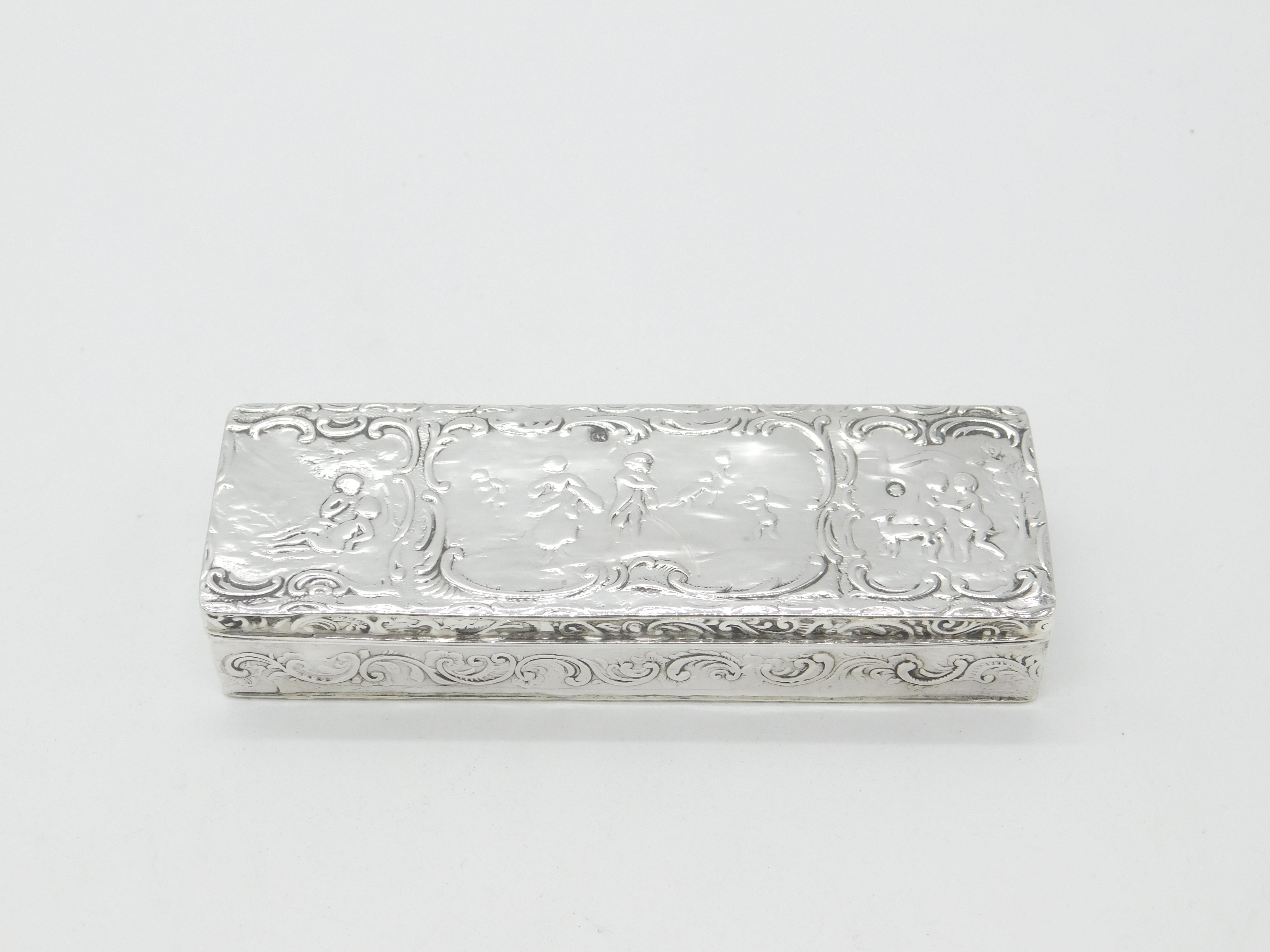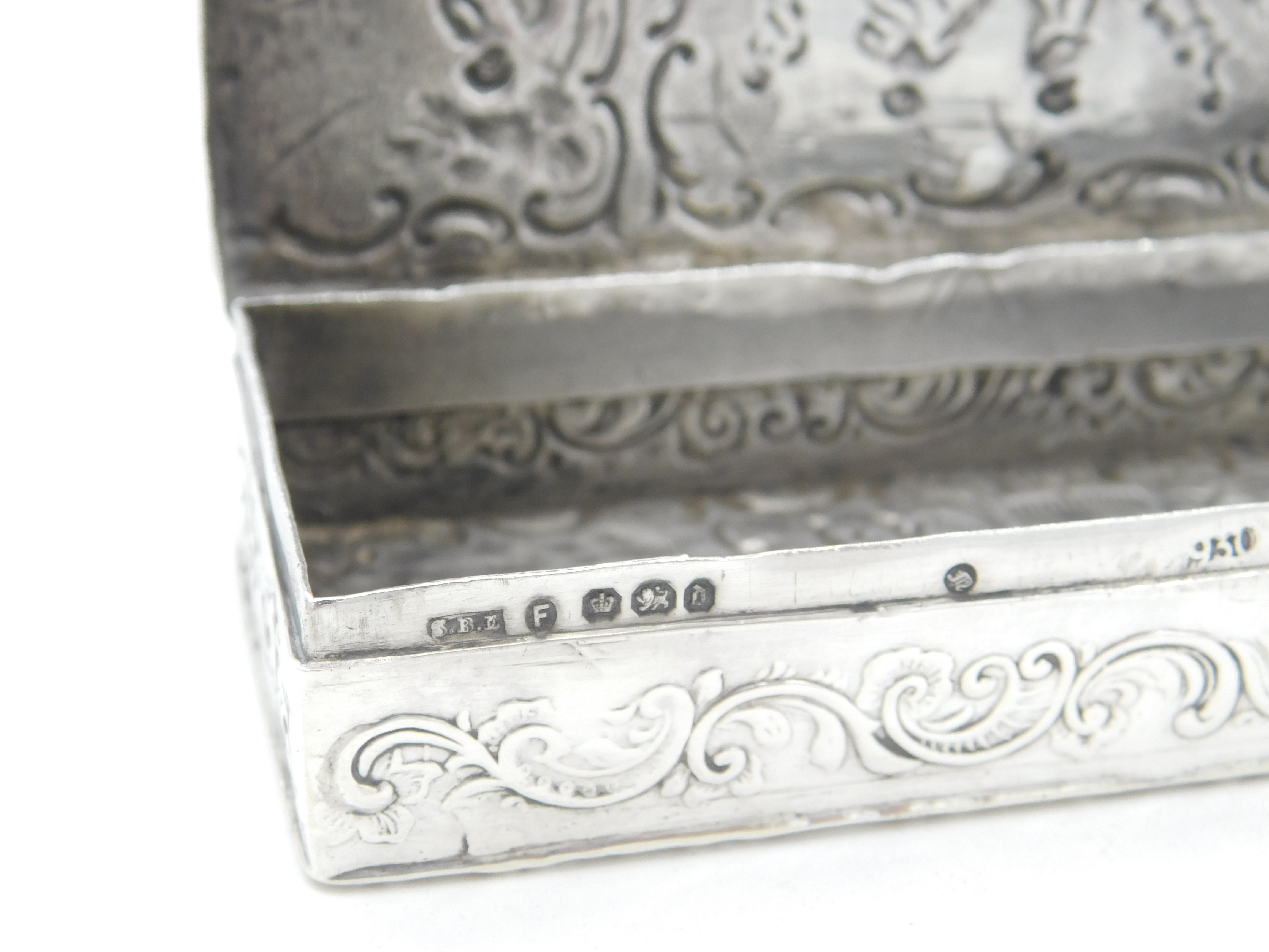 Victorian Sterling Silver Romantic Nouveau Scene Trinket Box 1896 Sheffield