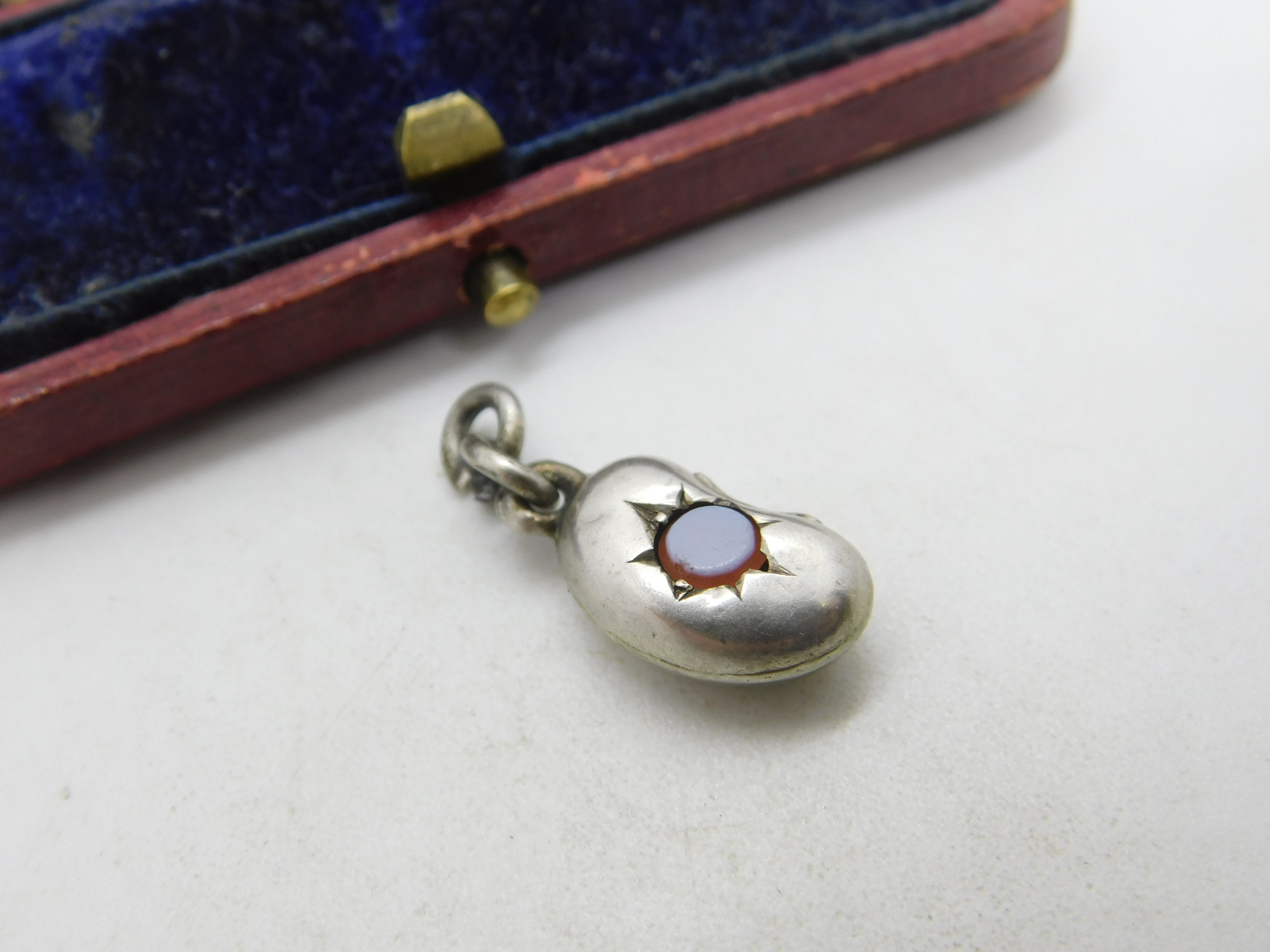 Details: A fantastic and wonderfully designed antique Victorian sterling silver lucky bean charm or pendant set with sardonyx star c1880, the silver has been XRF tested. This is a wonderful item that would make a perfect gift or addition to any collection. The BOX pictured is for PRESENTATION ONLY and is NOT included in the listings but used to frame the pictures unless specifically stated otherwise.