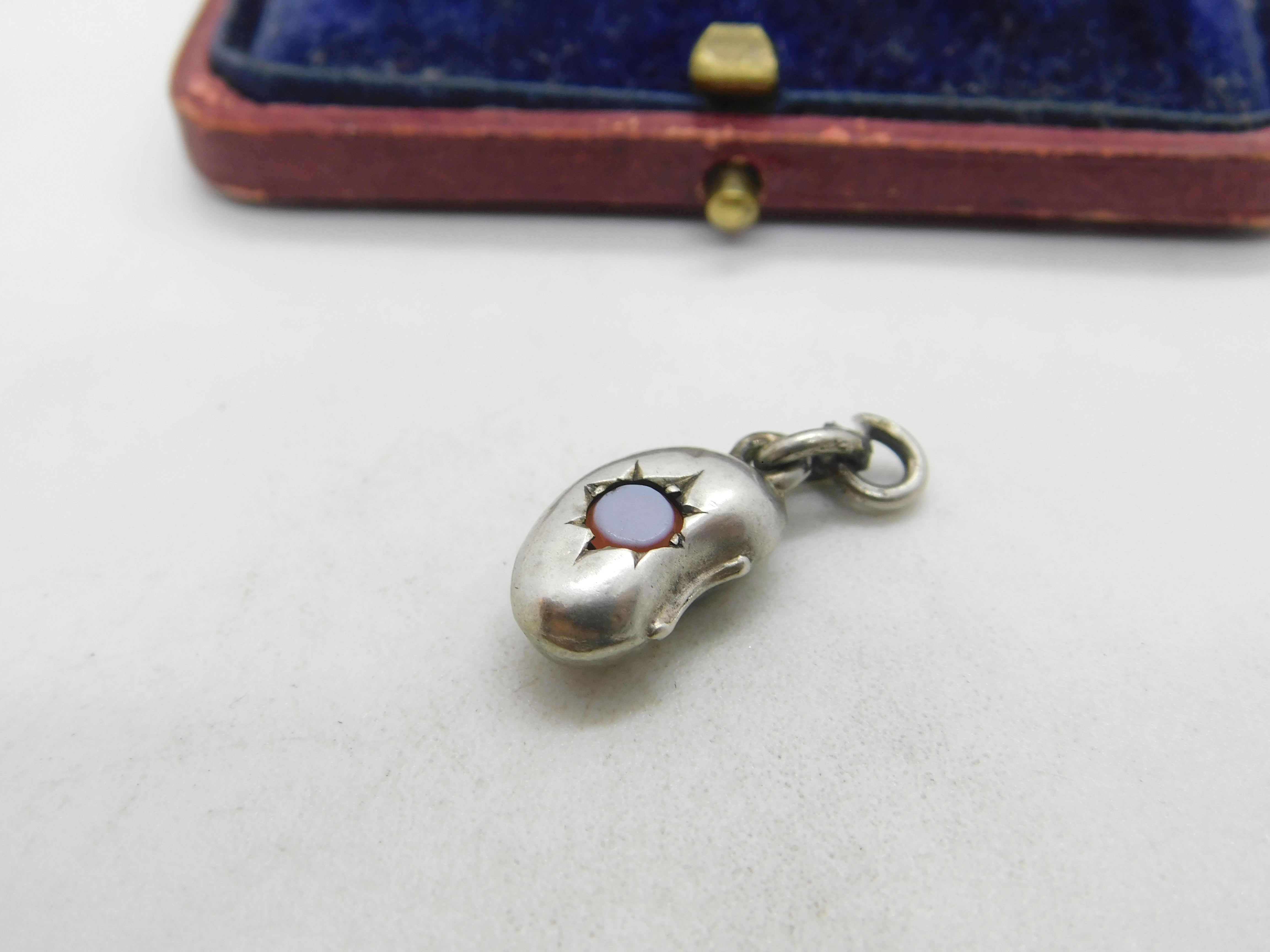 Victorian Sterling Silver Sardonyx Set Lucky Bean Charm Pendant c1880 Antique