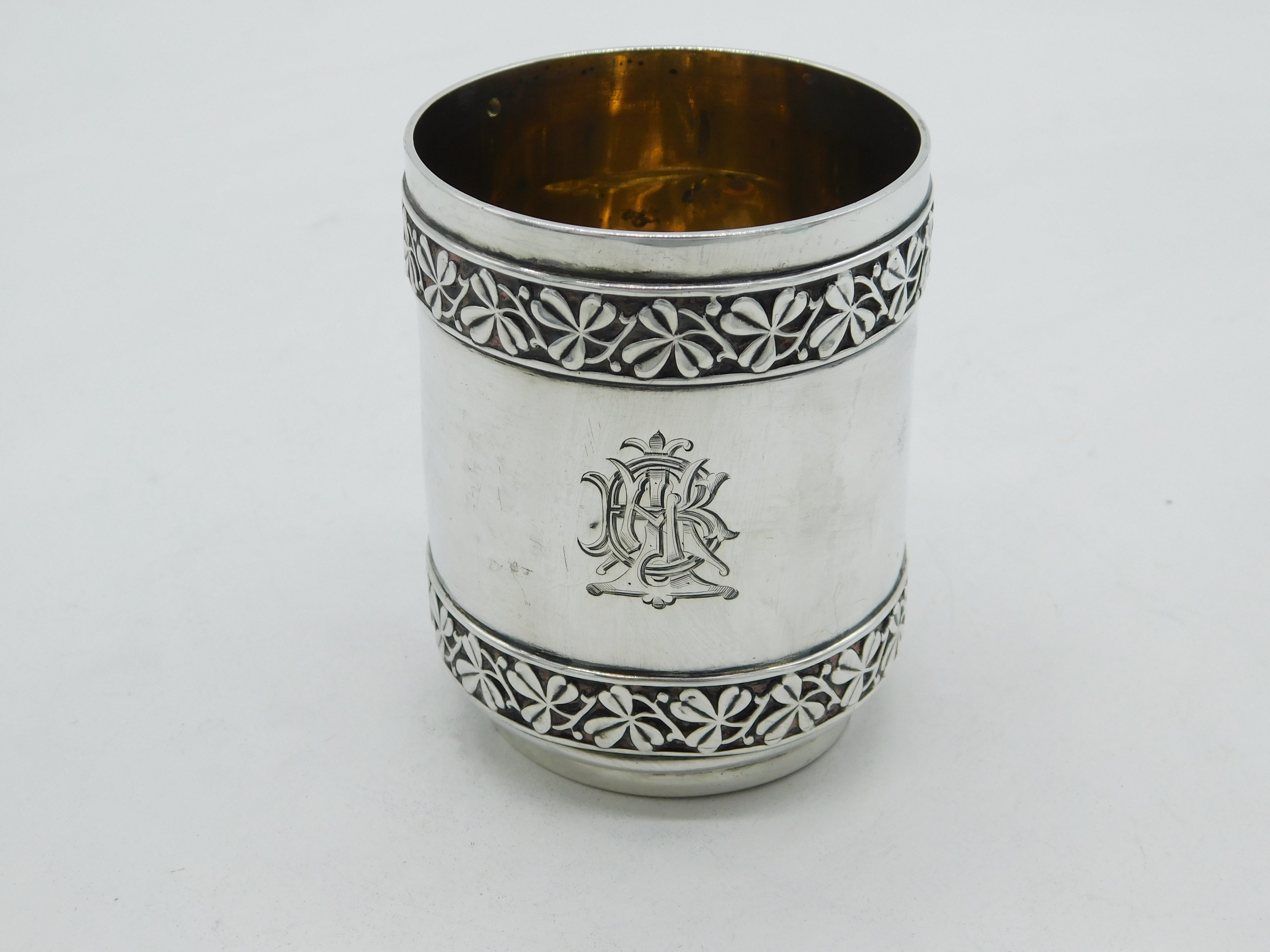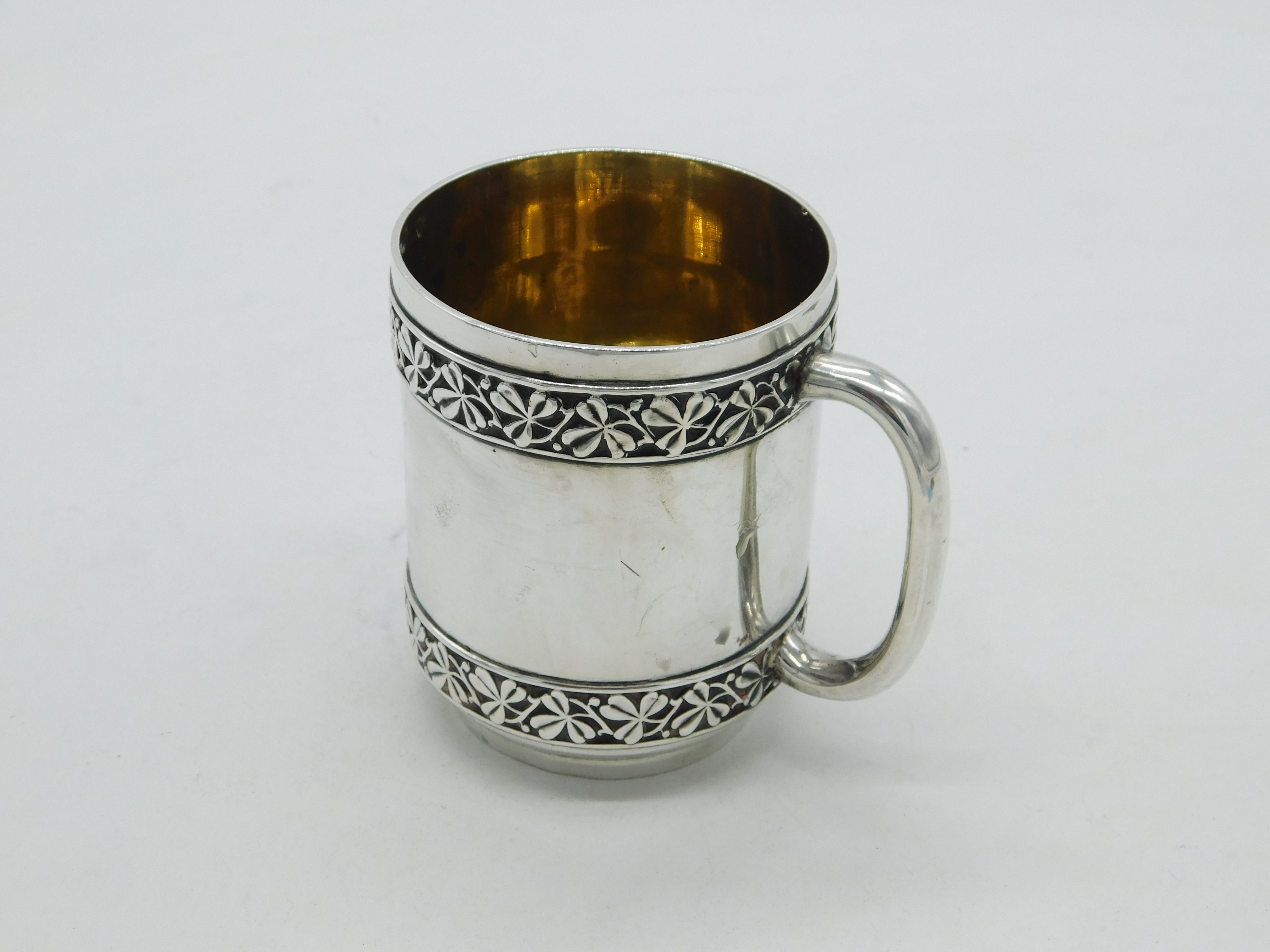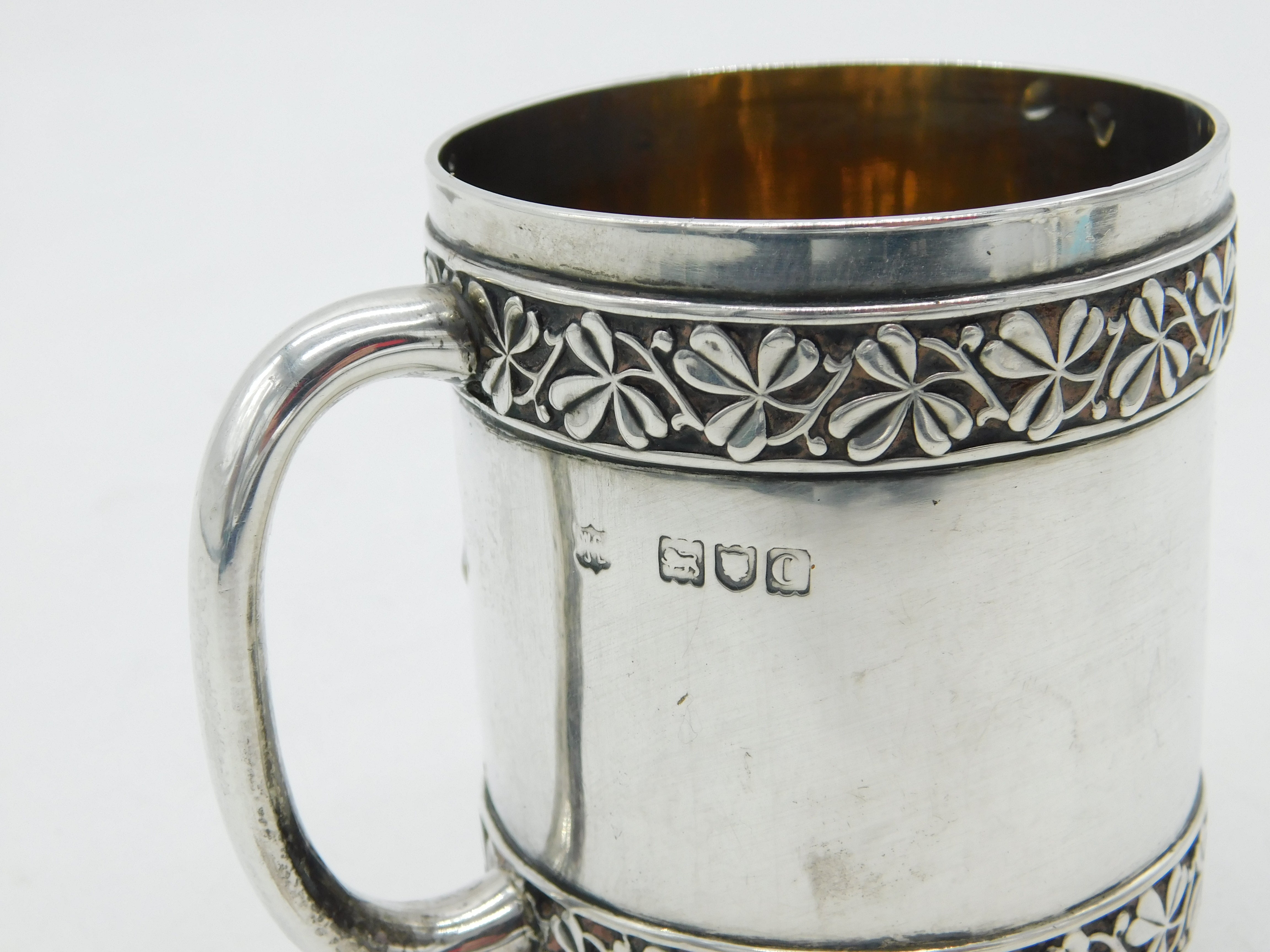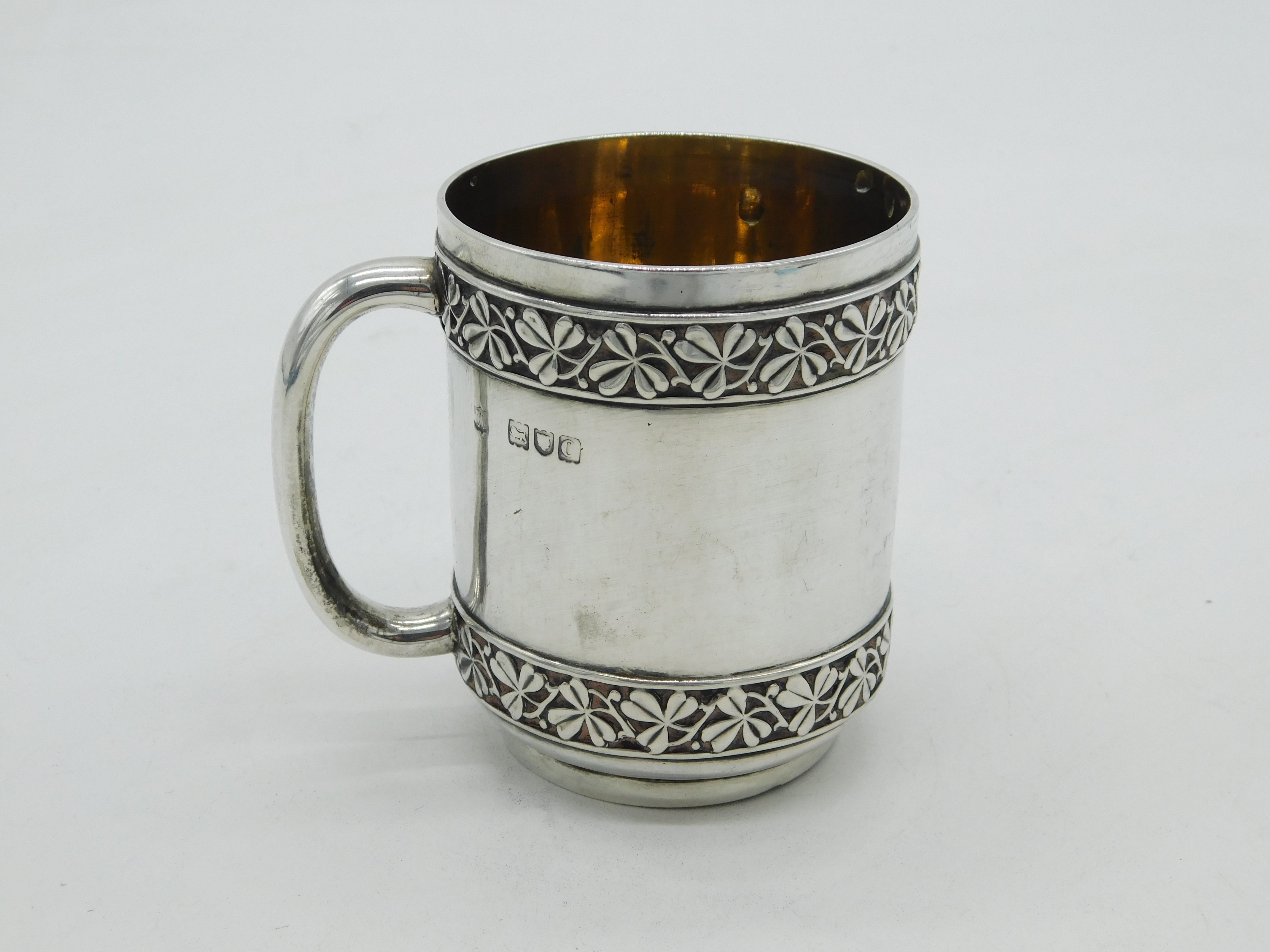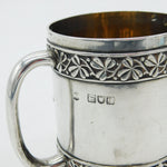 Victorian Sterling Silver Shamrock Pattern Christening Mug Antique 1898 London