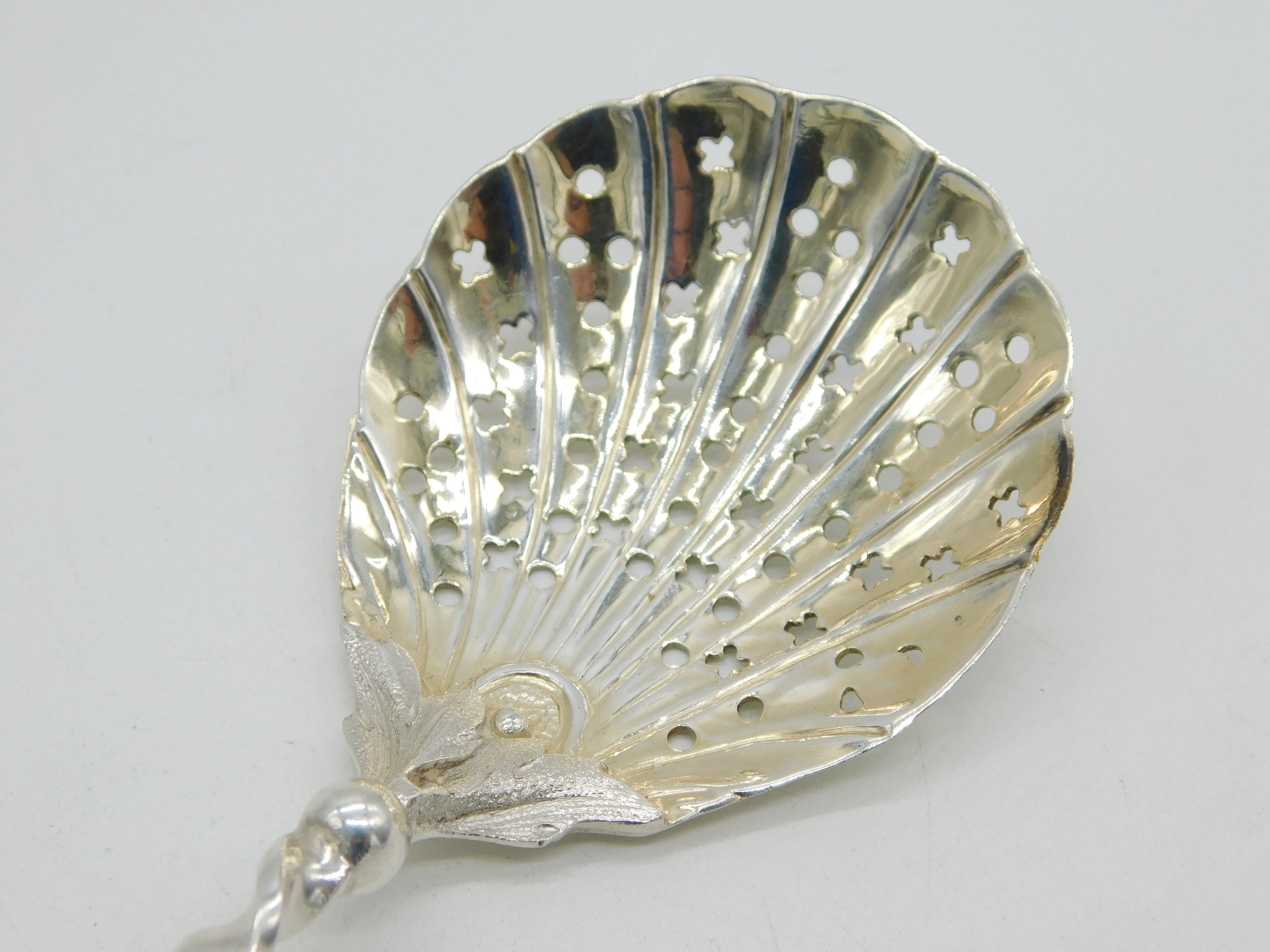 Victorian Sterling Silver Shell Pattern Seal Top Sugar Caster Spoon Antique 1897 London