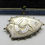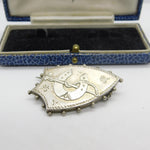 Victorian Sterling Silver Shield Form Horseshoe & Crop Brooch Antique c1880