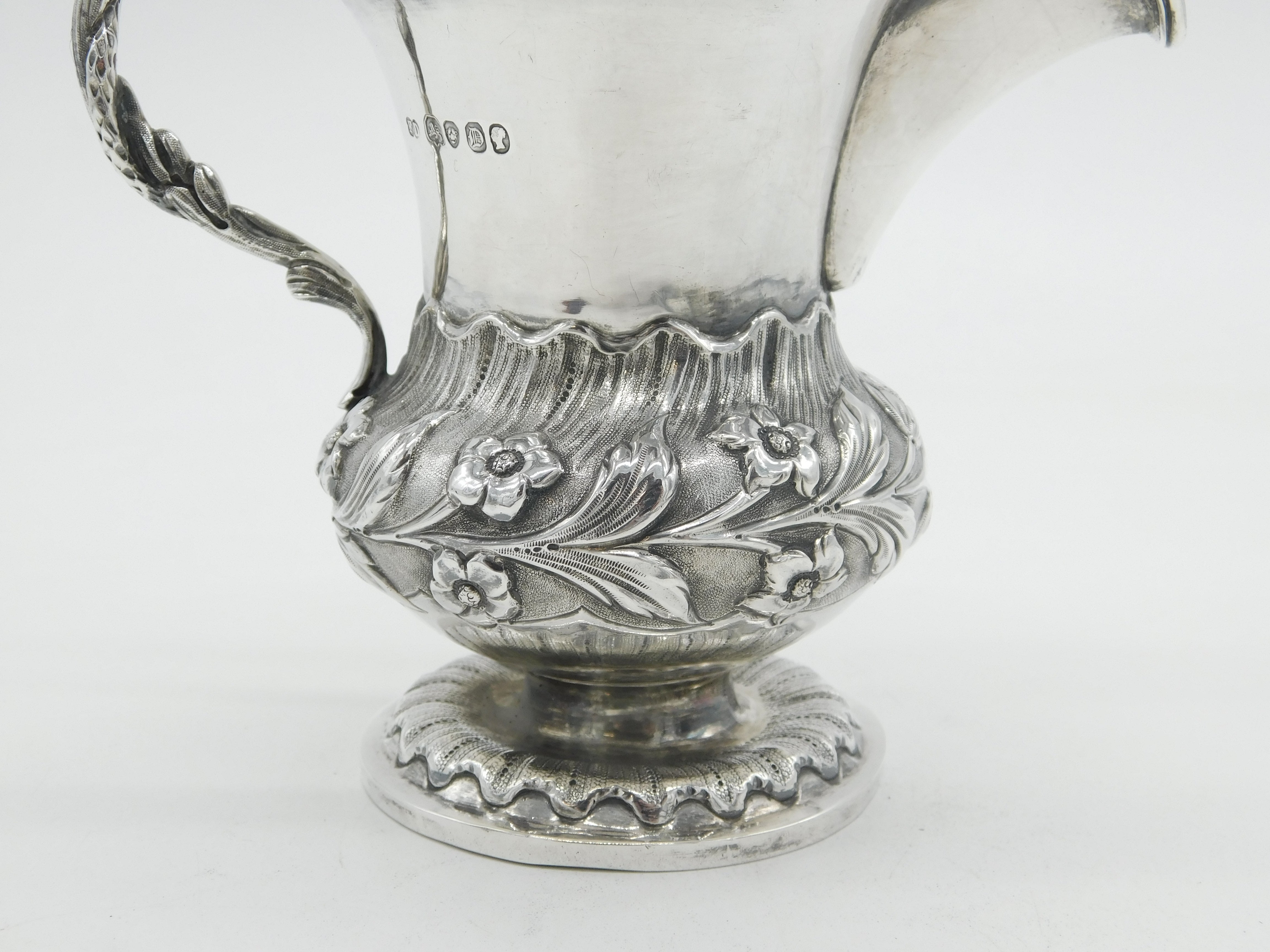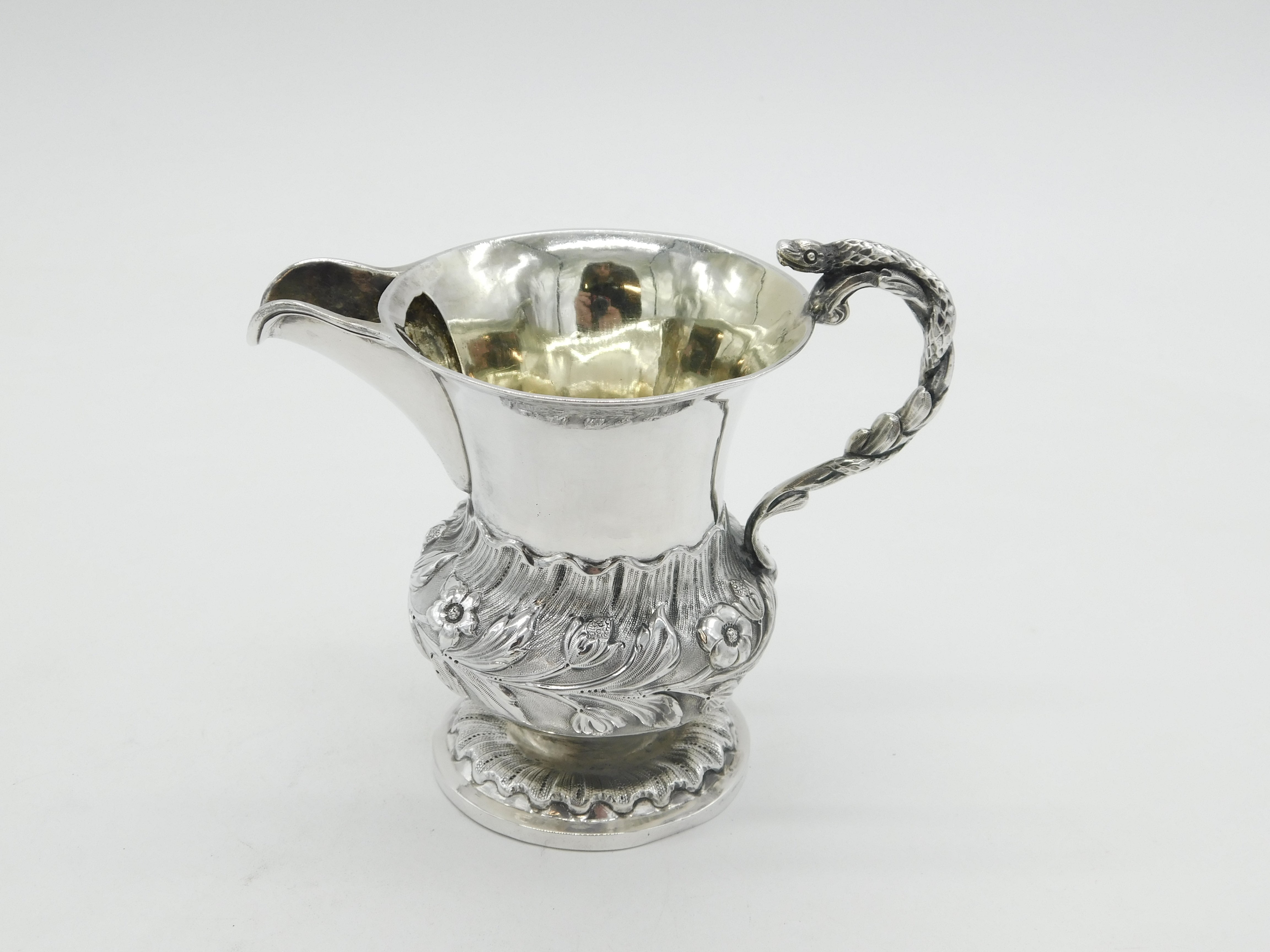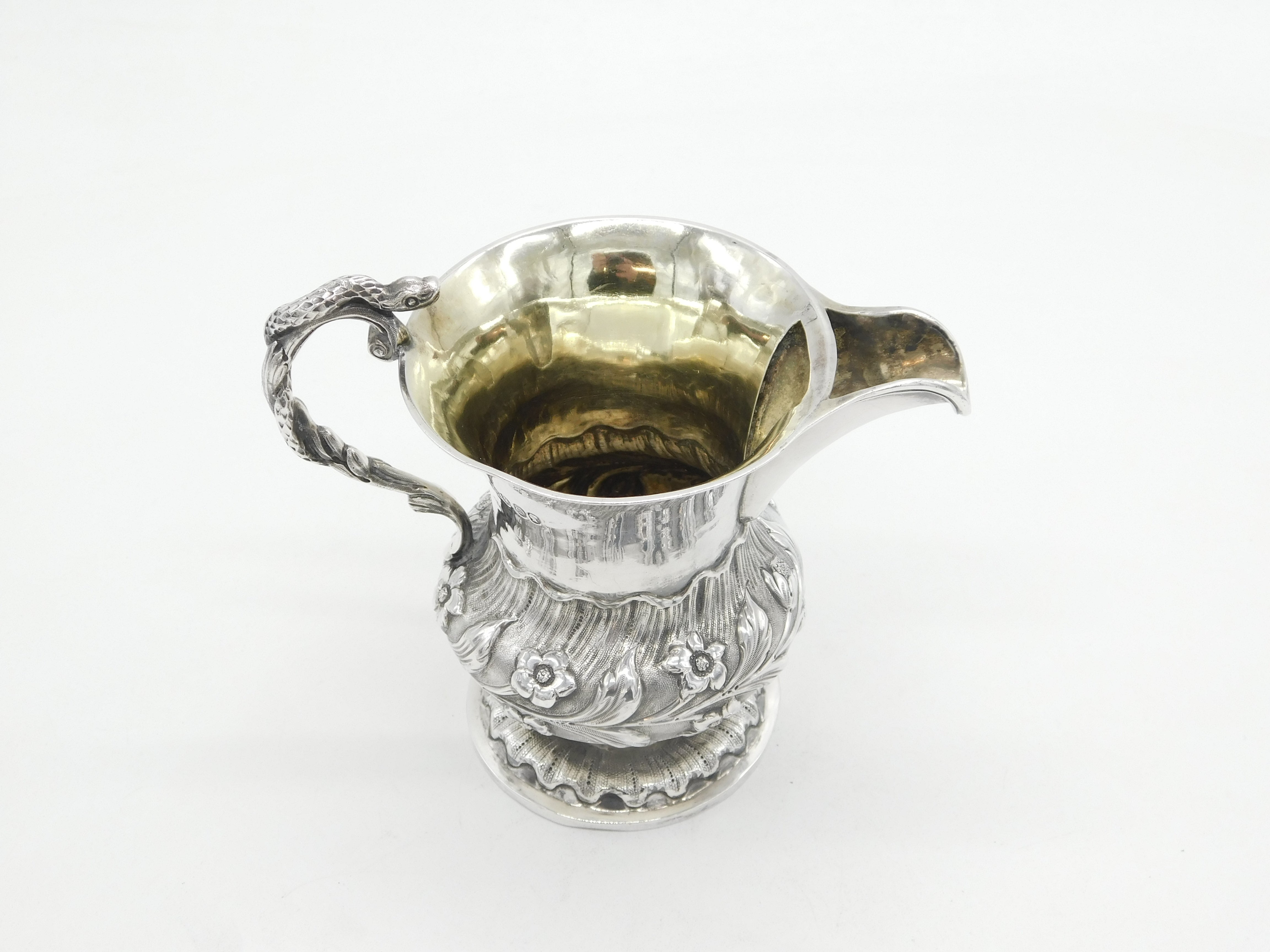 Victorian Sterling Silver Snake Handle Floral Cream Jug Antique 1839 London