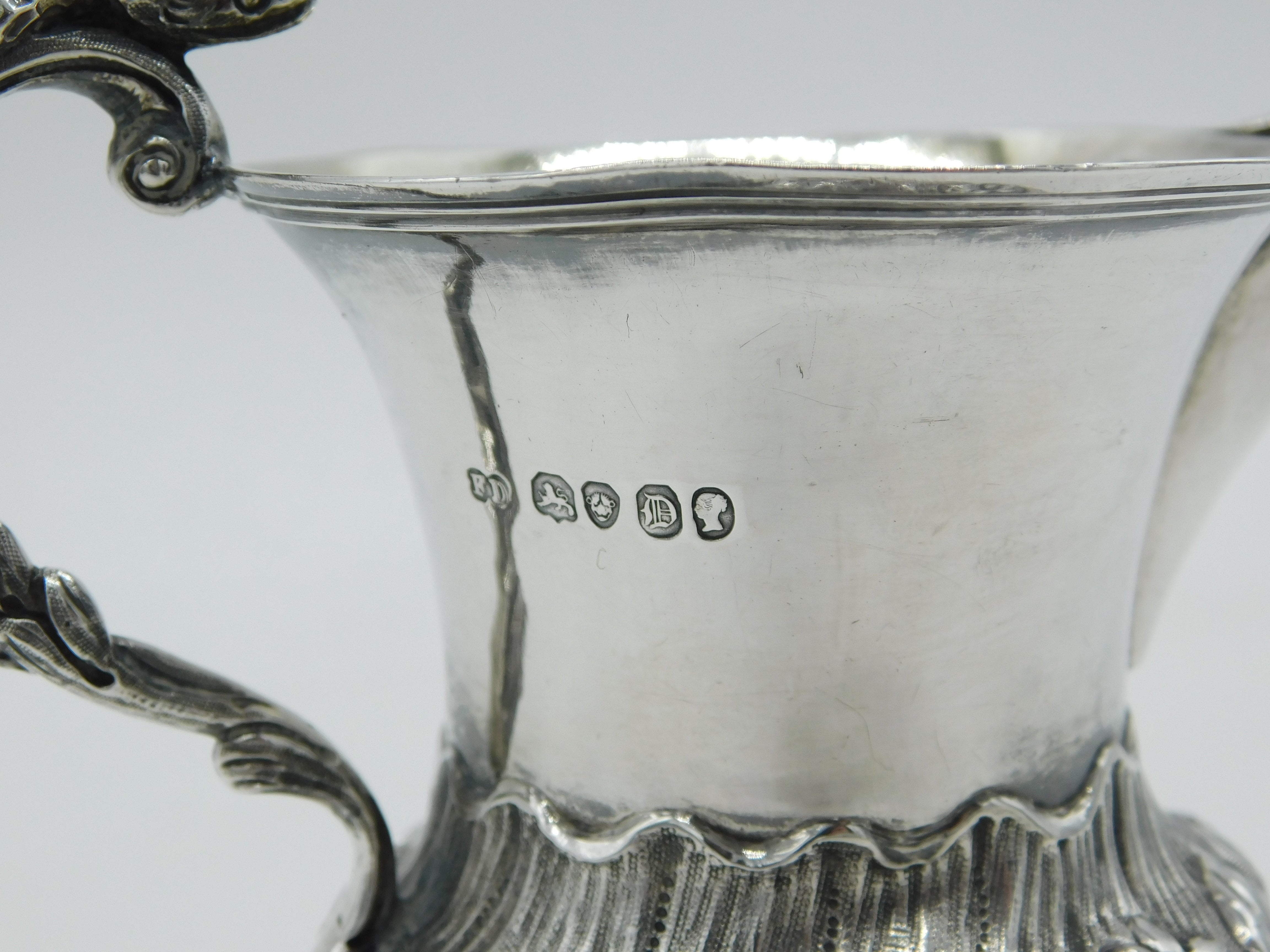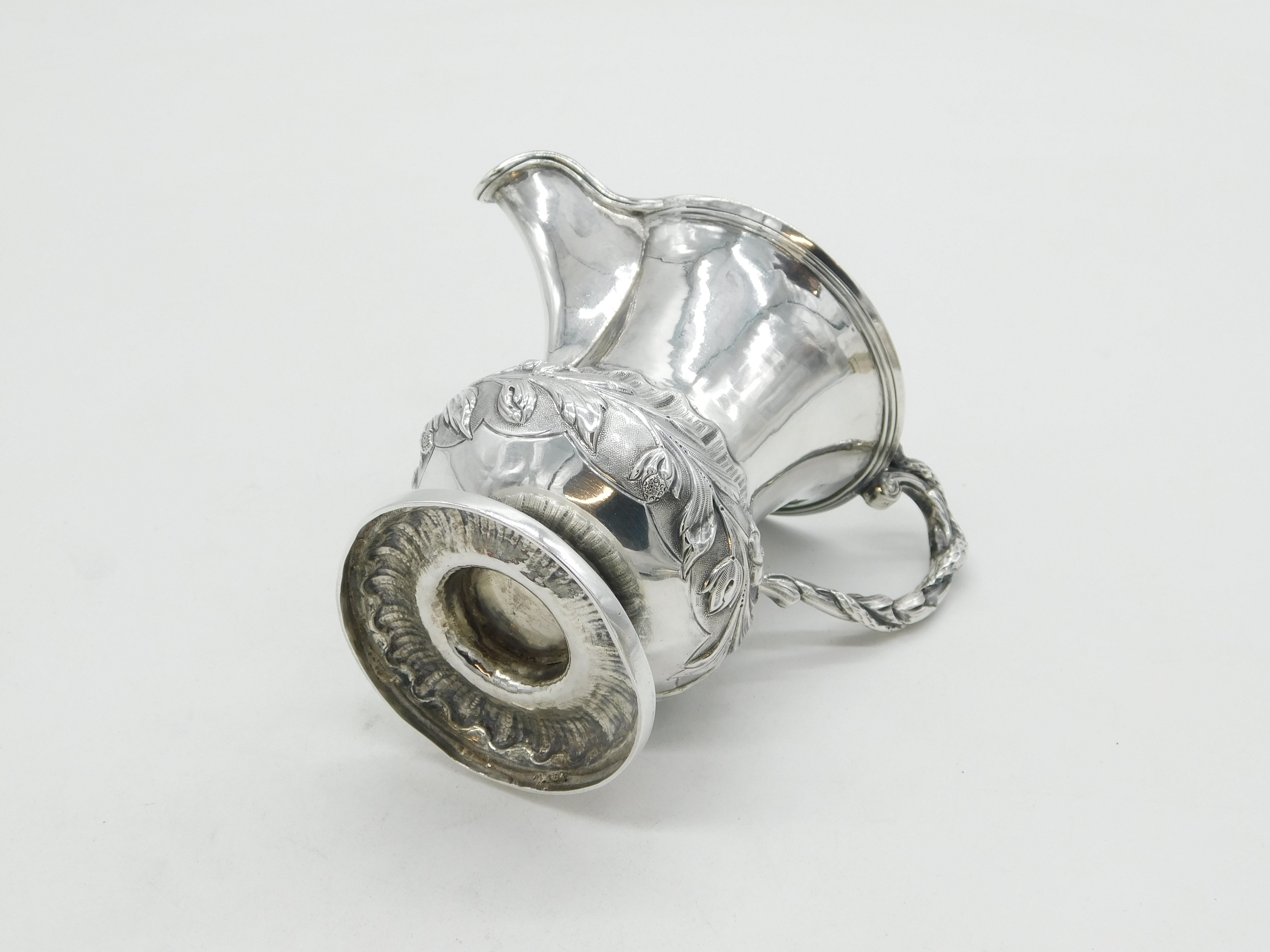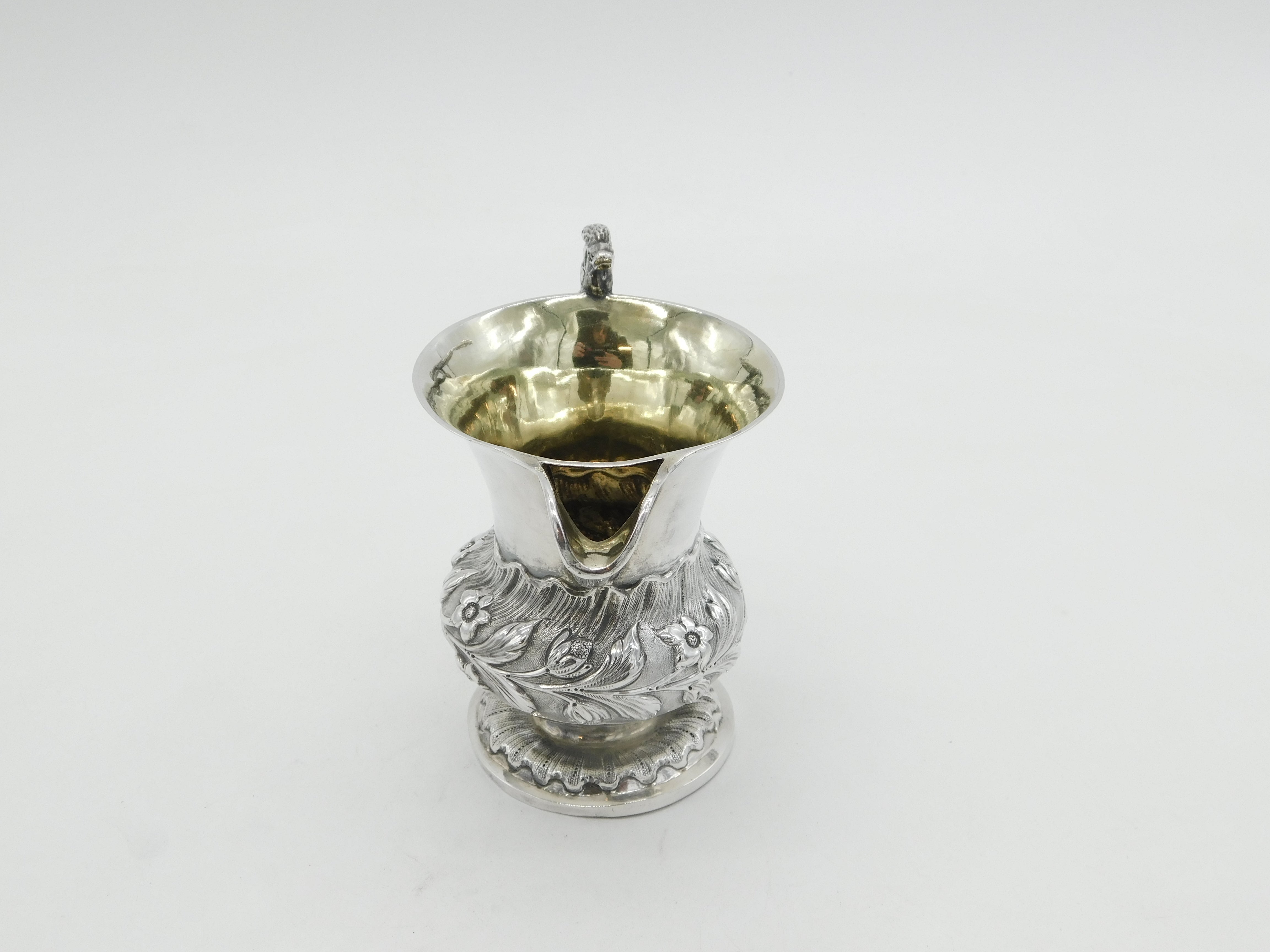 Victorian Sterling Silver Snake Handle Floral Cream Jug Antique 1839 London