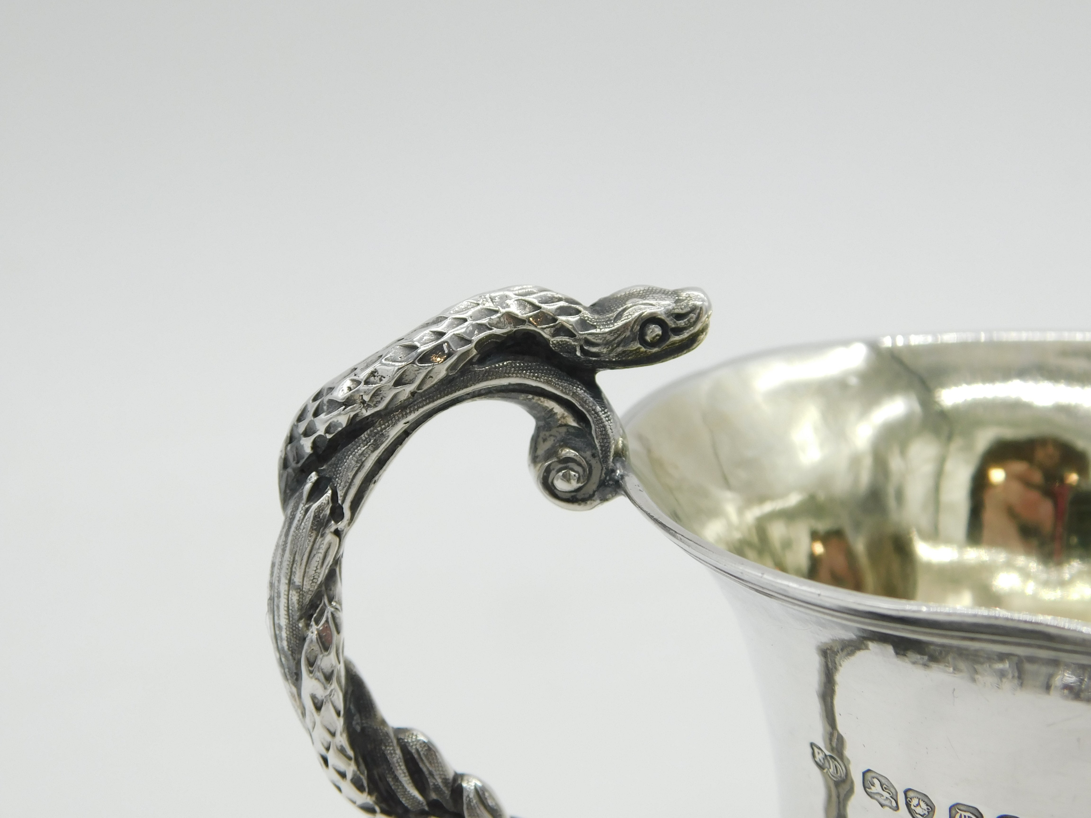 Details: A fantastic and wonderfully designed antique early-Victorian sterling silver floral pattern cream jug with gilded interior and superb snake handle hallmarked London 1839 by Frederick Dear. This is a wonderful item that would make a perfect gift or addition to any collection. The BOX pictured is for PRESENTATION ONLY and is NOT included in the listings but used to frame the pictures unless specifically stated otherwise.