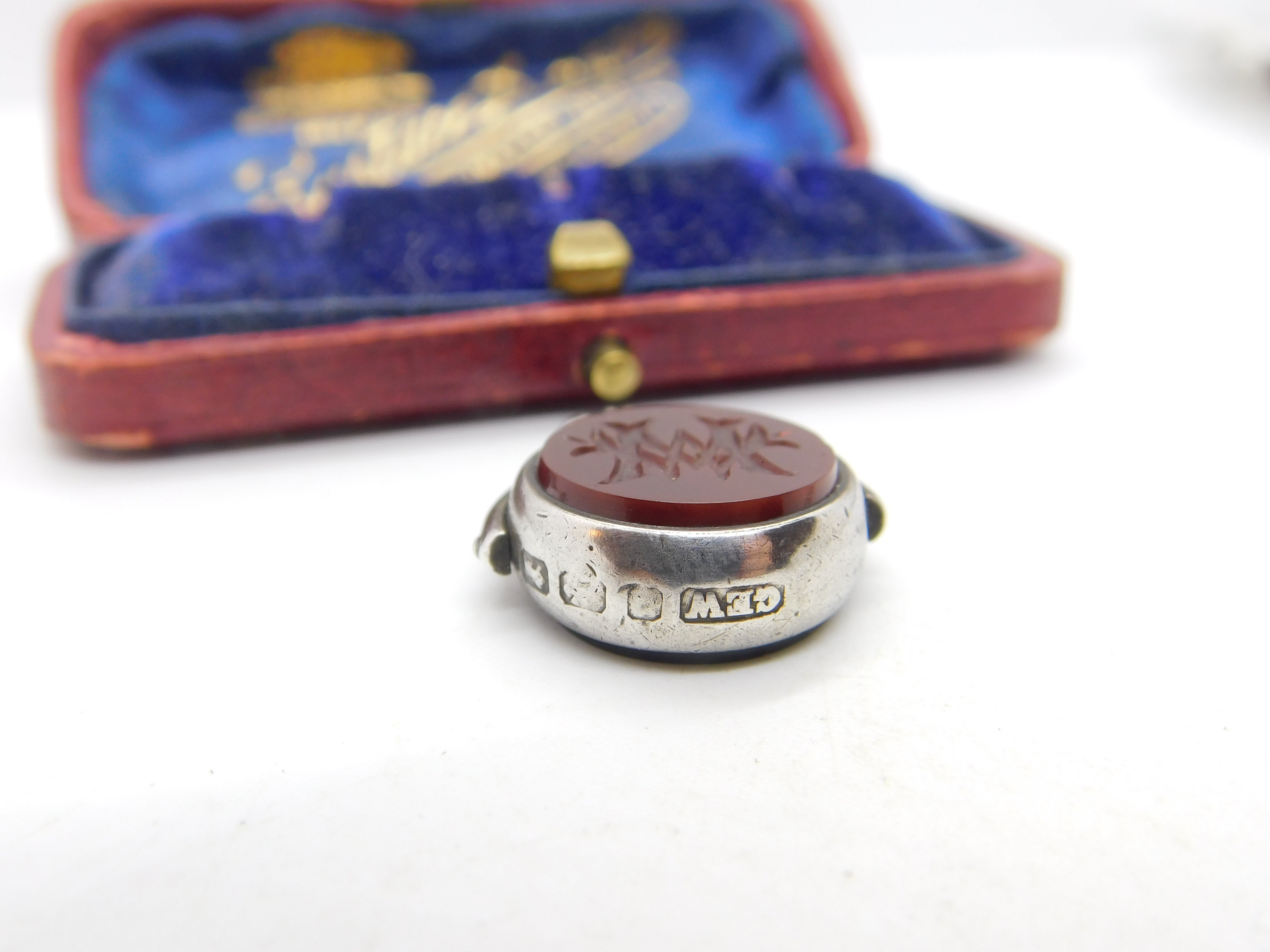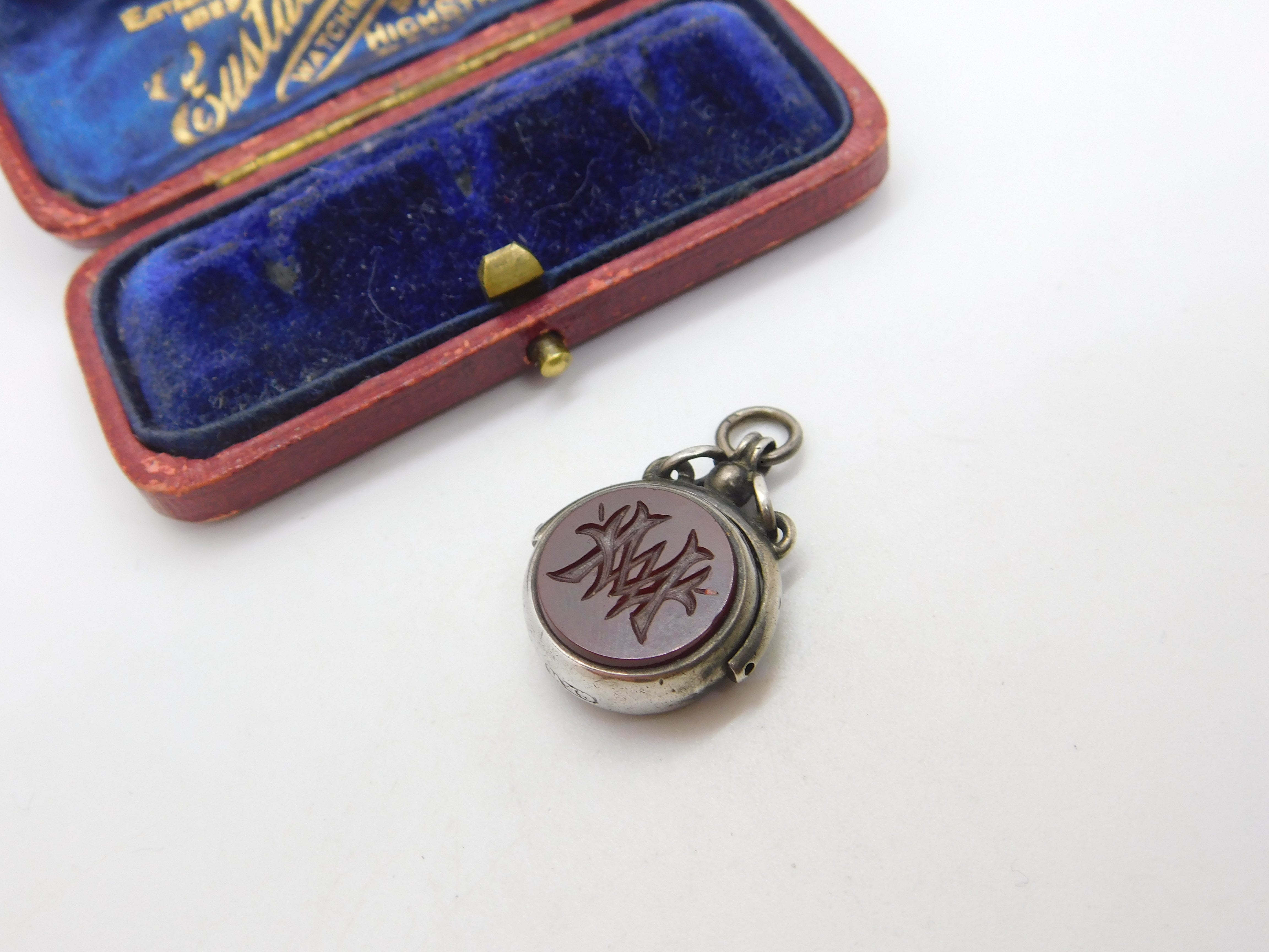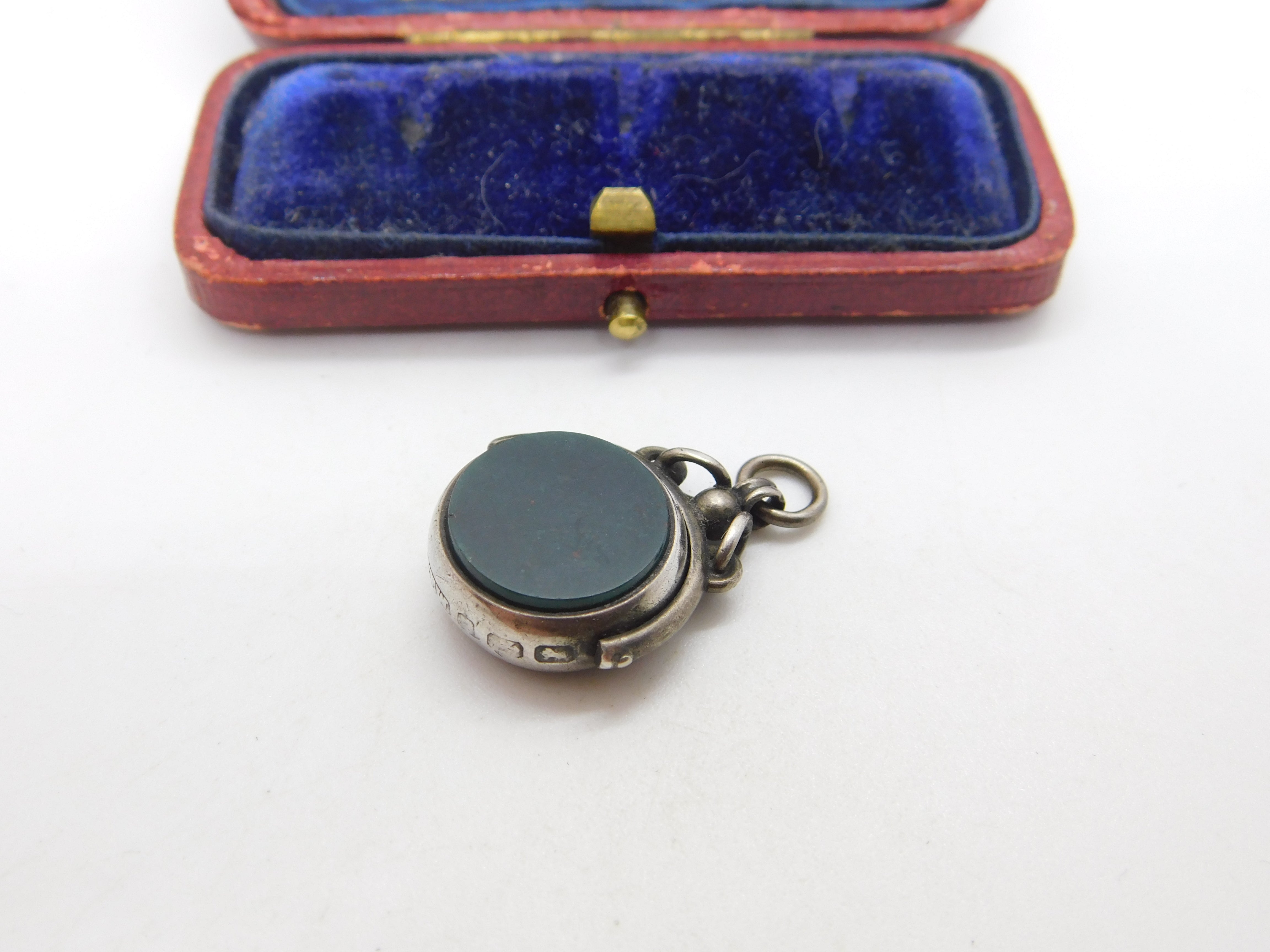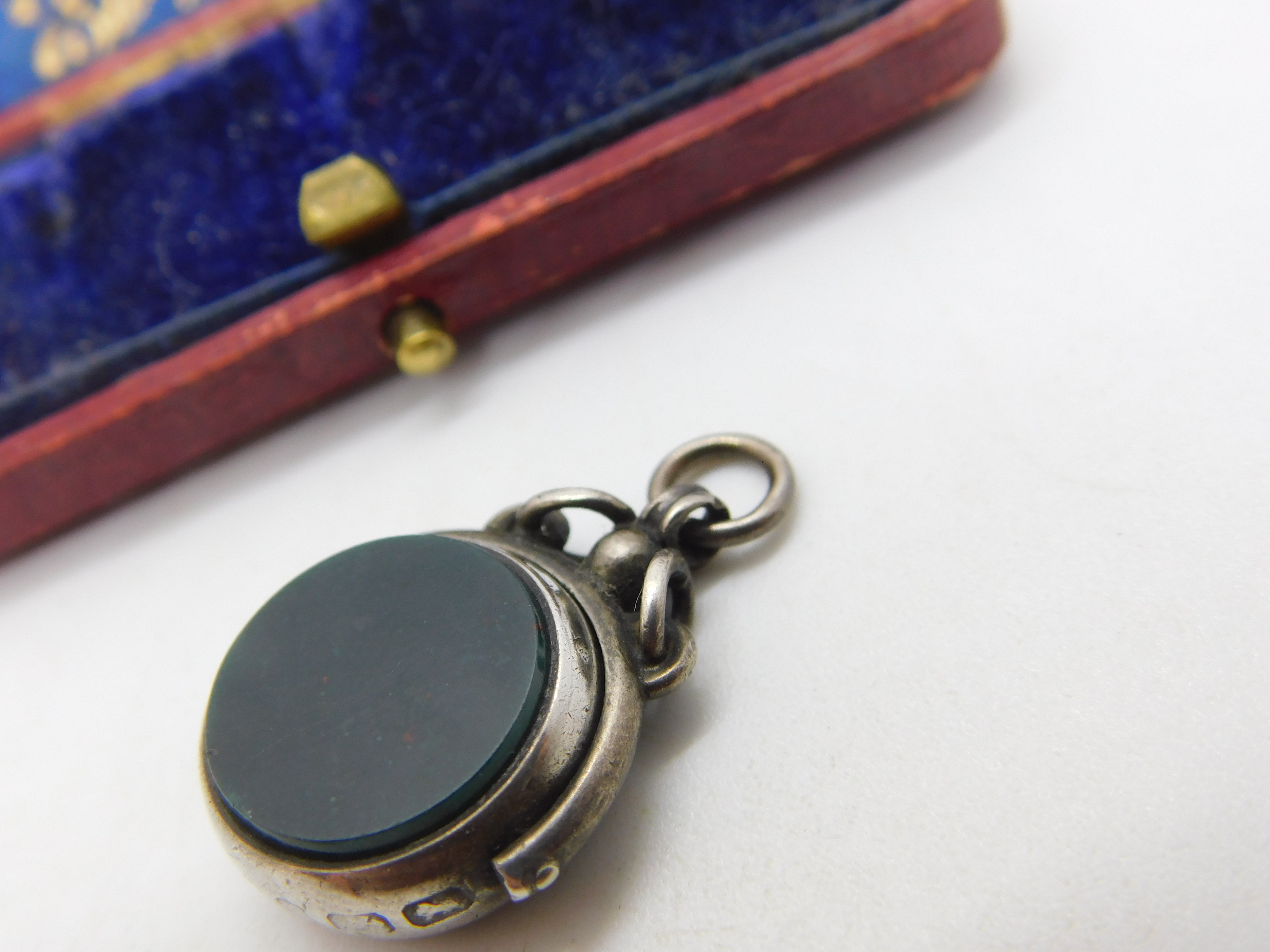 Victorian Sterling Silver Spinning Fob Pendant Bloodstone & Carved Carnelian