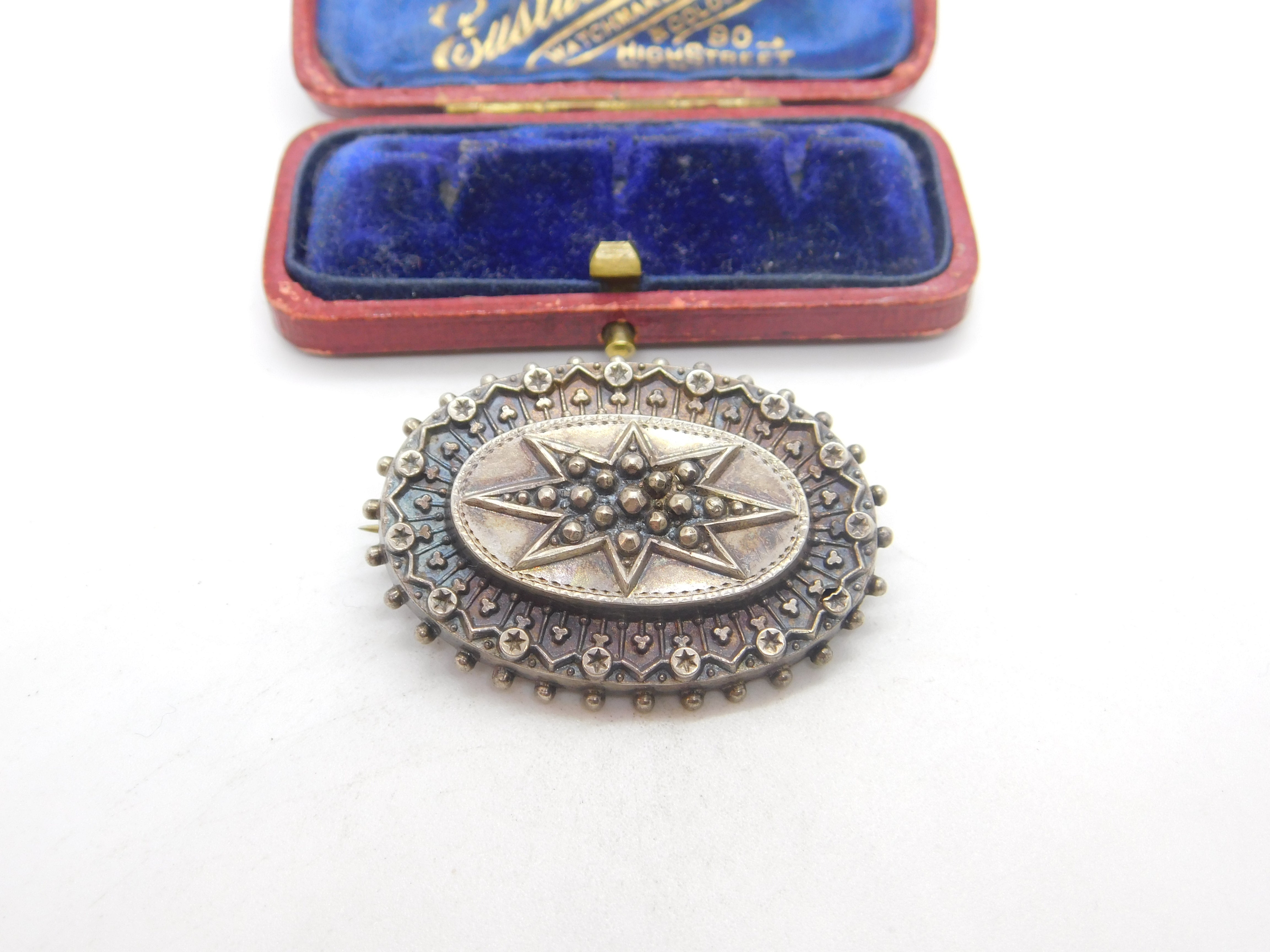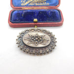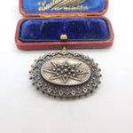Victorian Sterling Silver Starburst Mourning Brooch Antique c1860