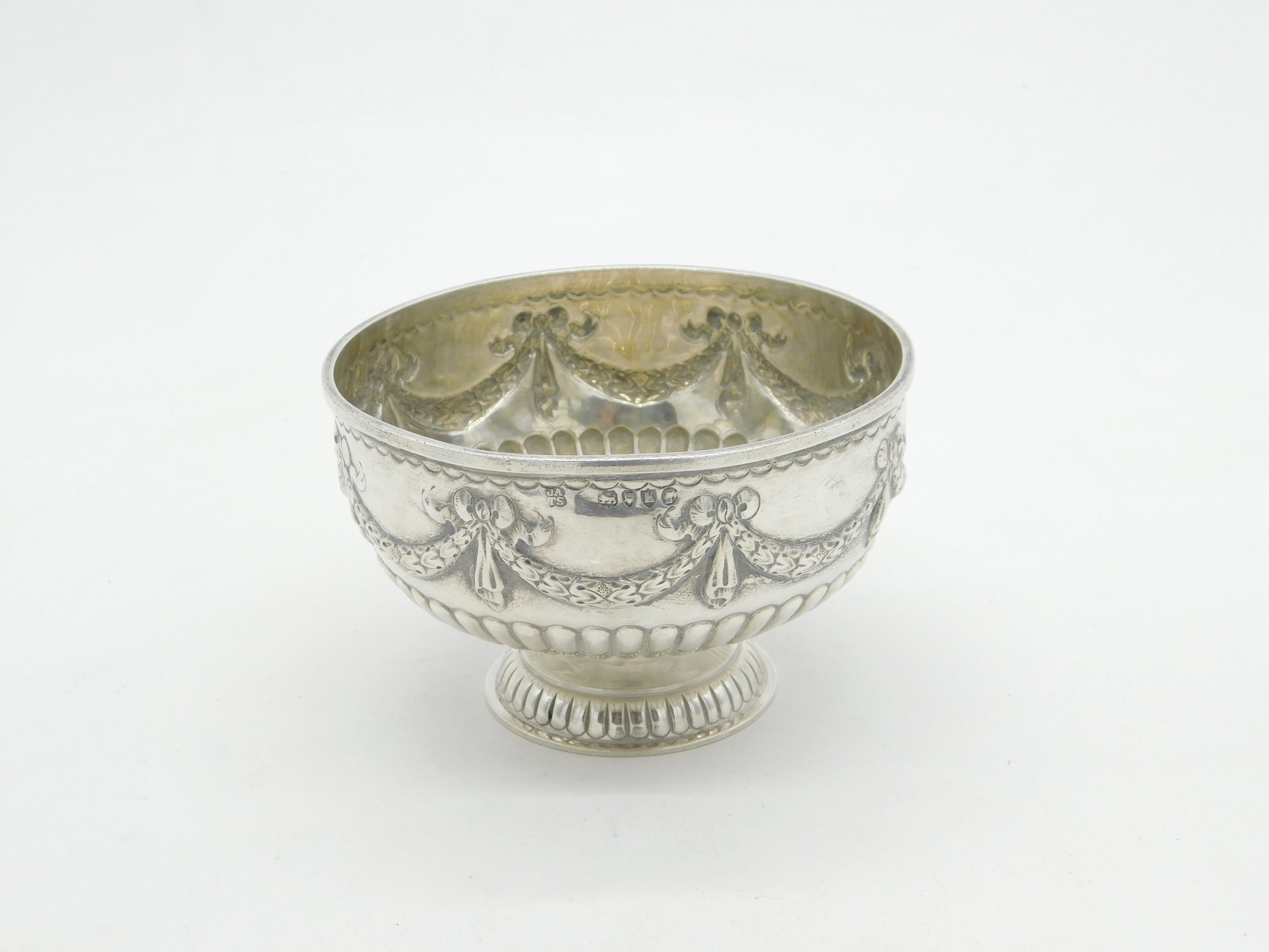 Victorian Sterling Silver Swag & Bow Pattern Sugar Bowl 1885 London Antique