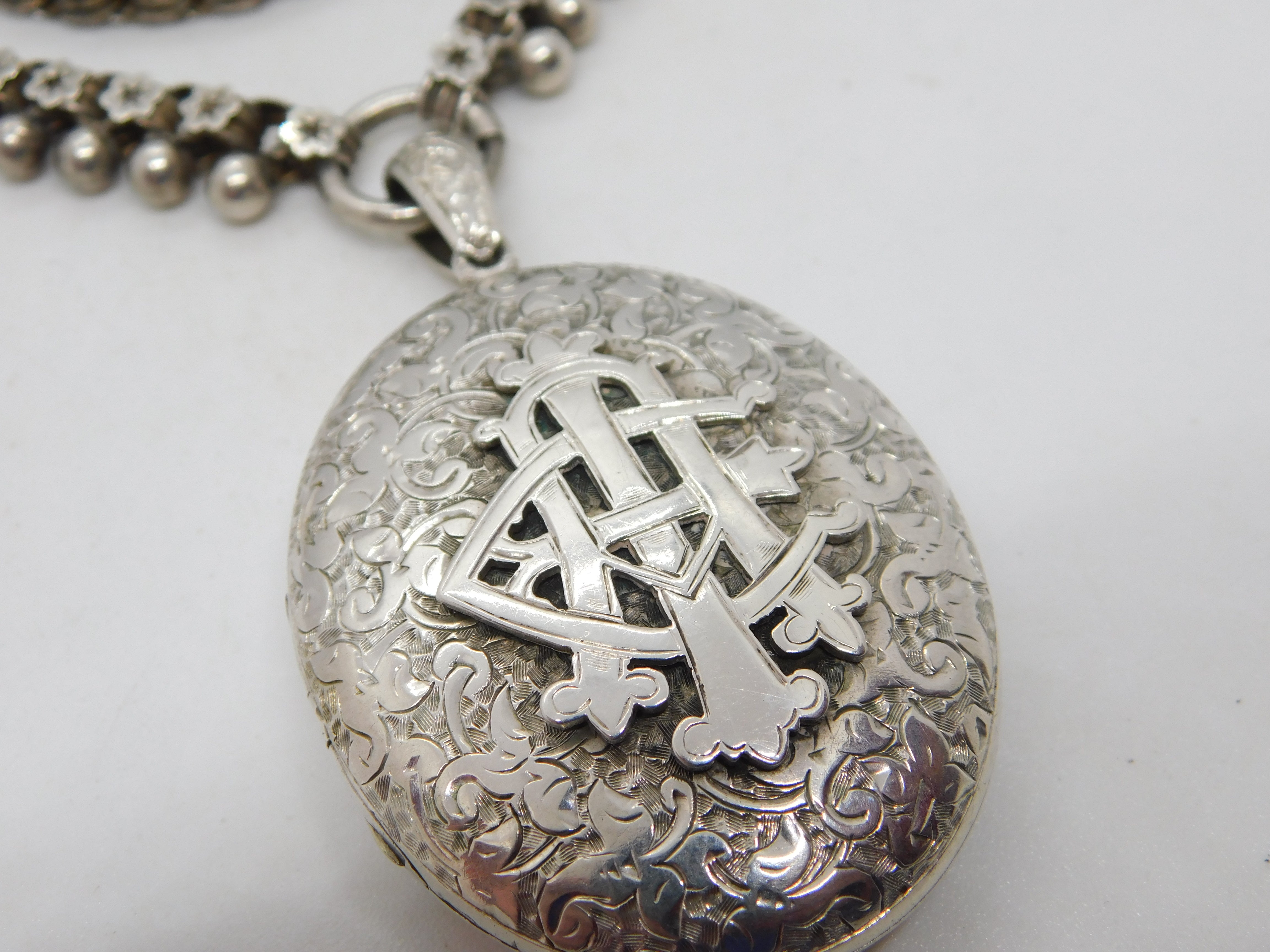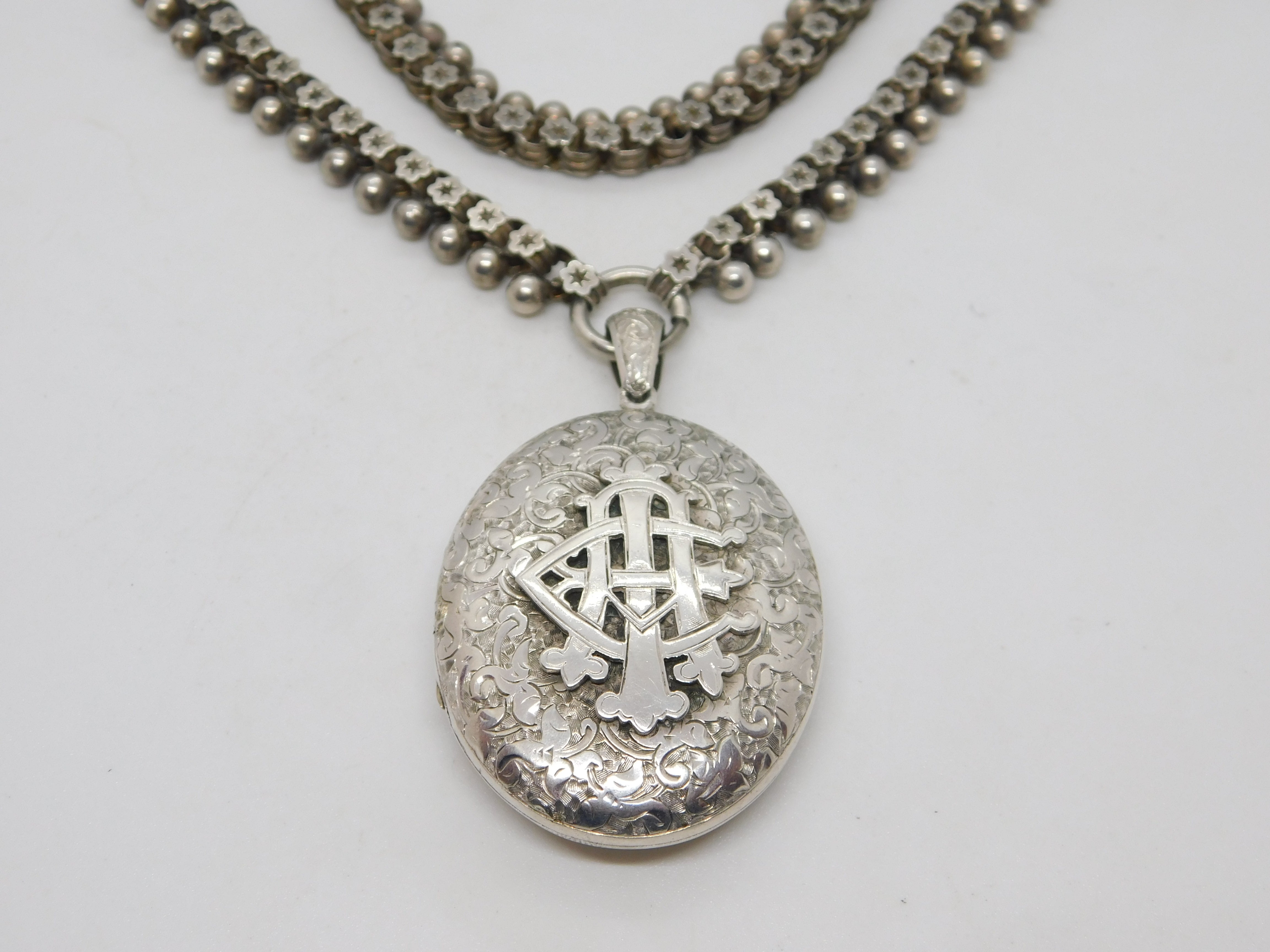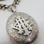 Details: A fantastic and wonderfully designed antique Victorian sterling silver aesthetic floral pattern sweetheart monogram locket set on a stunning fancy link book or collar chain c1860, the silver has been XRF tested as it is unmarked. This is a wonderful item that would make a perfect gift or addition to any collection. The BOX pictured is for PRESENTATION ONLY and is NOT included in the listings but used to frame the pictures unless specifically stated otherwise.