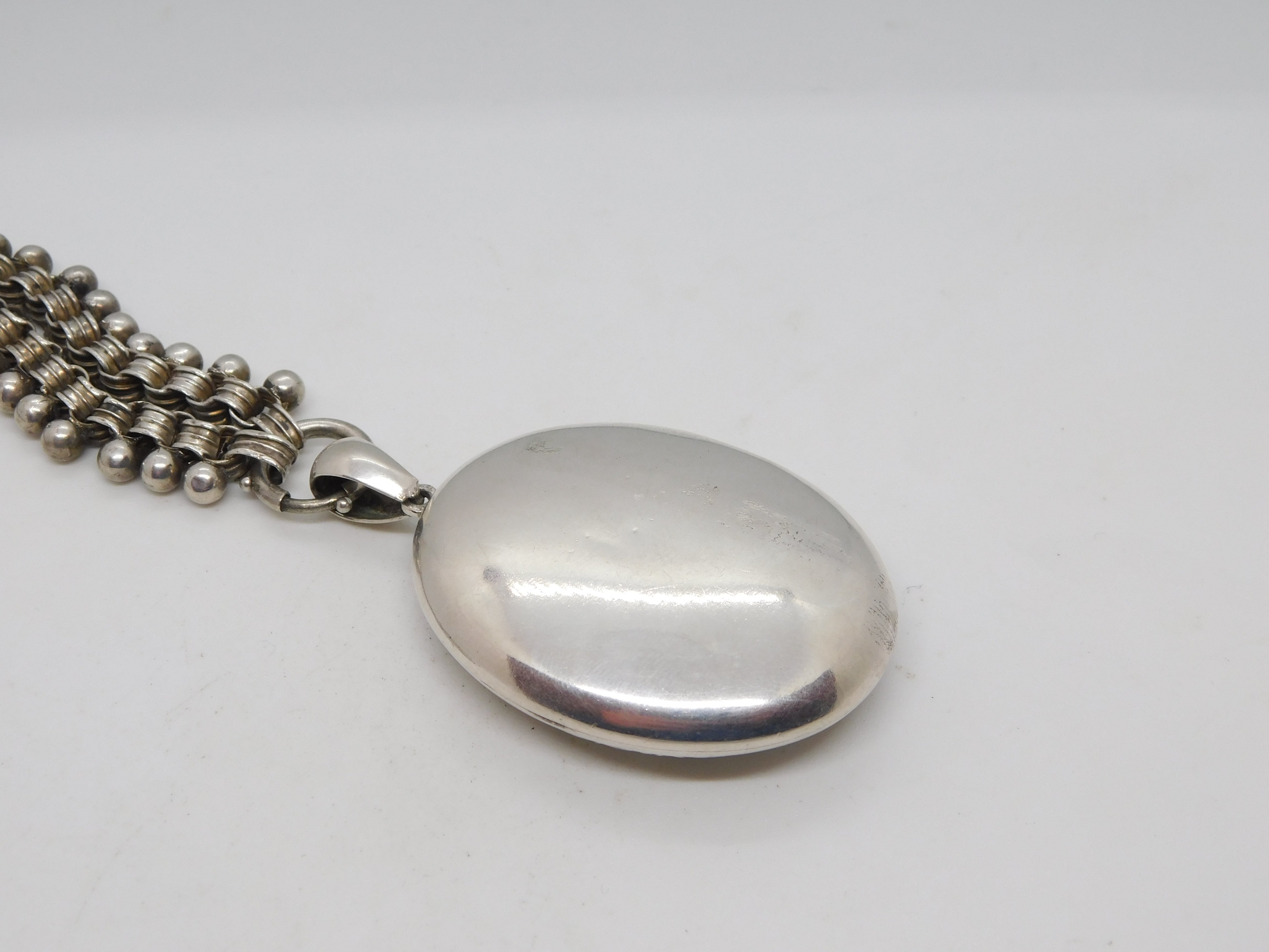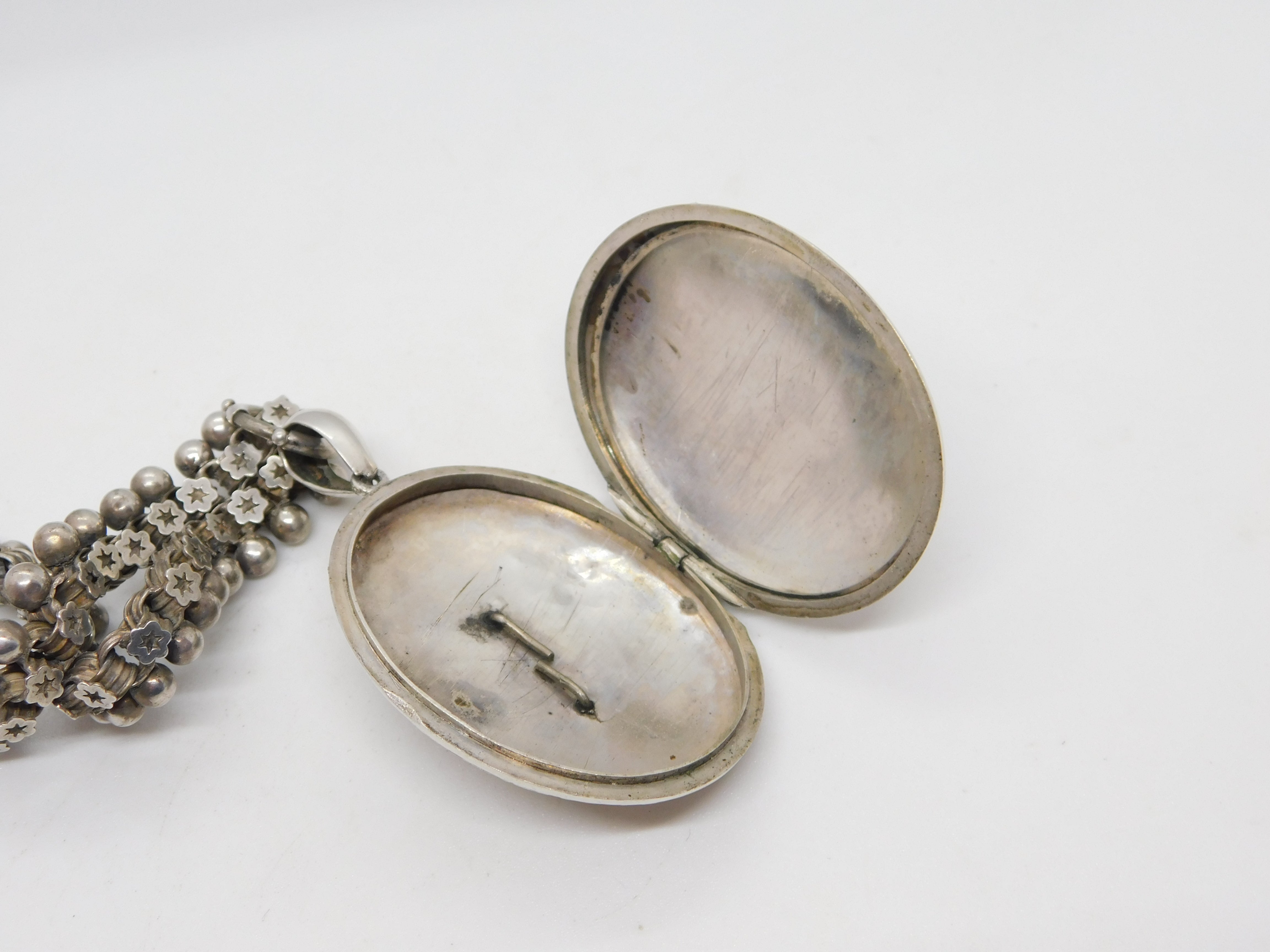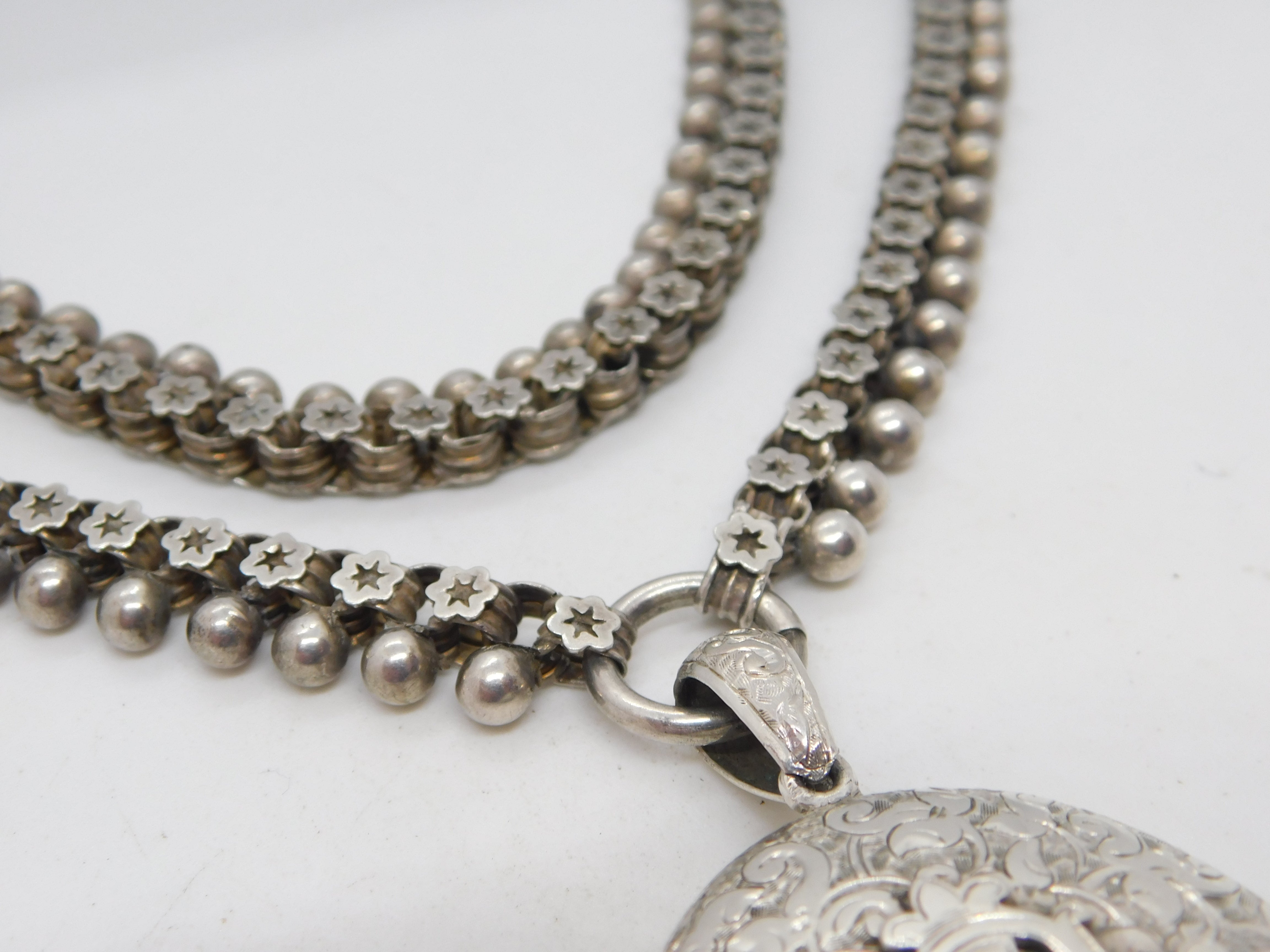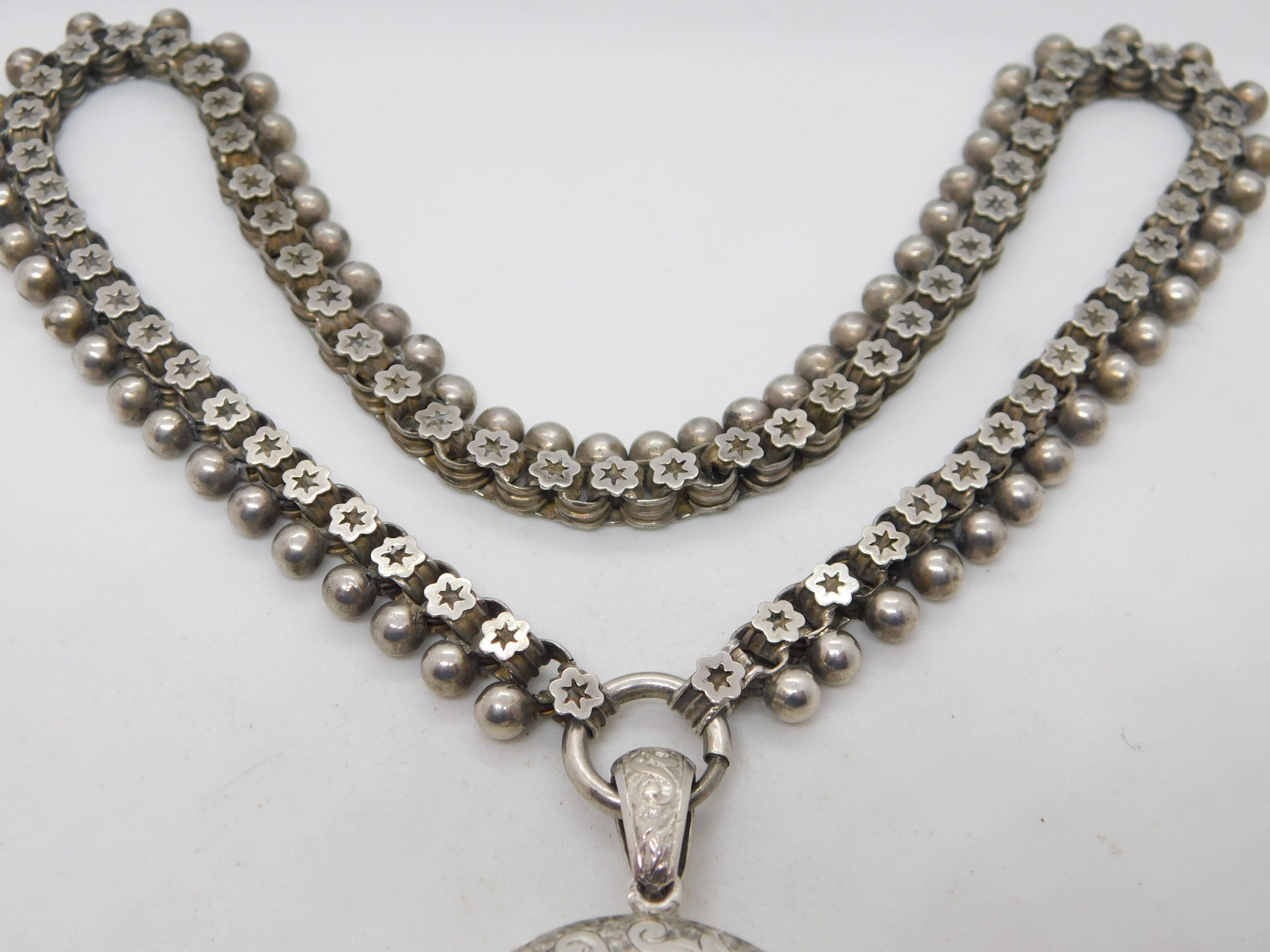 Victorian Sterling Silver Sweetheart Locket on Collar Necklace Antique c1860