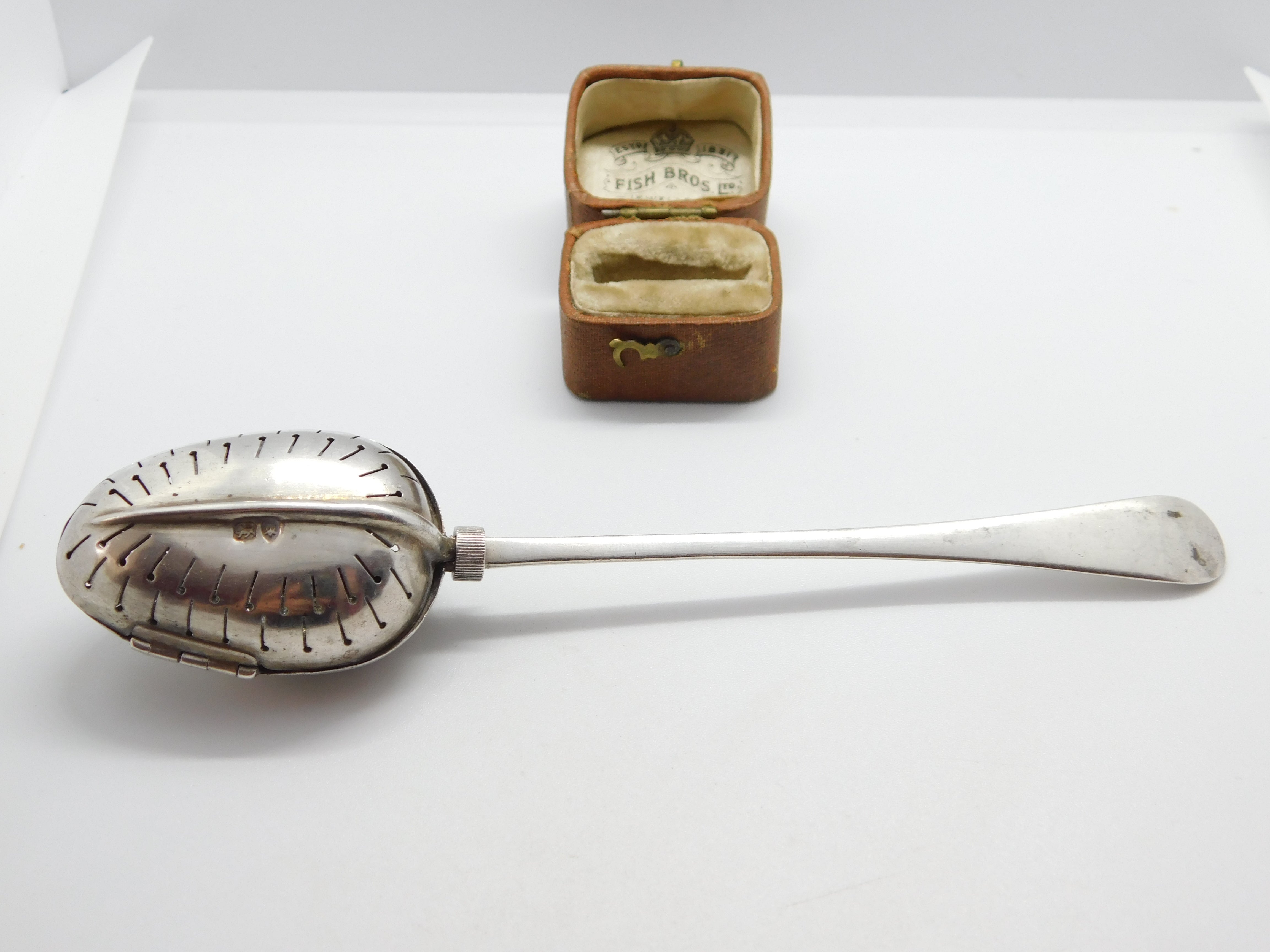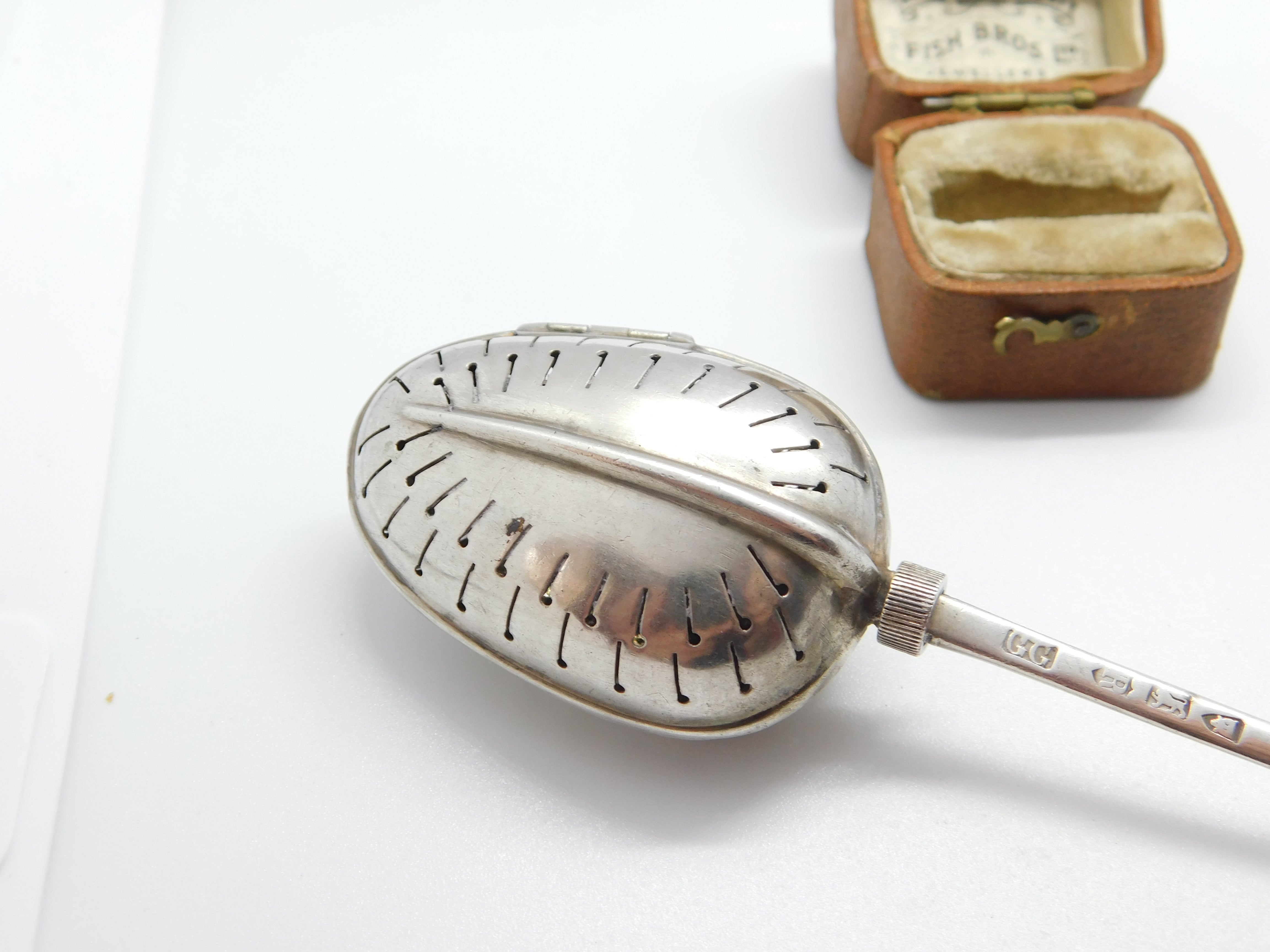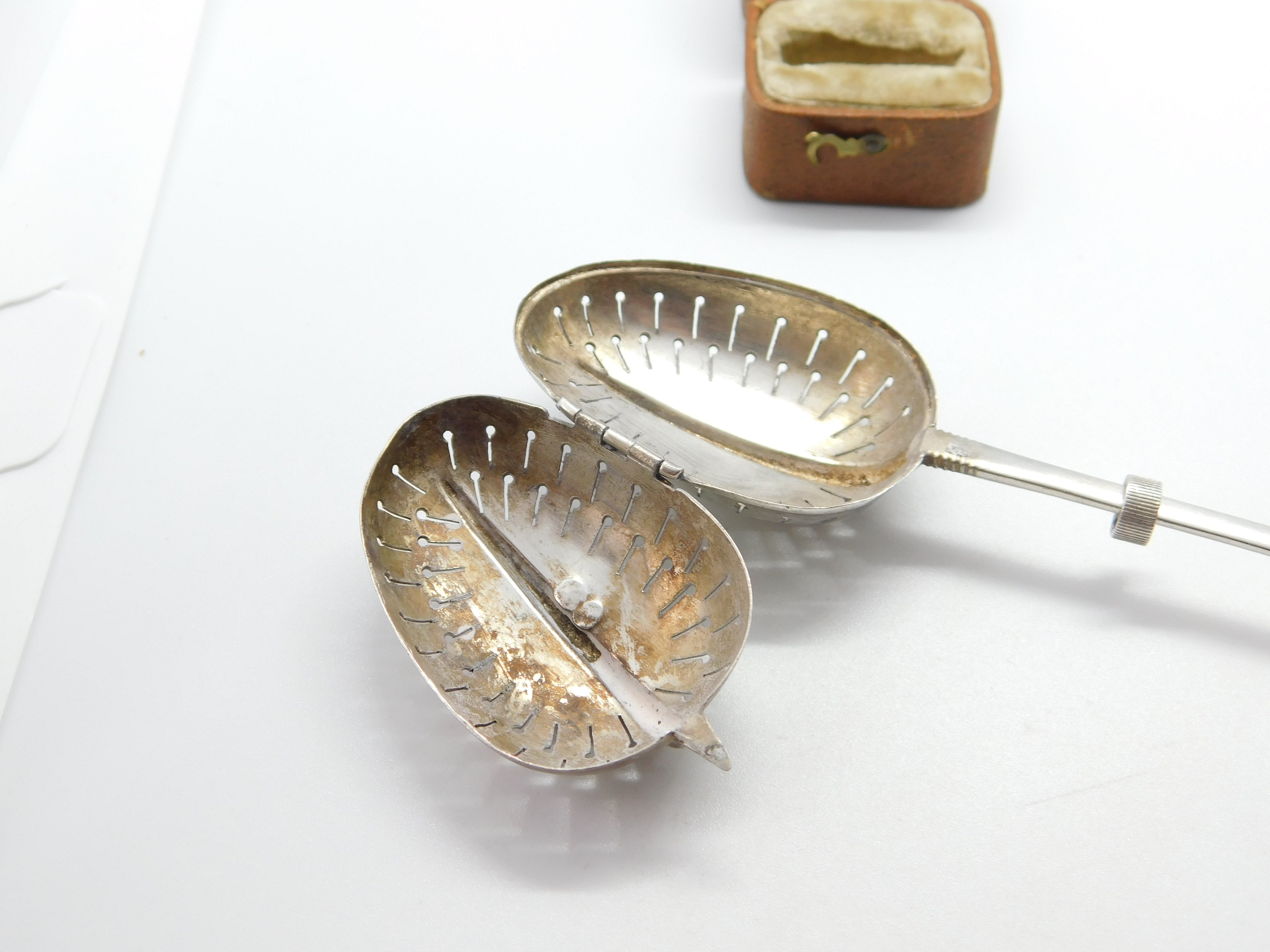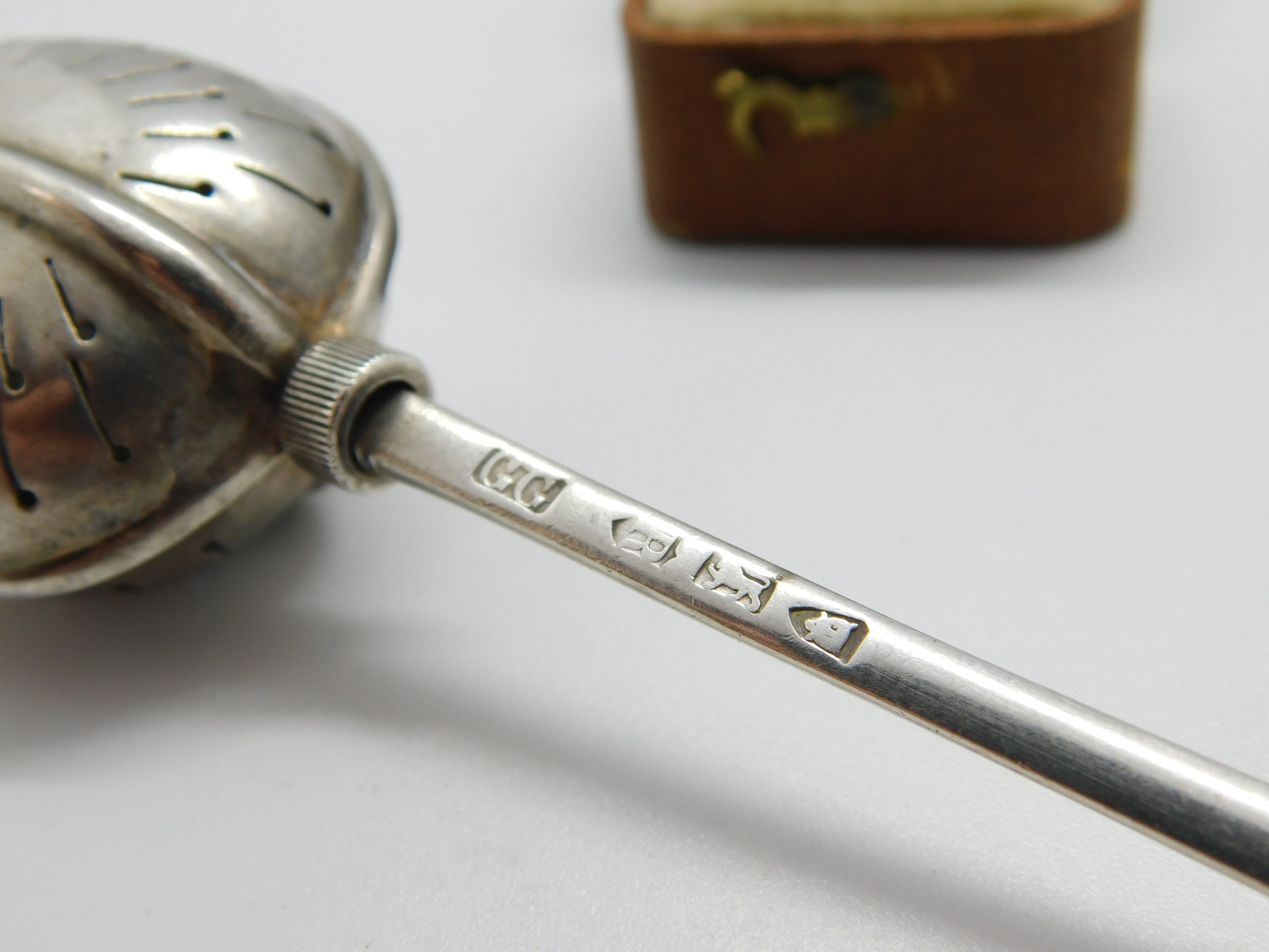 Details: A fantastic and wonderfully designed antique Victorian sterling silver 'Teaette' patent tea infuser spoon with charming detailing hallmarked London, 1892 by George Gray. Lovely screw mechanism and excellent condition. This is a wonderful item that would make a perfect gift or addition to any collection. The BOX pictured is for PRESENTATION ONLY and is NOT included in the listings but used to frame the pictures unless specifically stated otherwise.