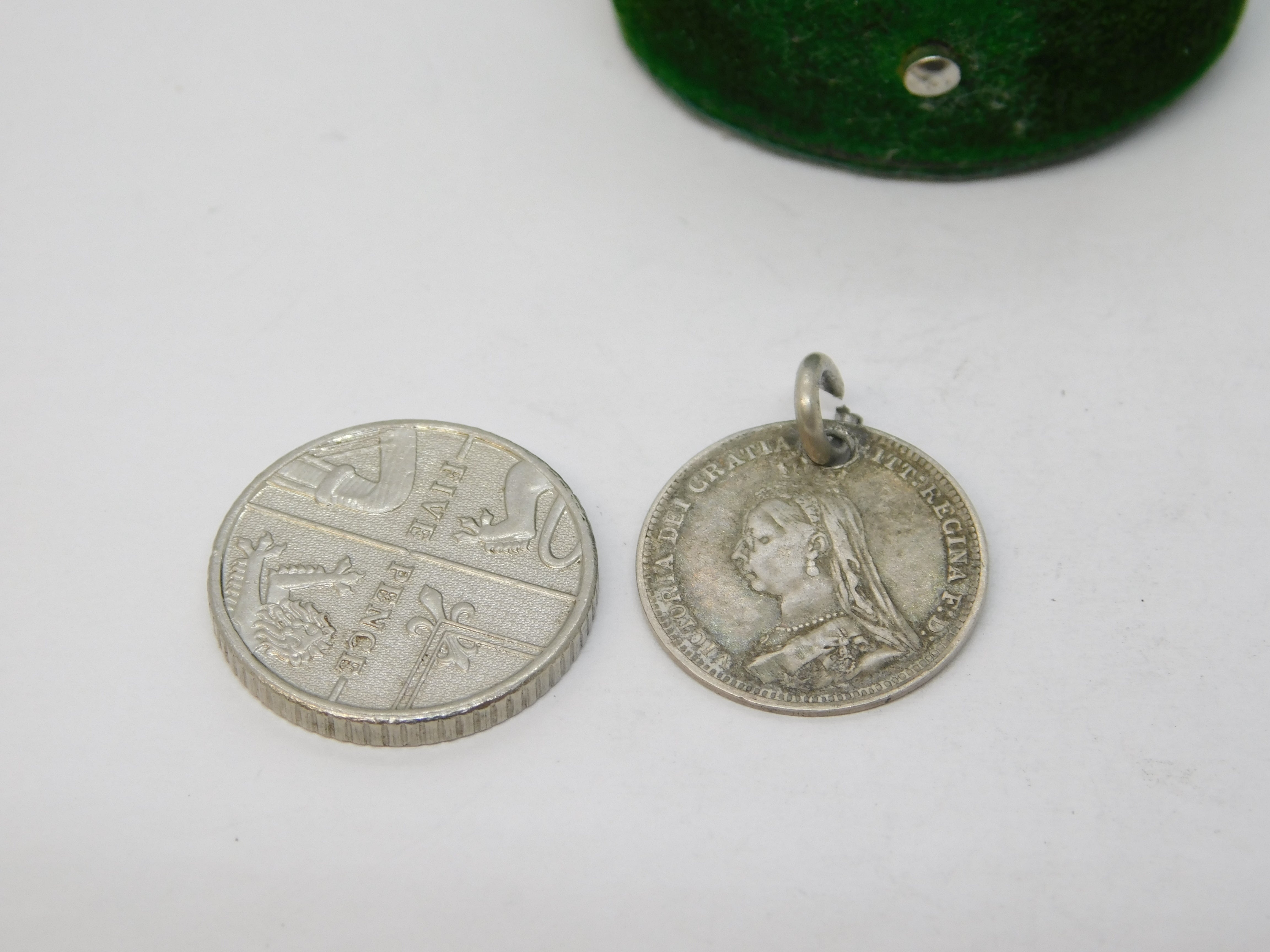 Victorian Sterling Silver Threepence 'Bee' Engraved Love Token Charm Antique c1880