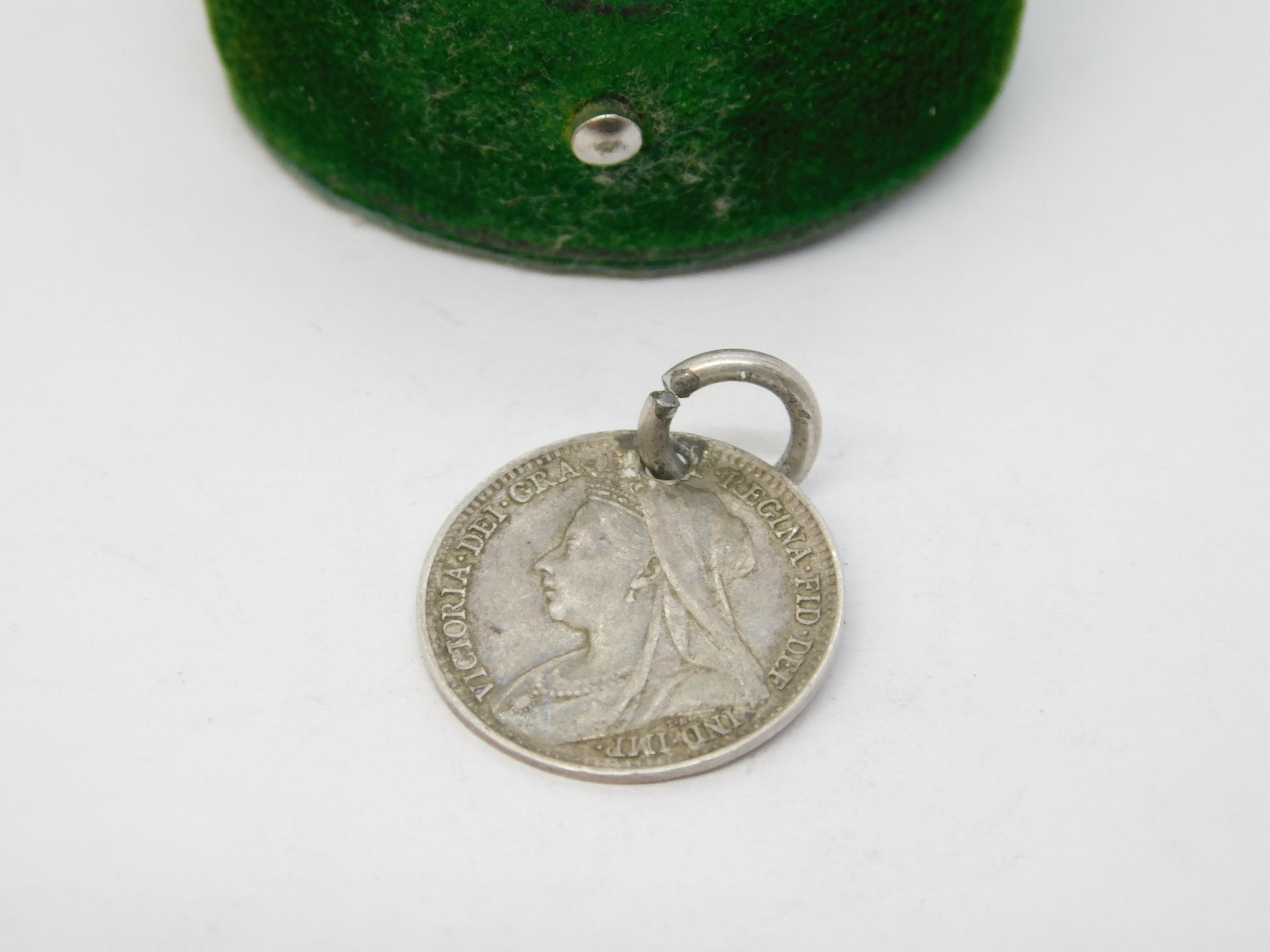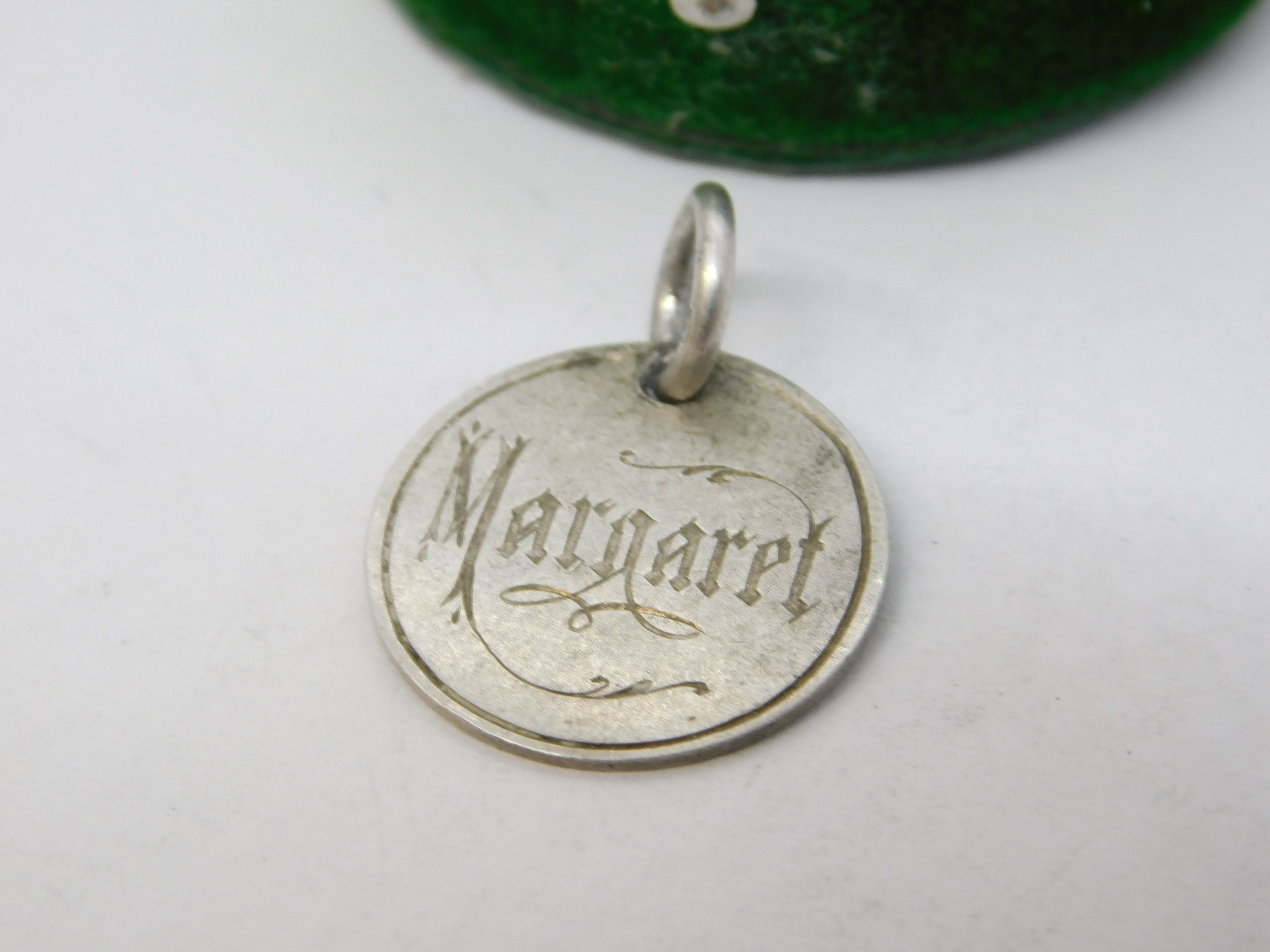 Victorian Sterling Silver Threepence Margaret Engraved Love Token Charm Antique c1880