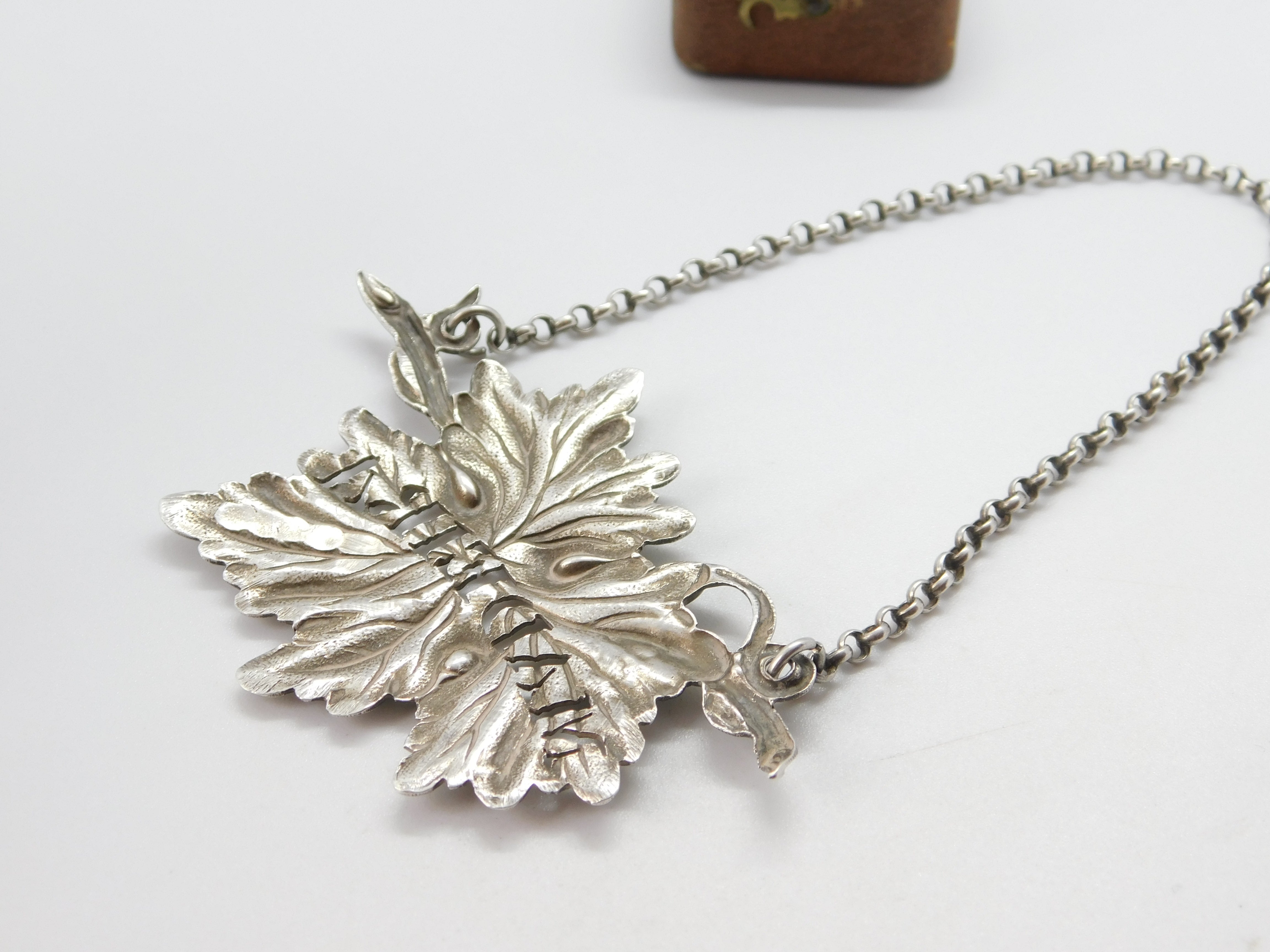 Details: A fantastic and wonderfully designed antique Victorian sterling silver madeira decanter label in the form of a grape vine hallmarked Birmingham, 1846 by Yapp & Woodward. This is a wonderful item that would make a perfect gift or addition to any collection. The BOX pictured is for PRESENTATION ONLY and is NOT included in the listings but used to frame the pictures unless specifically stated otherwise.