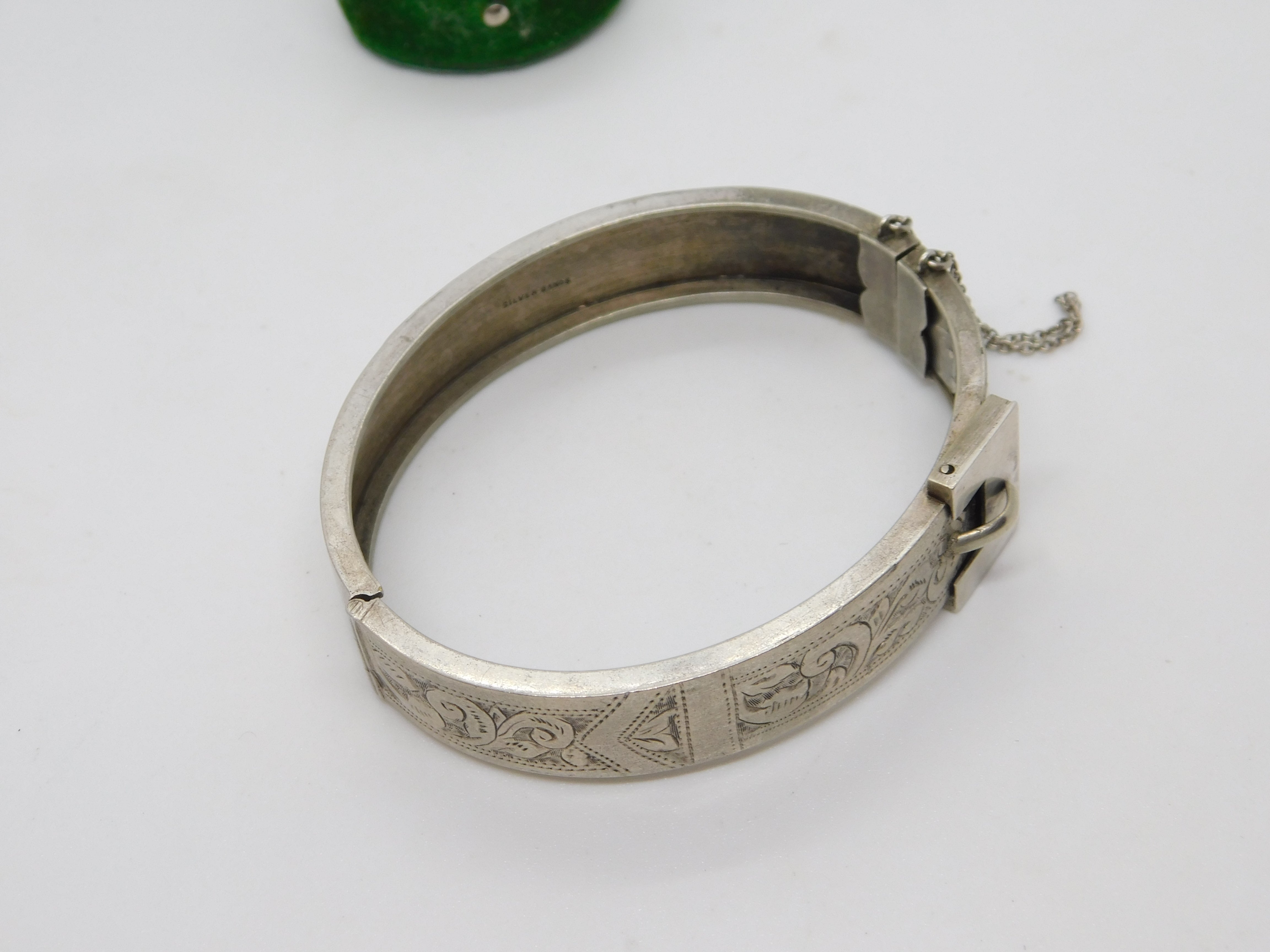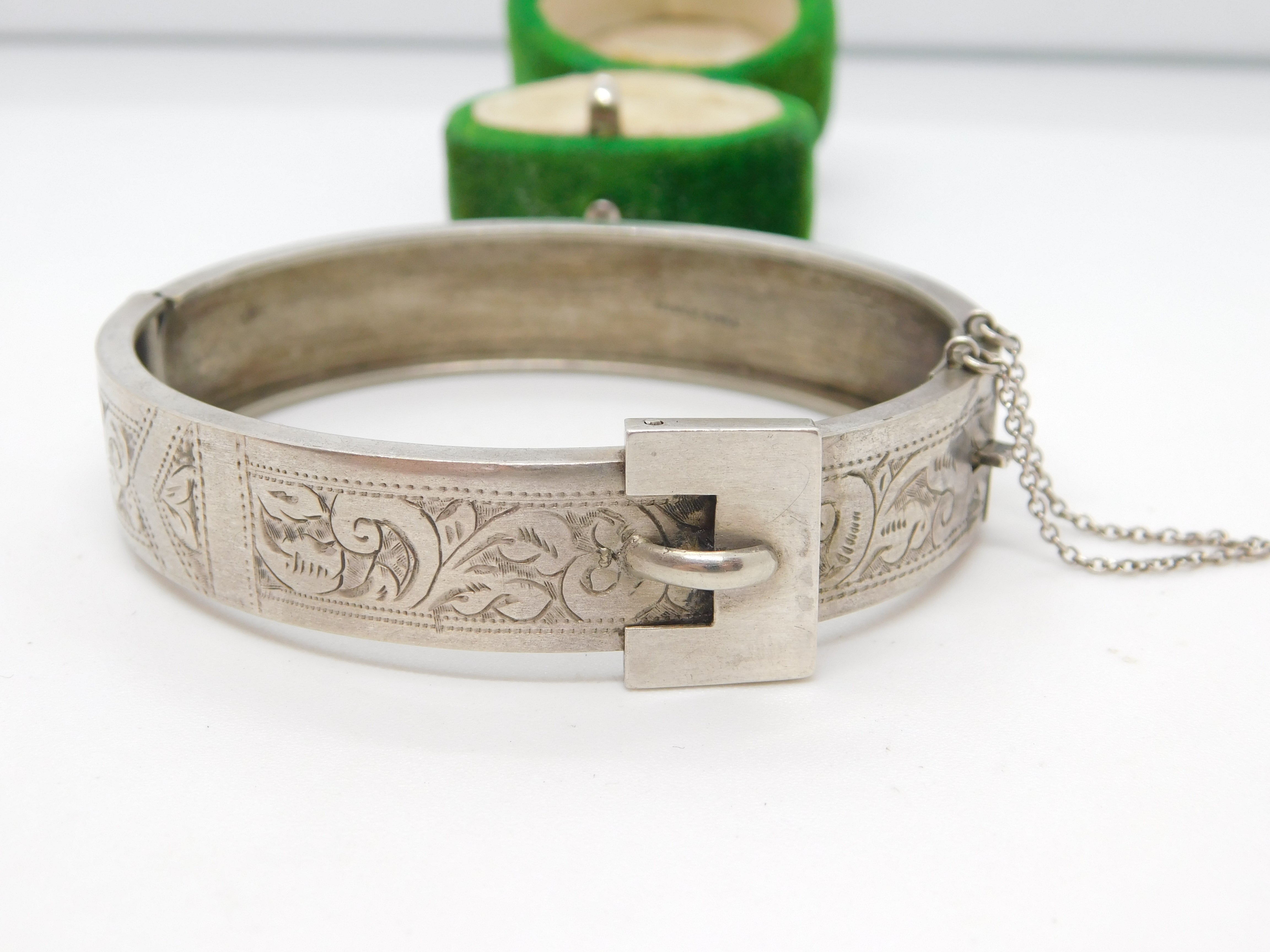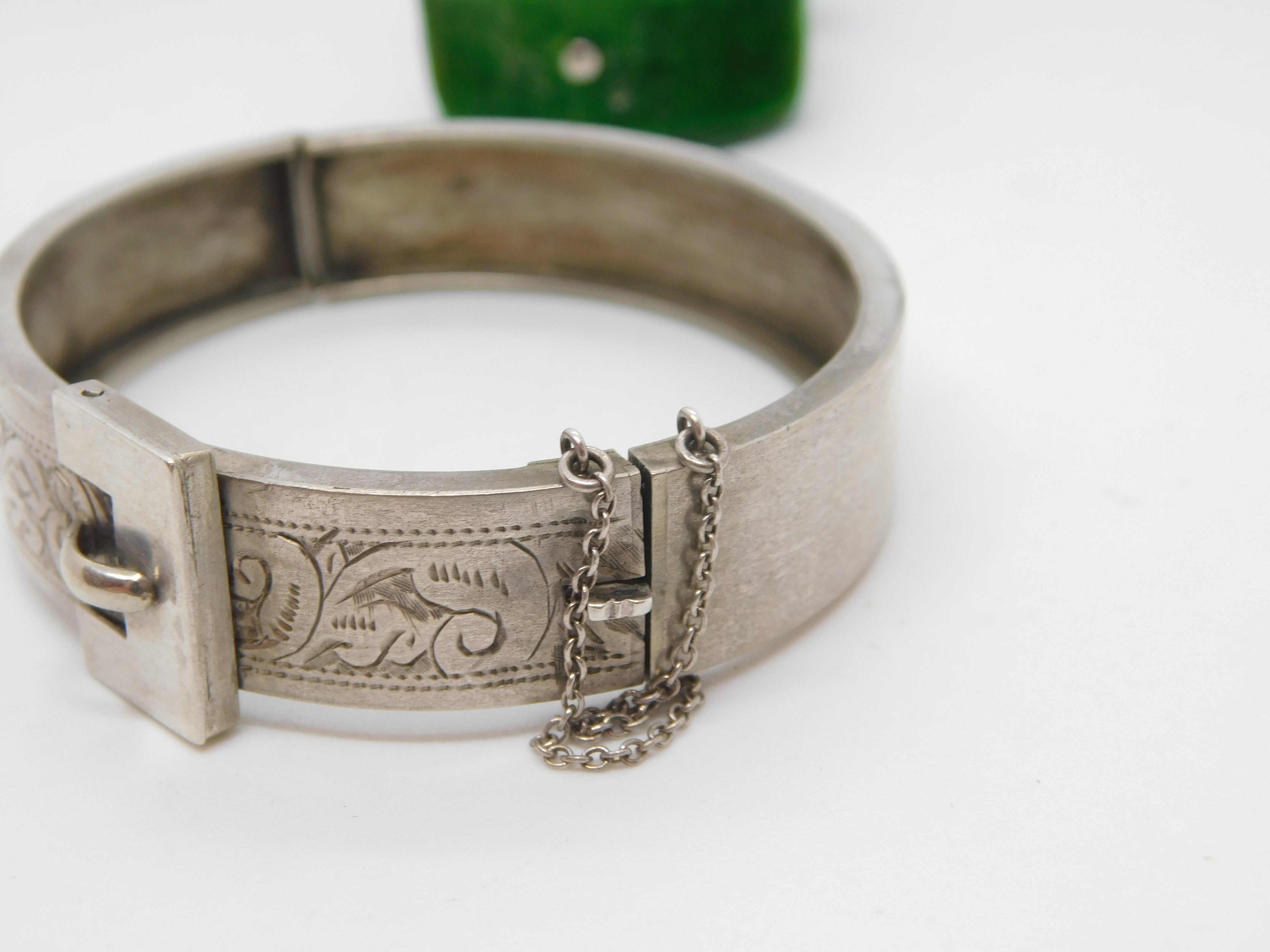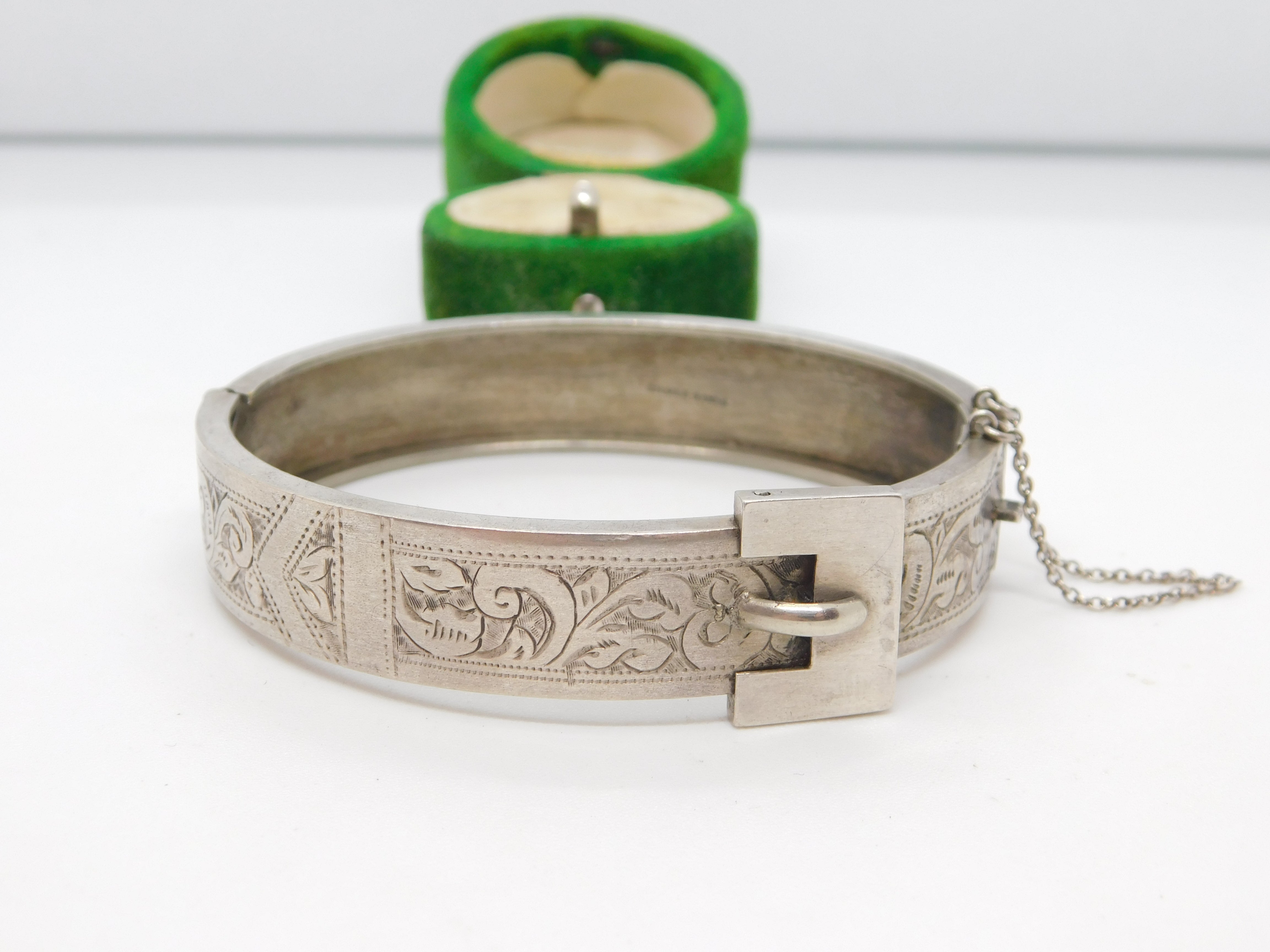 Victorian Sterling Silver Wave Pattern Bangle Bracelet Antique c1900