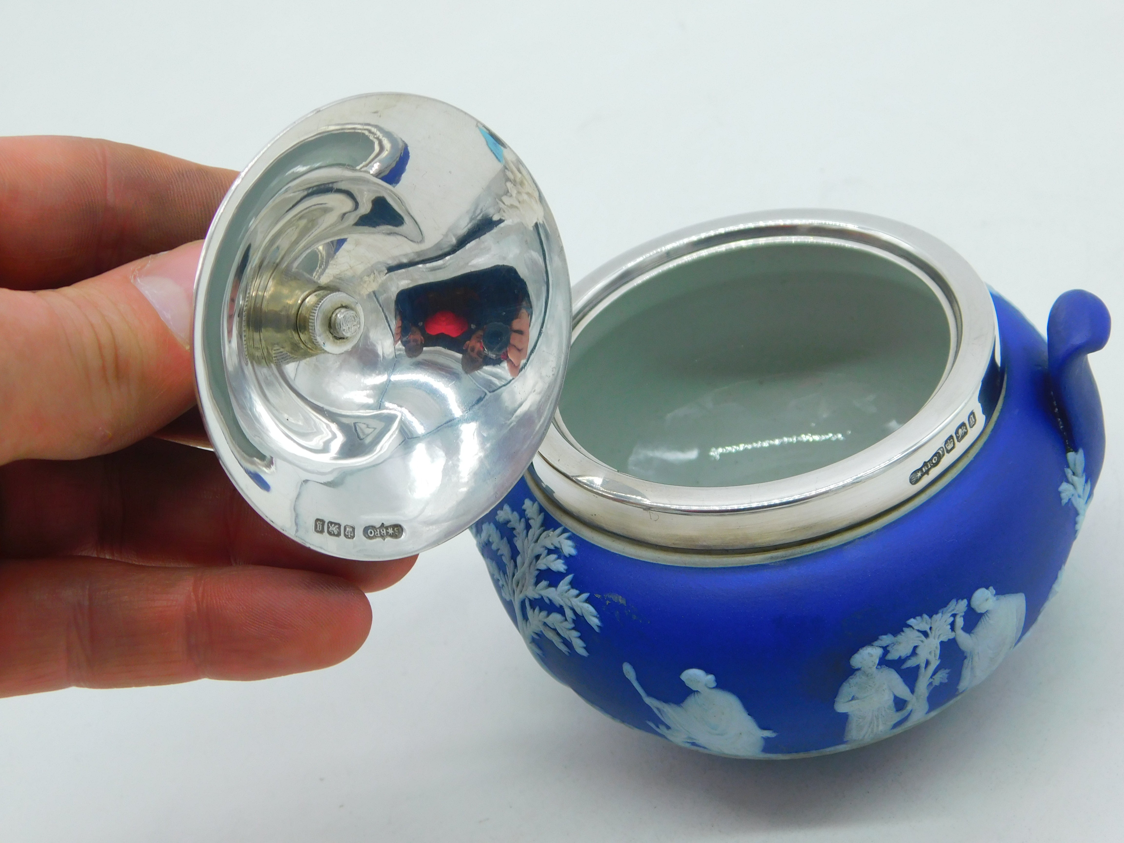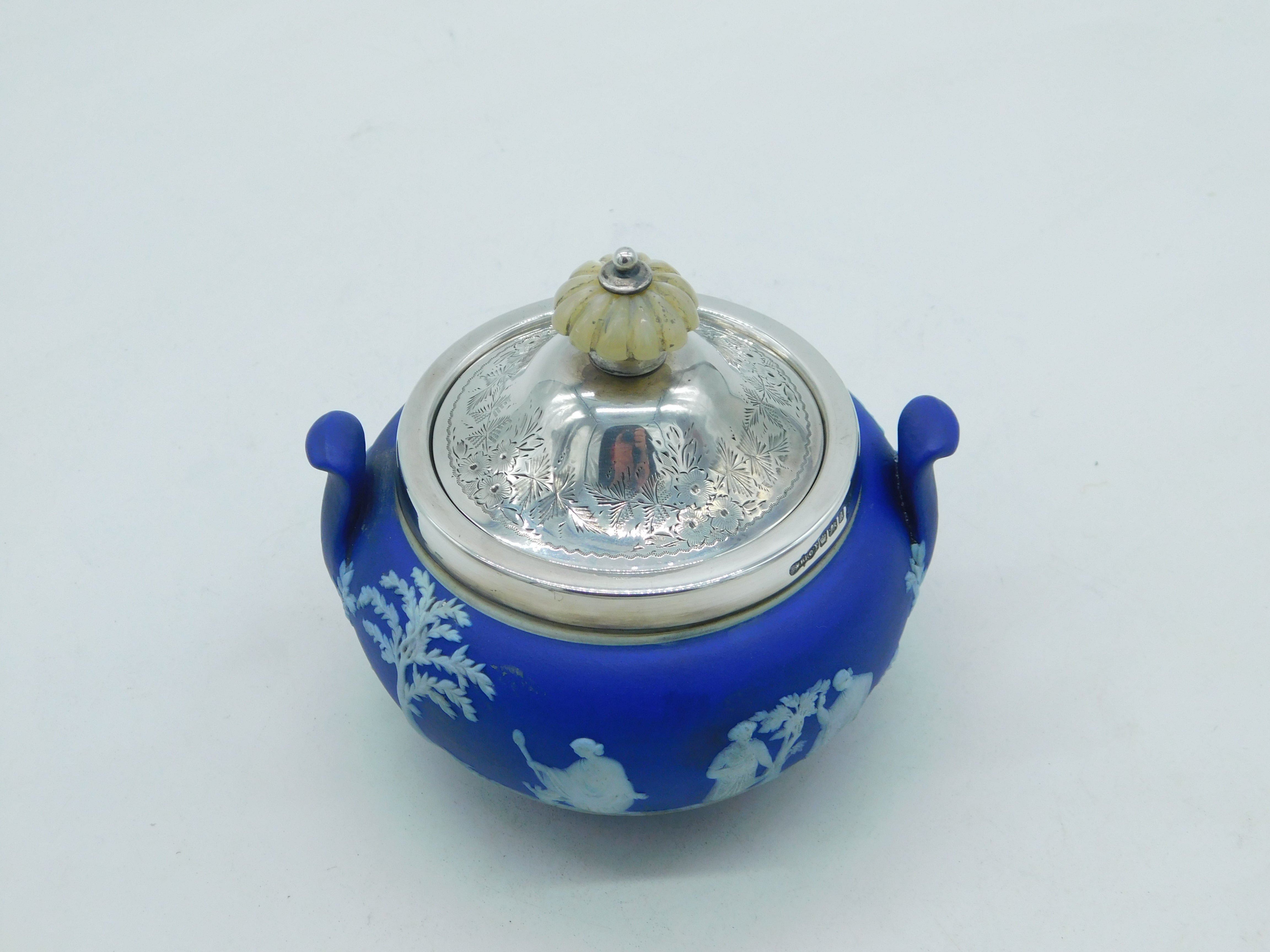 Victorian Sterling Silver & Wedgwood Classical Pattern Sugar Bowl Antique 1899