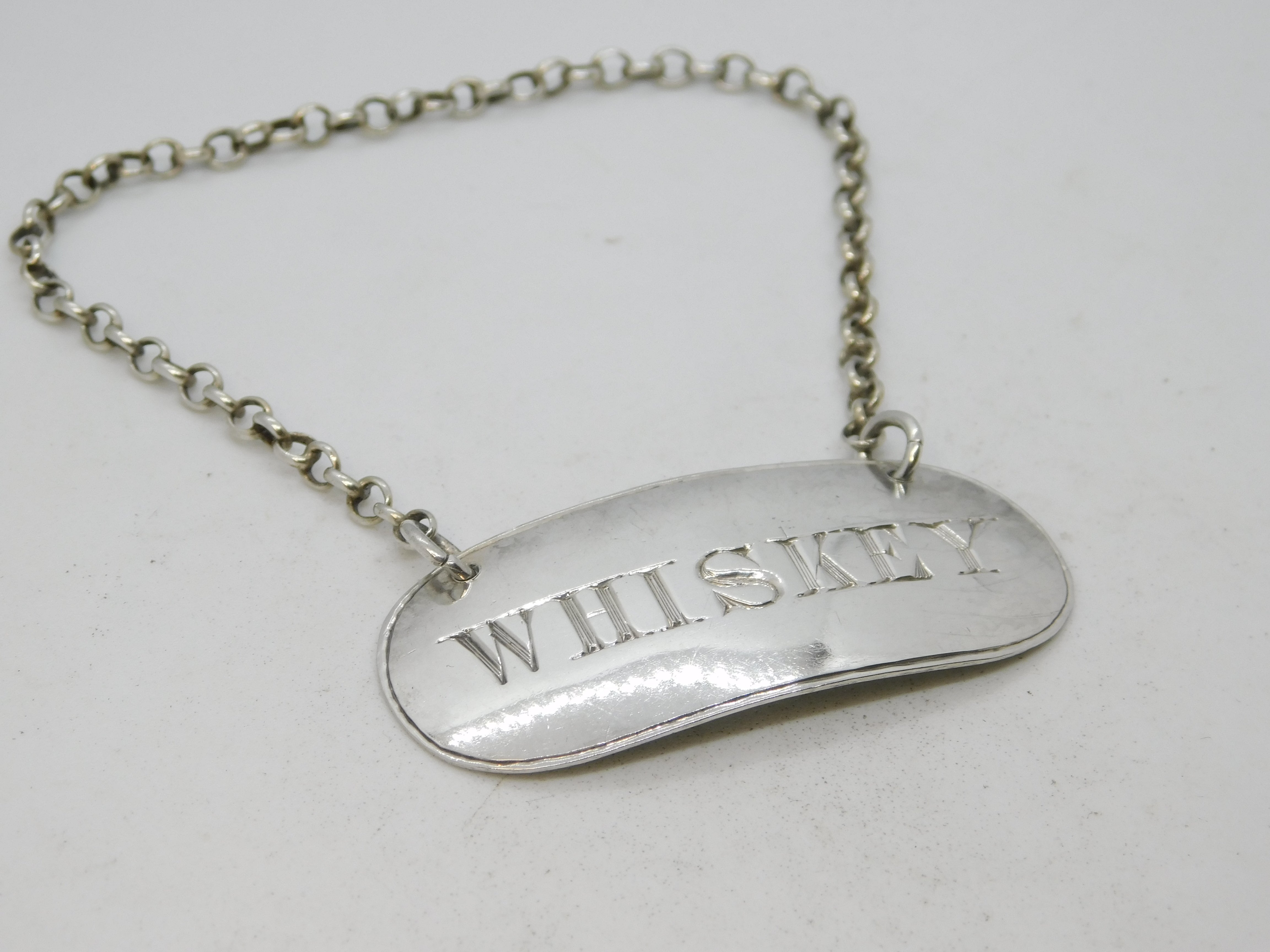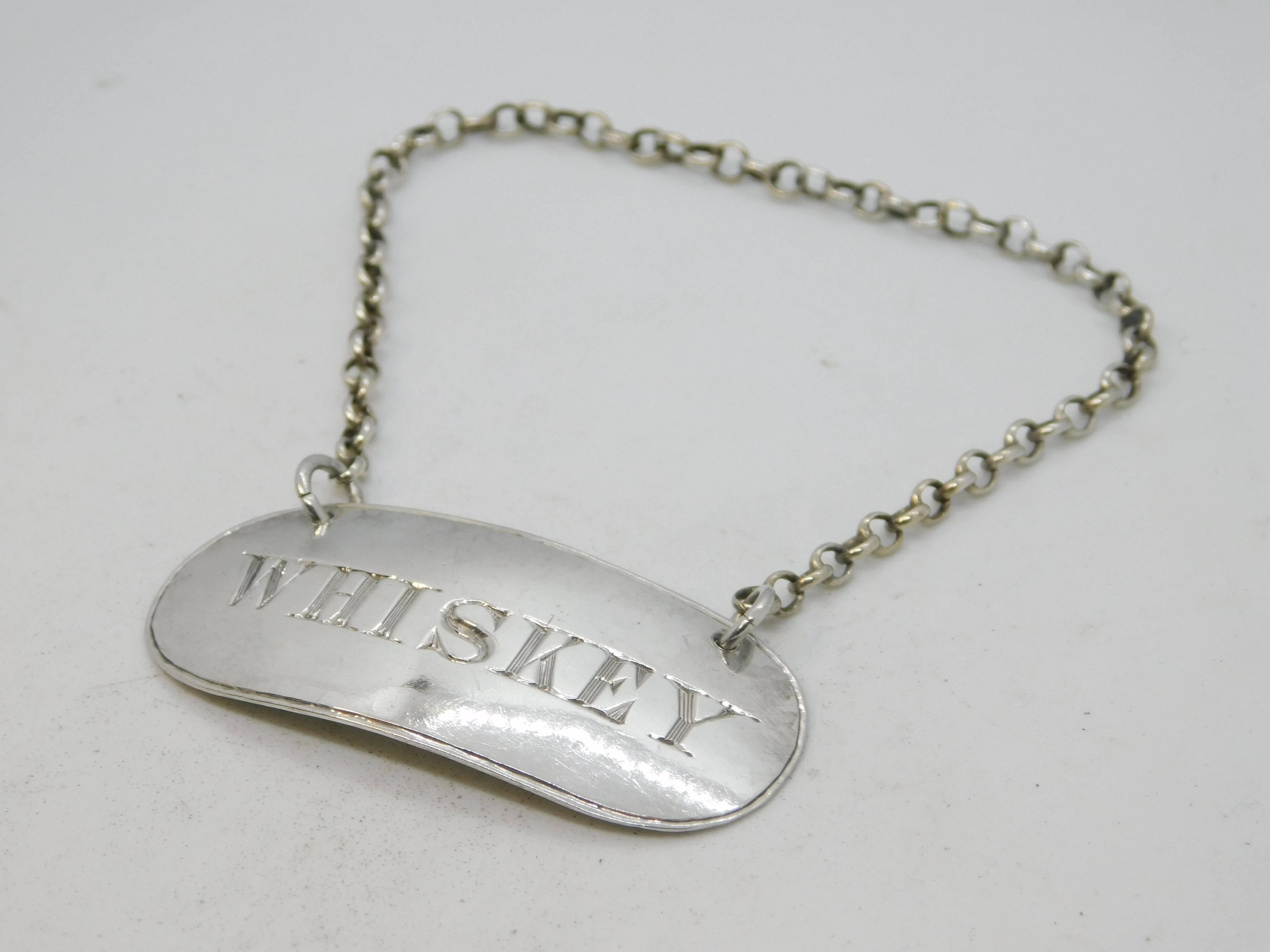 Victorian Sterling Silver Whisky Decanter Label Antique 1870 Birmingham G. Unite