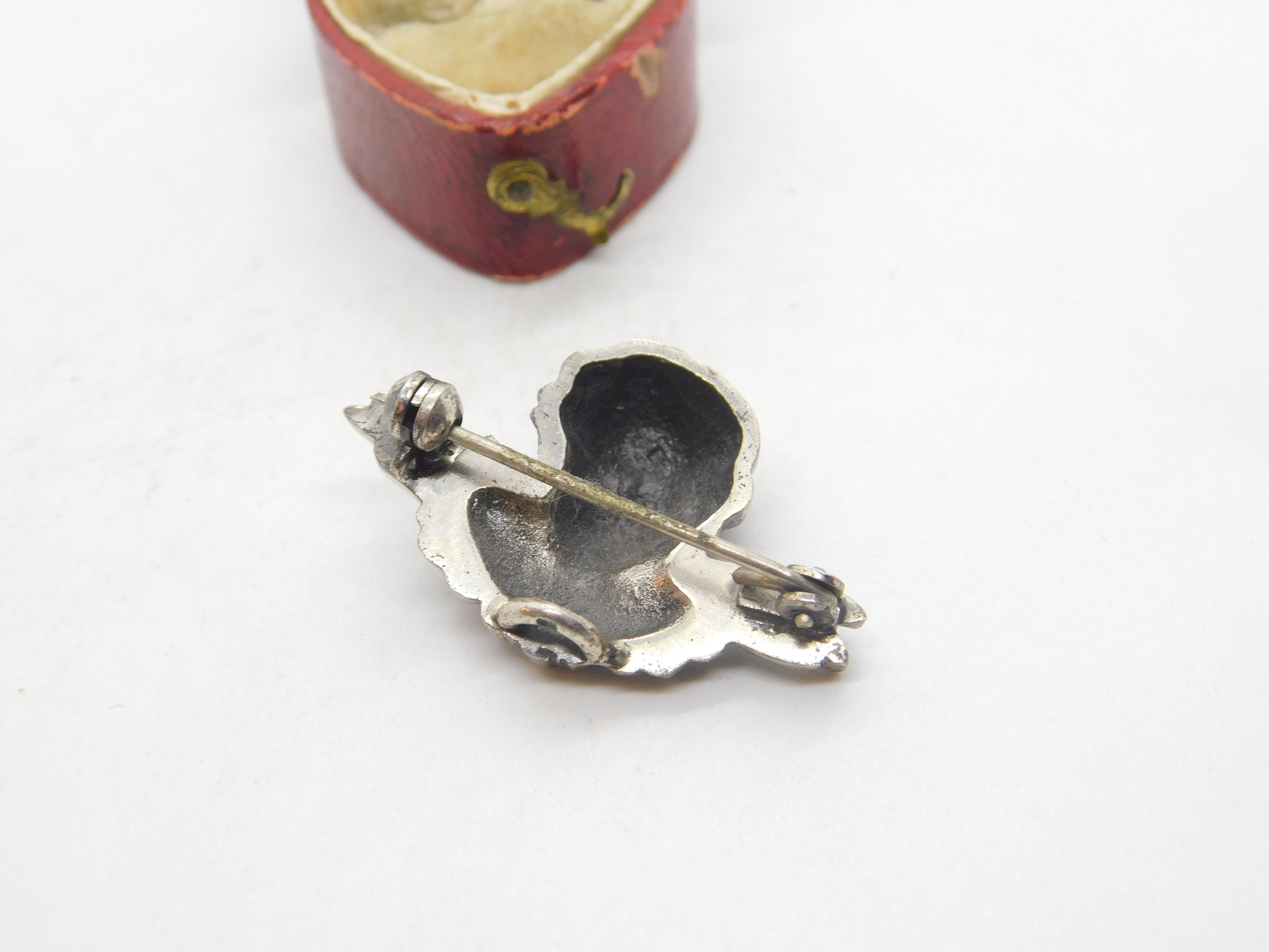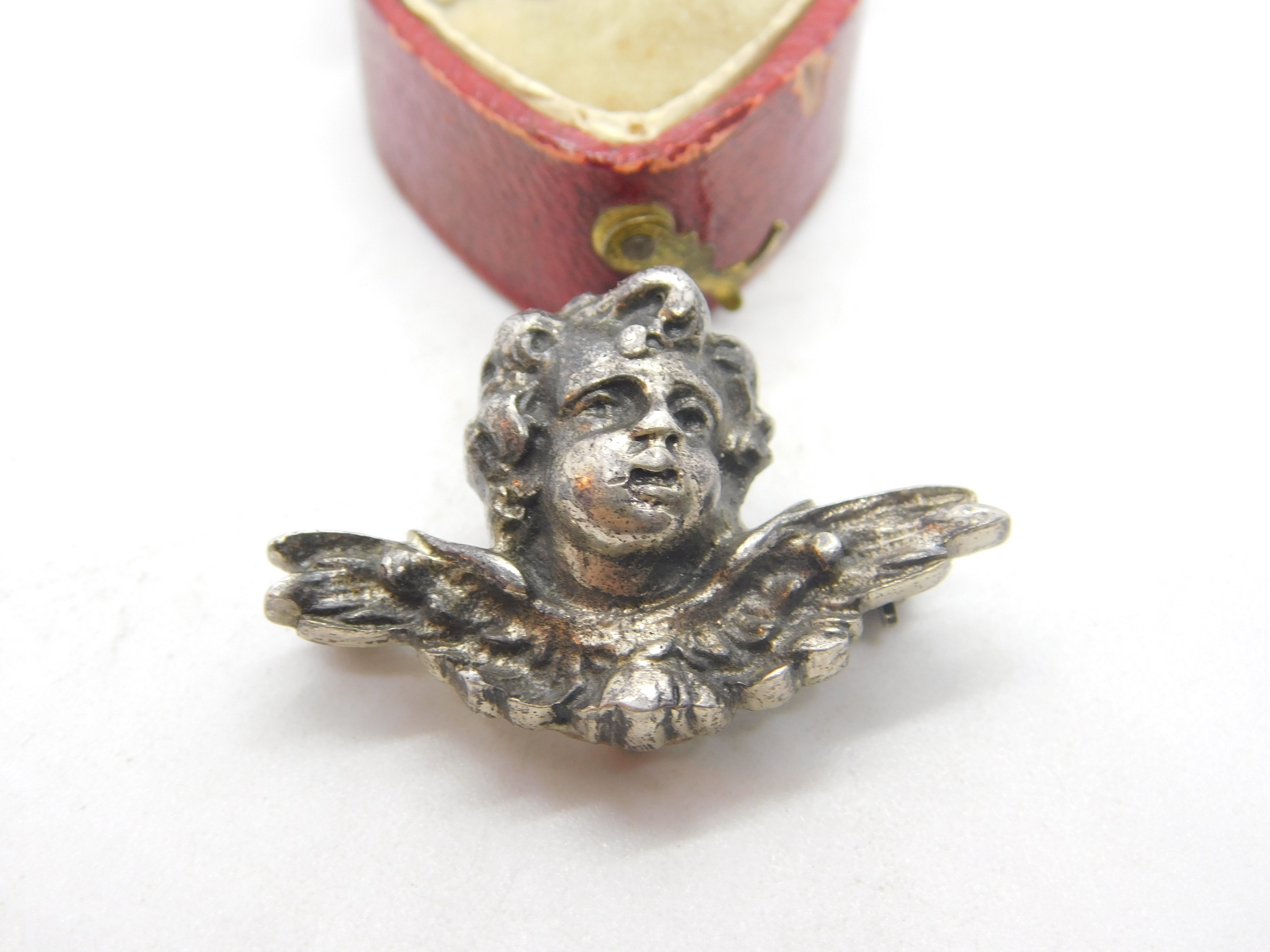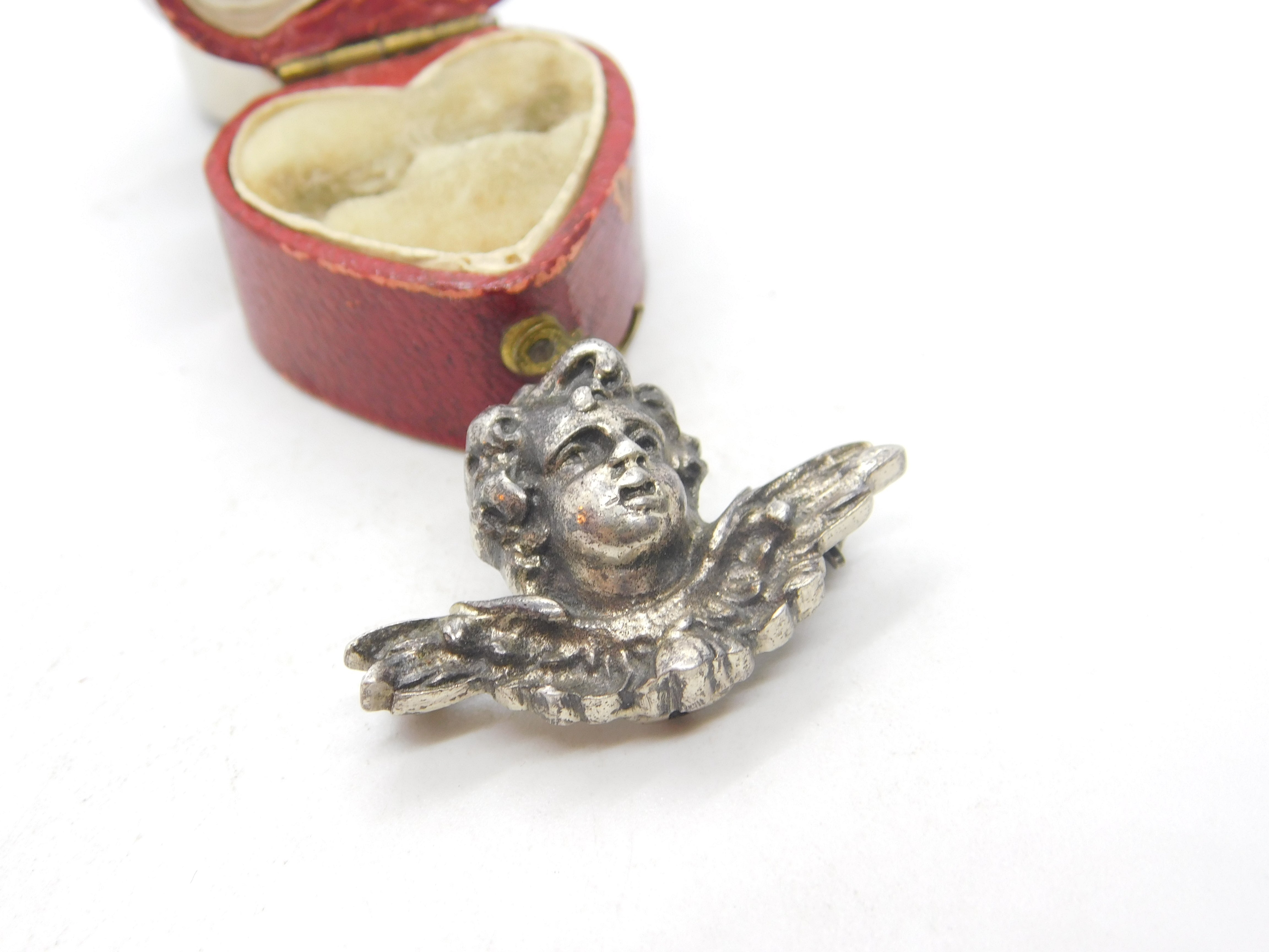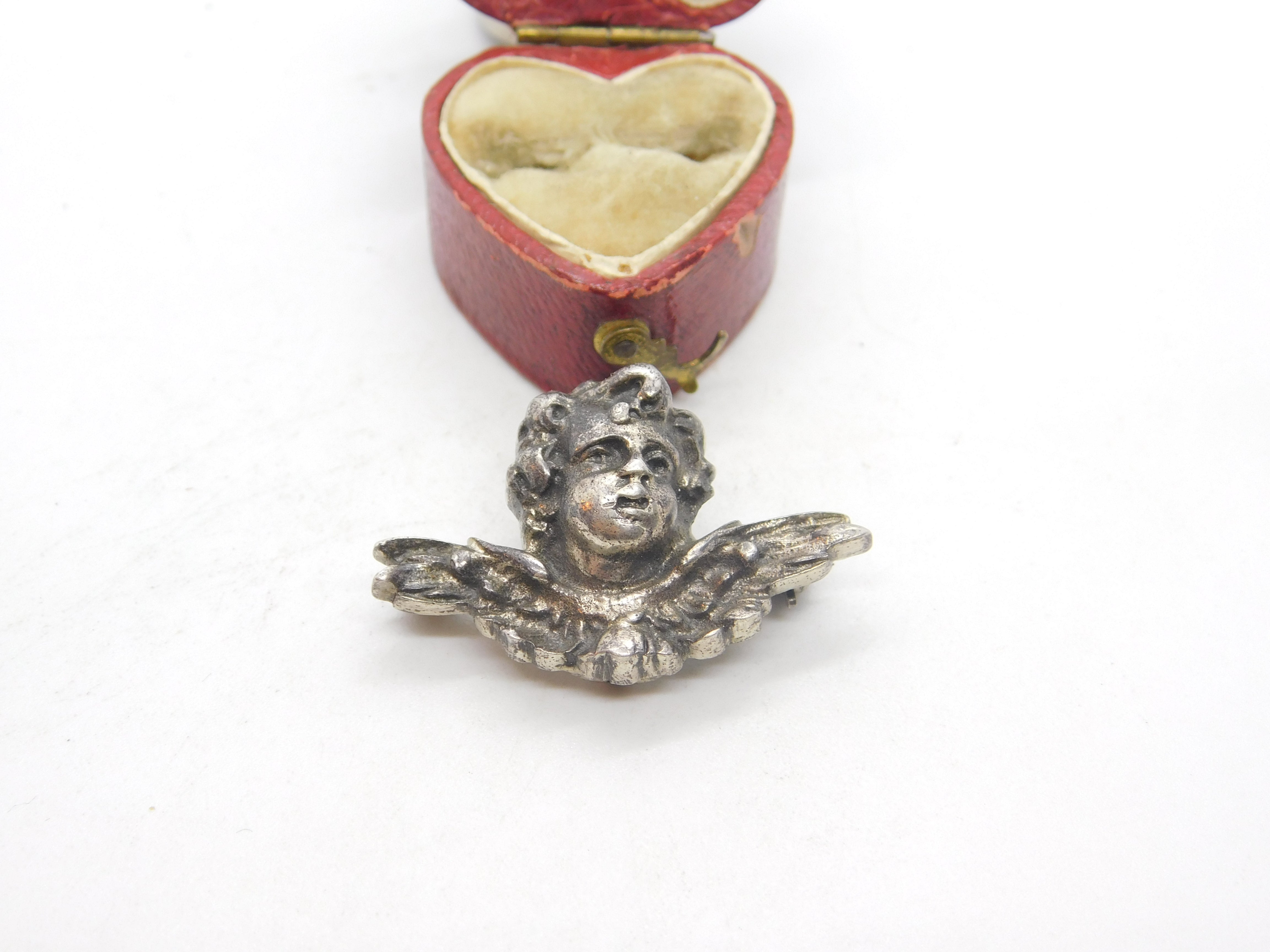 Victorian Sterling Silver Winged Cherub Sweetheart Brooch Antique c1860
