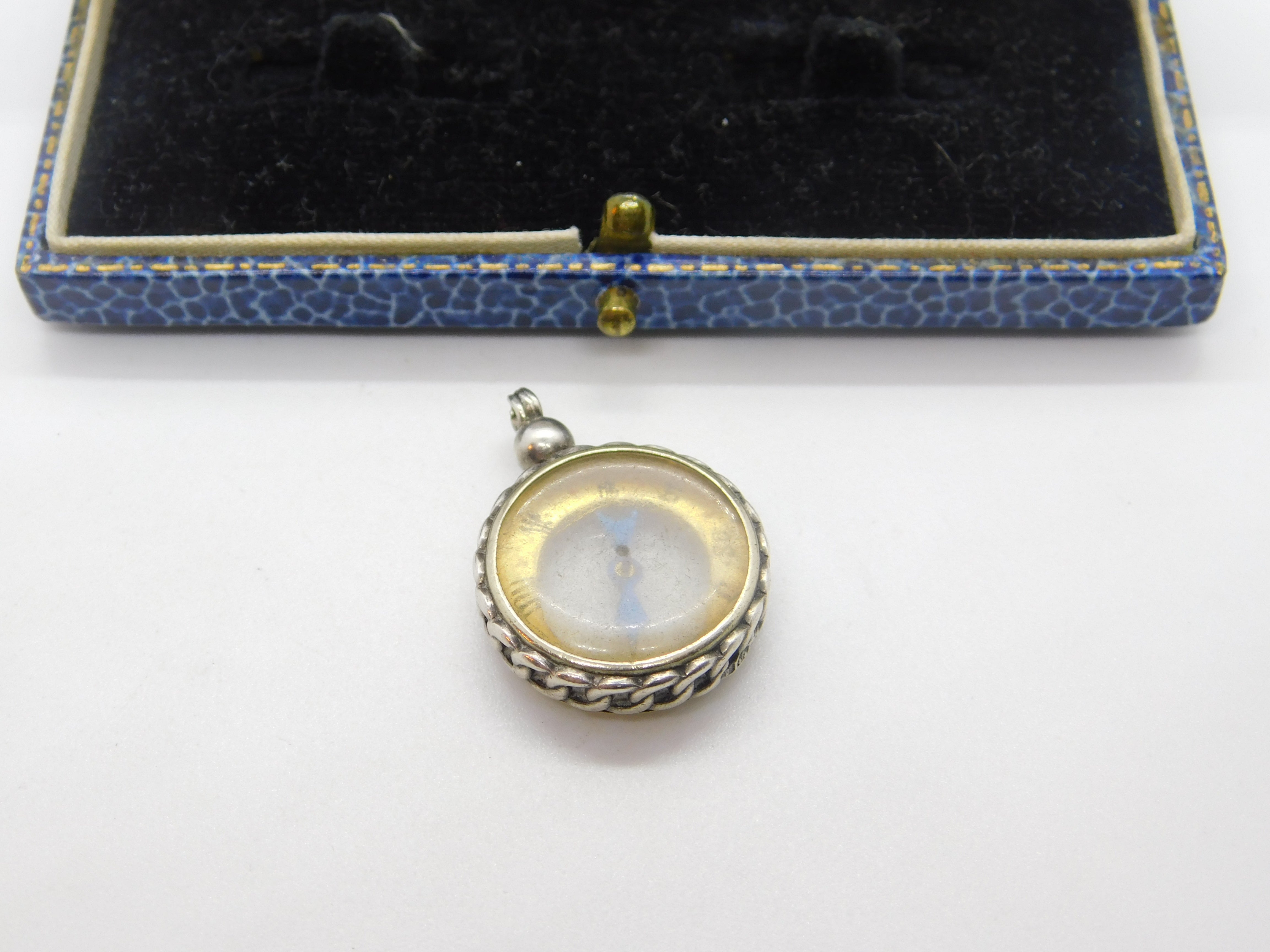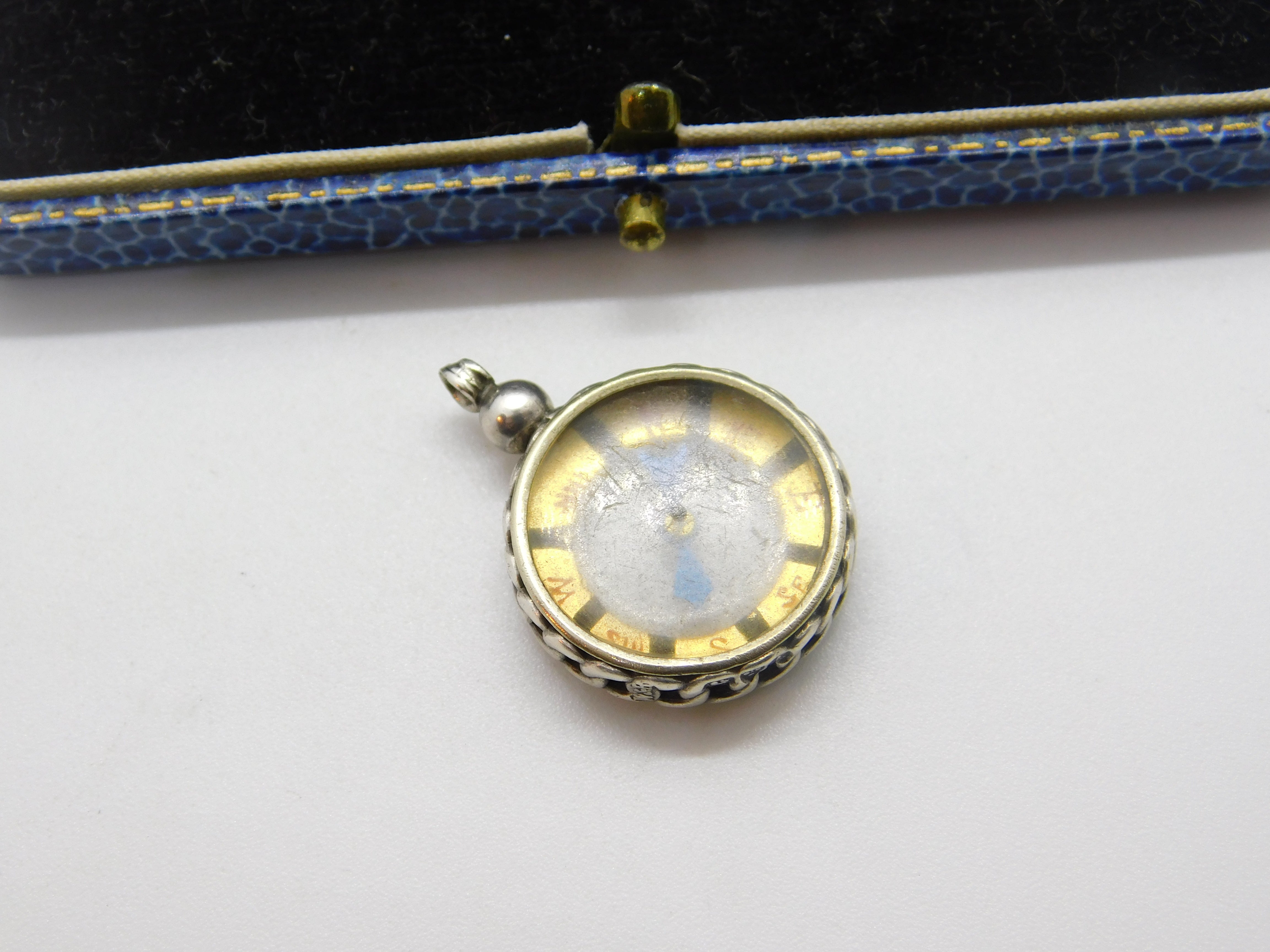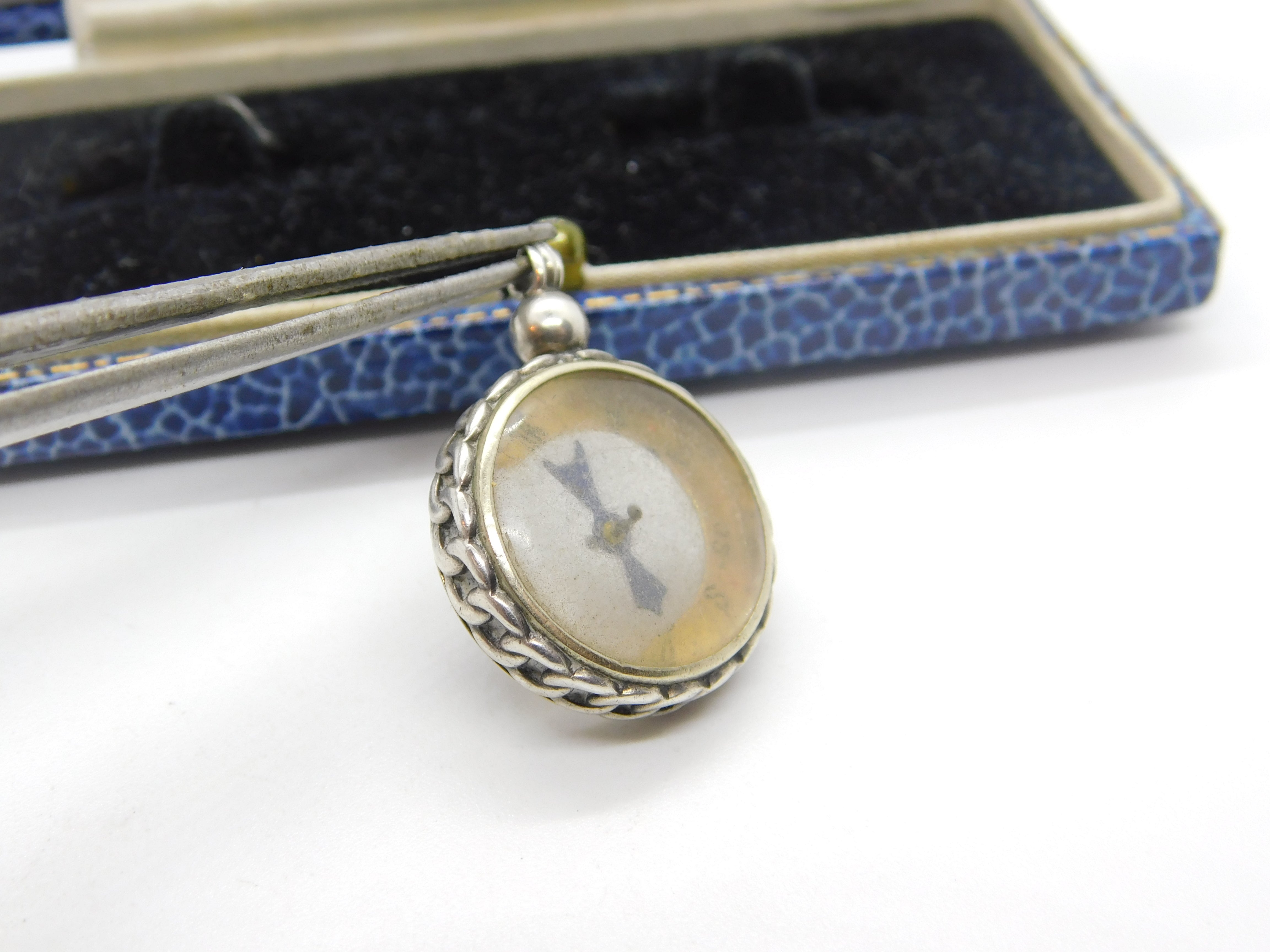 Victorian Sterling Silver Working Compass Fob Pendant Antique 1901 Chester