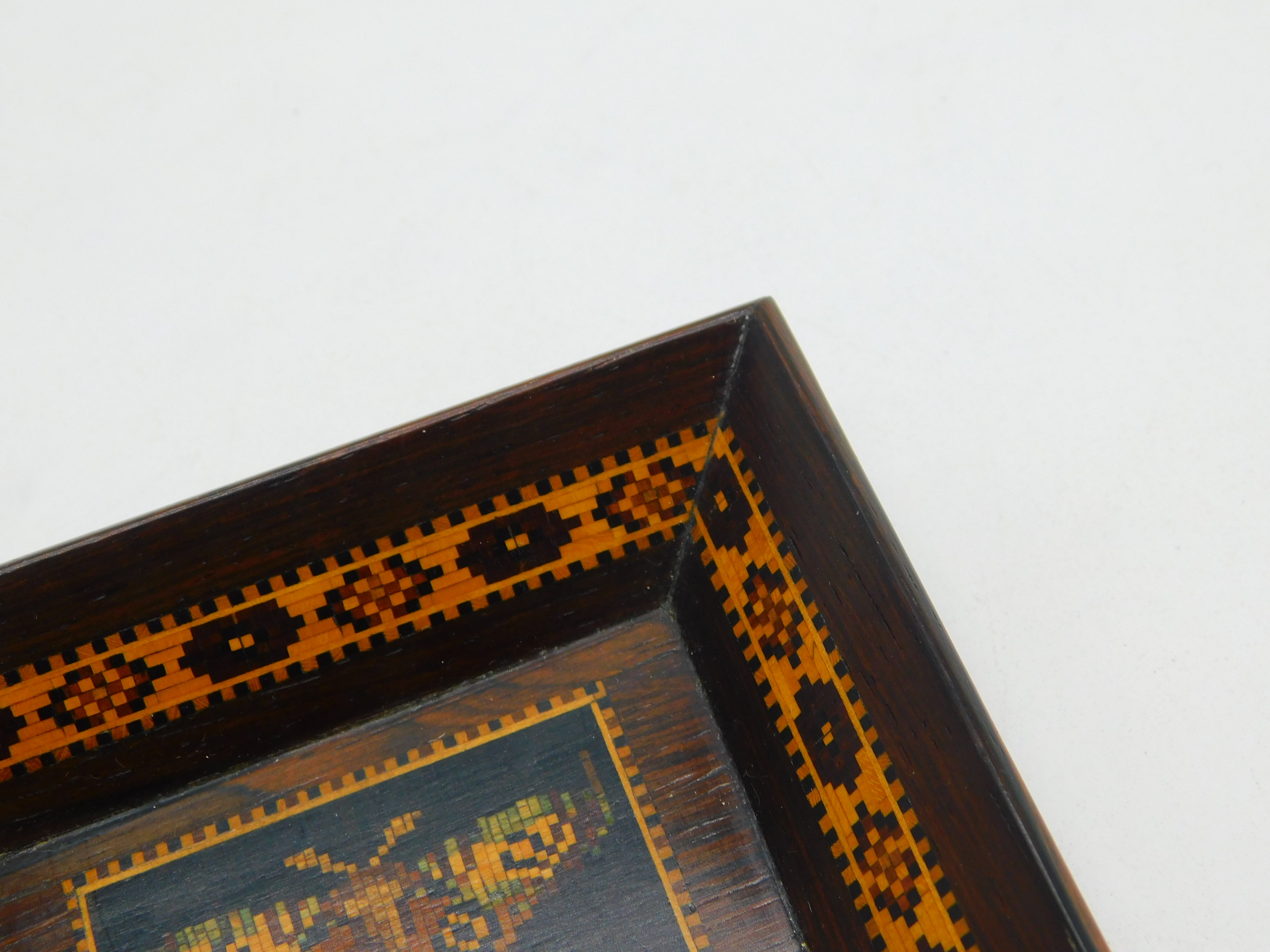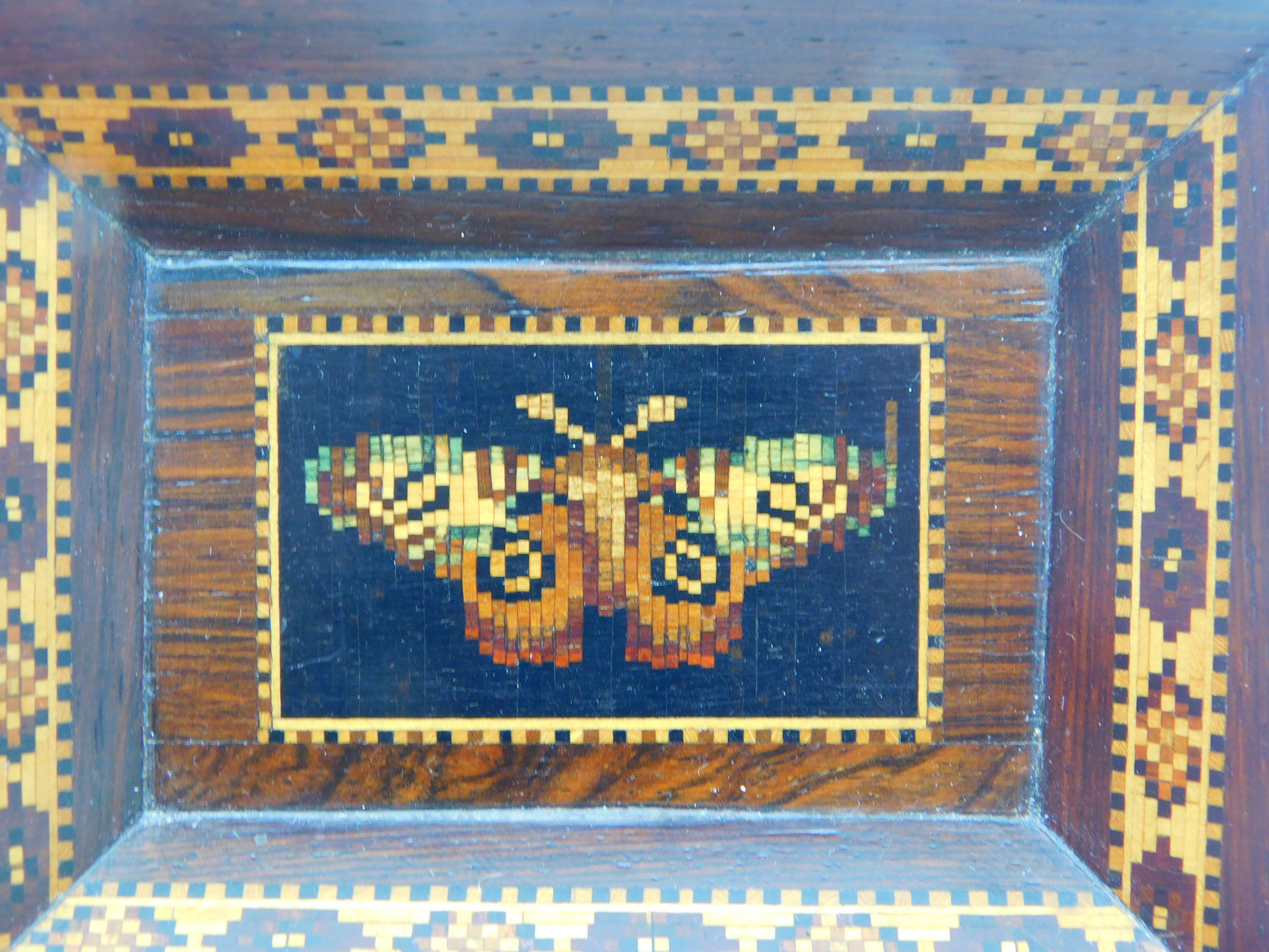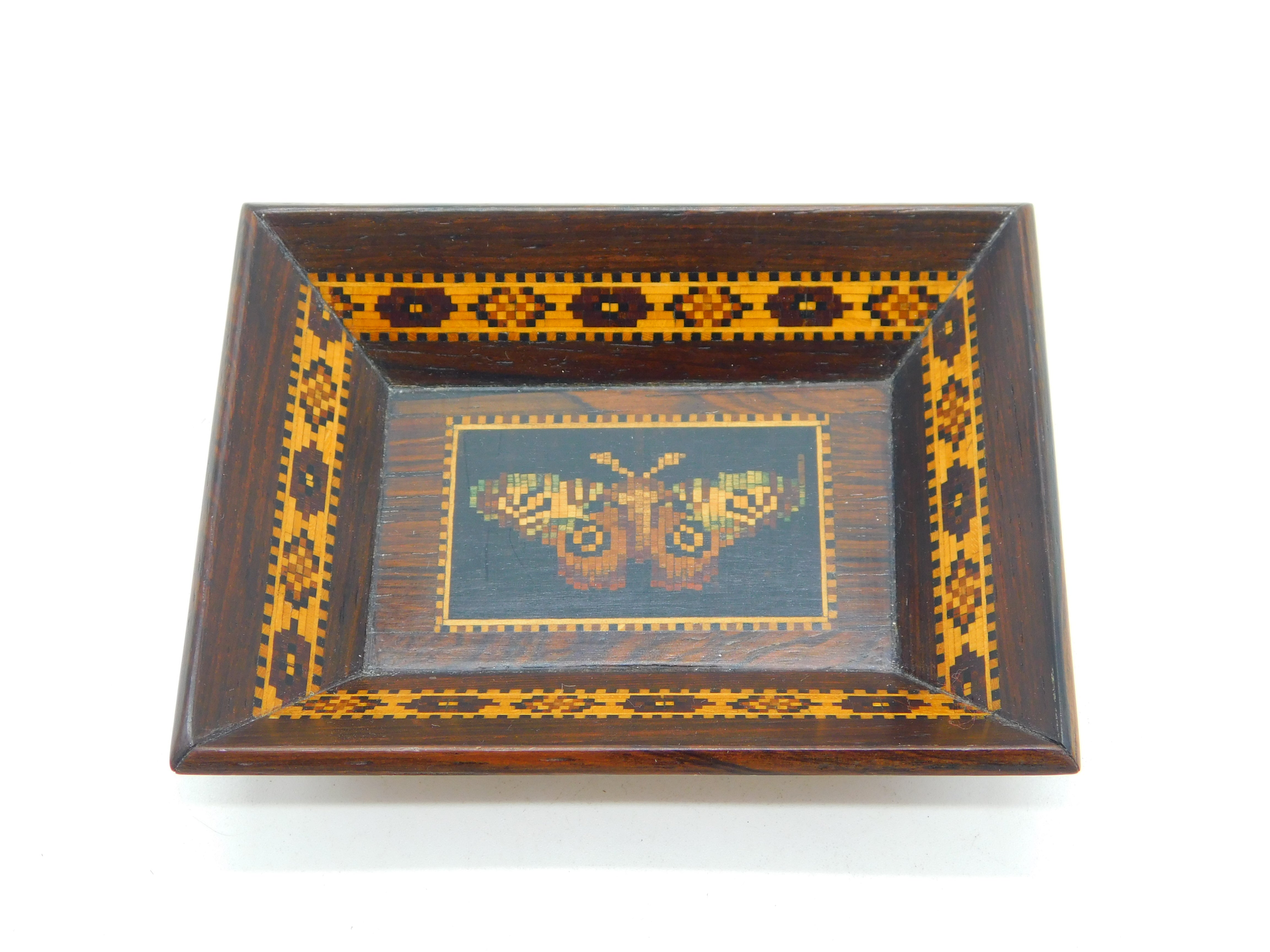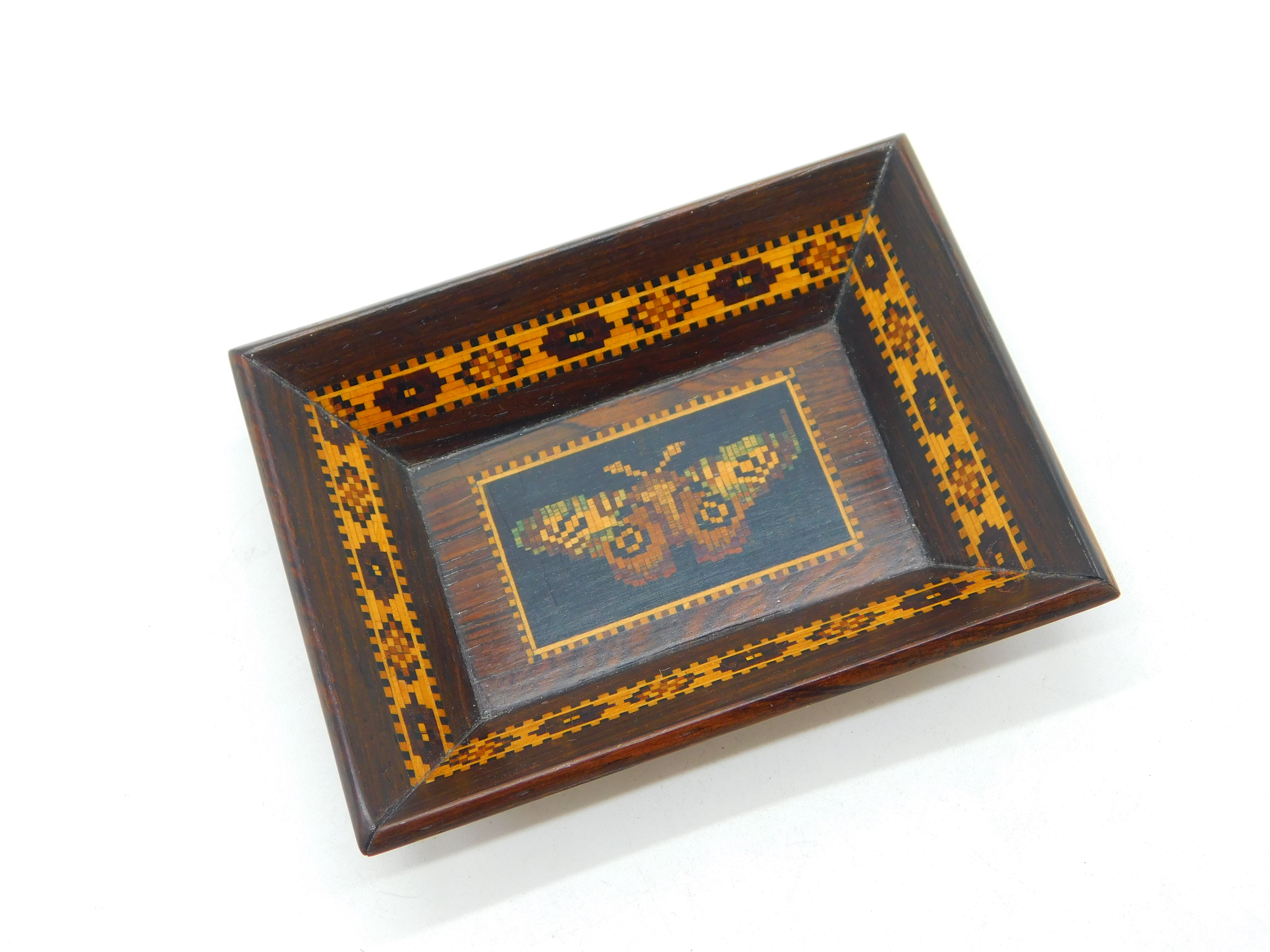 Victorian Tunbridge Ware Treen Sewing Pin Dish Butterfly Pattern Antique c1860