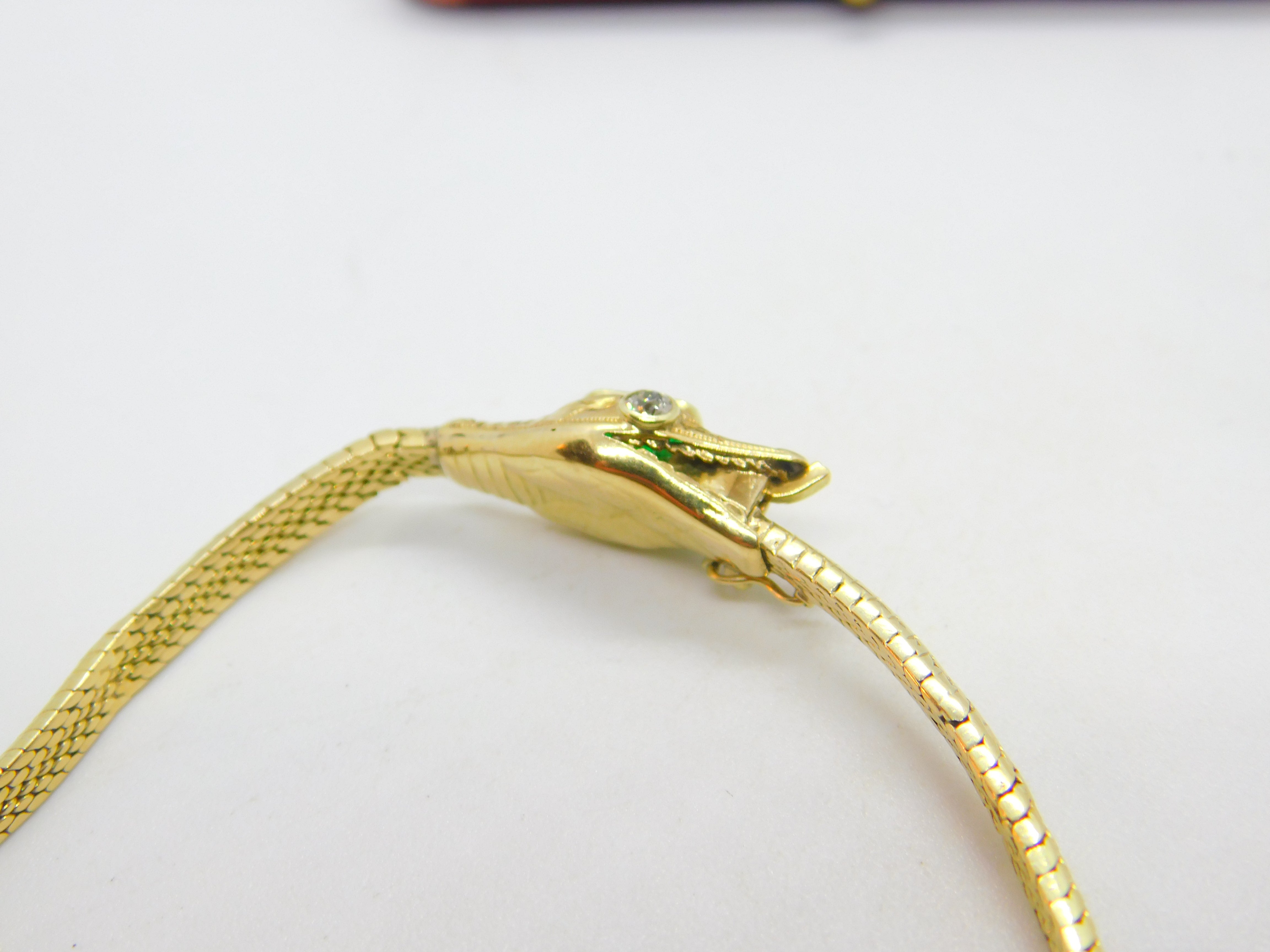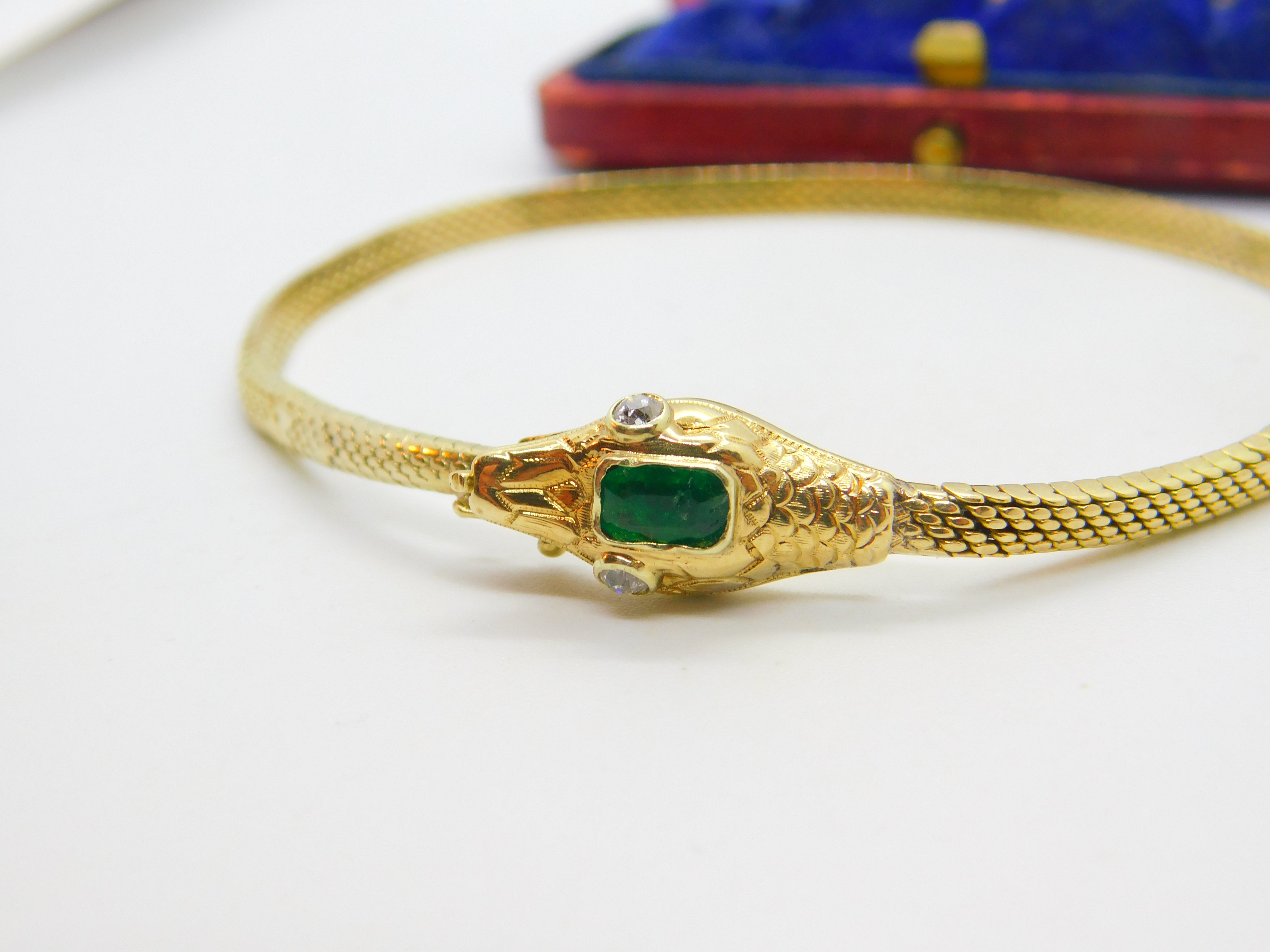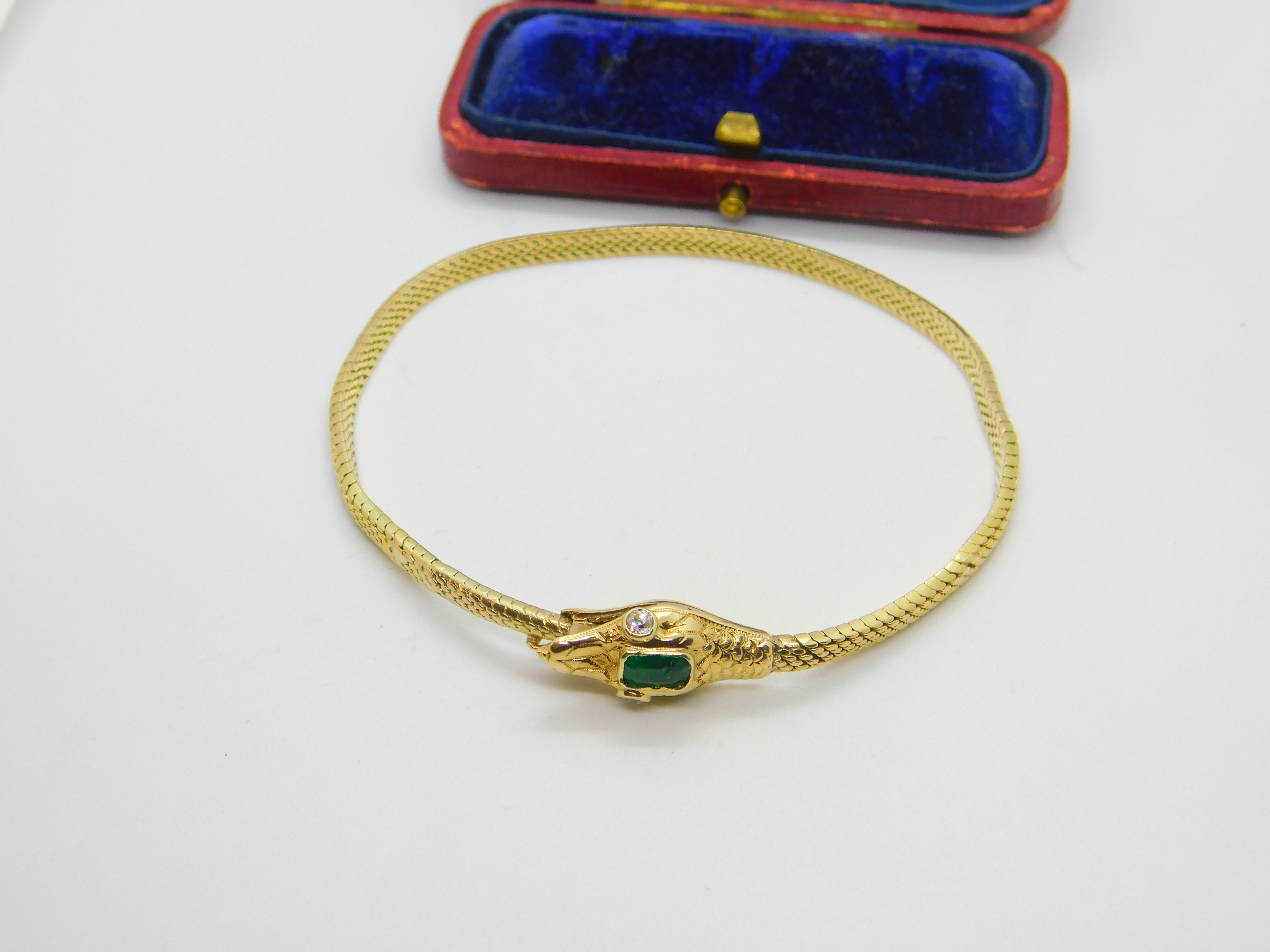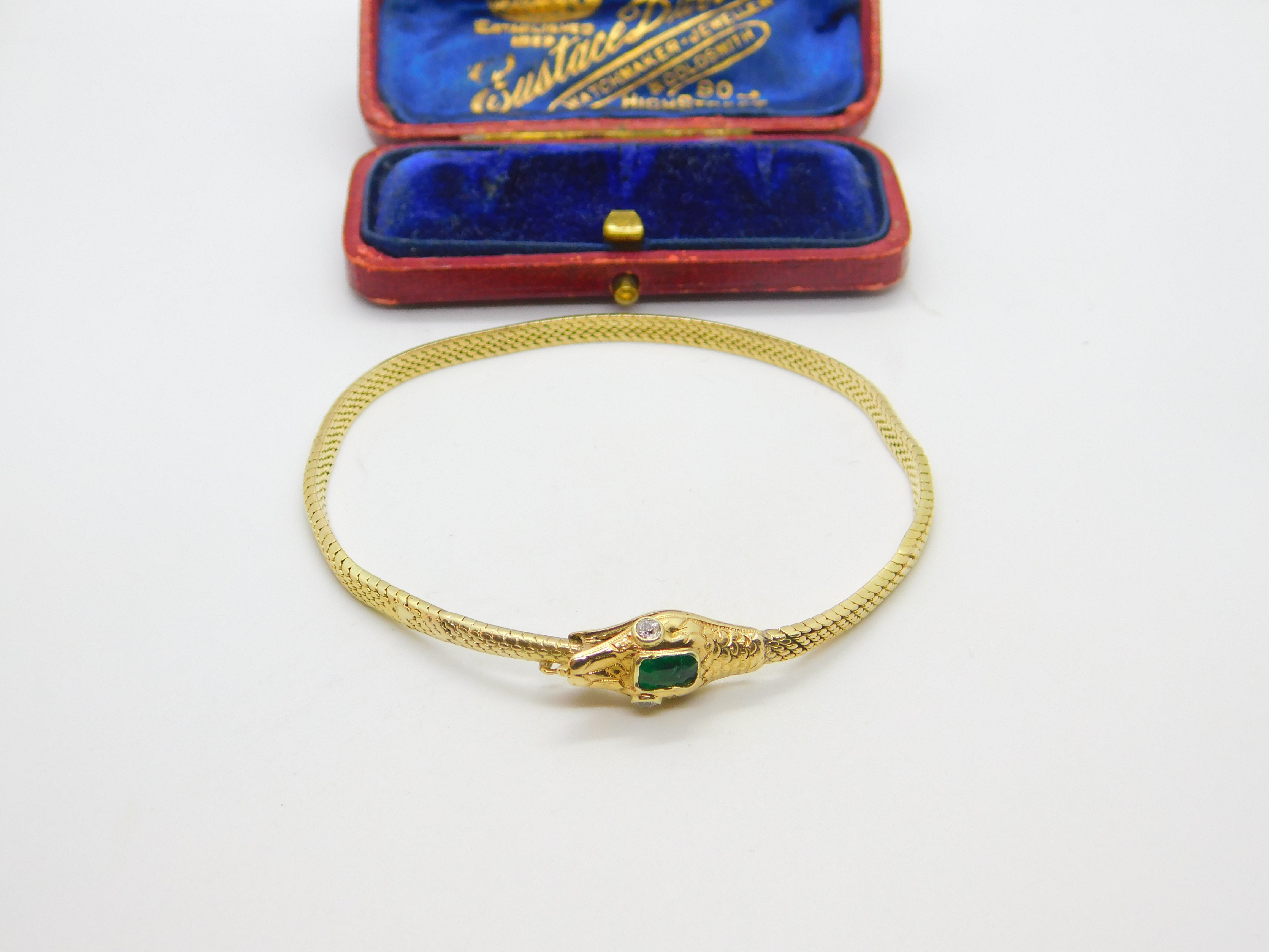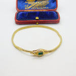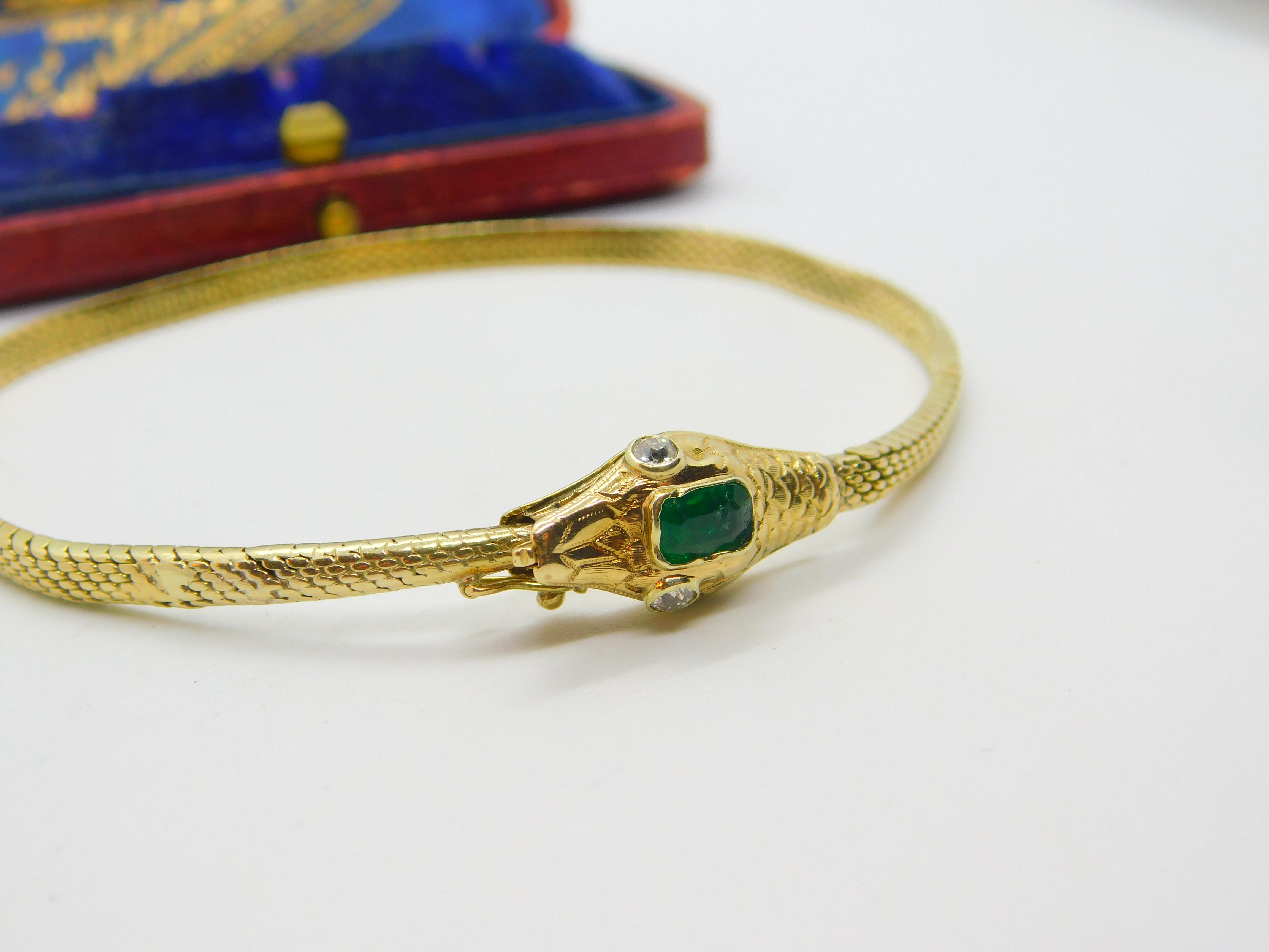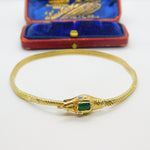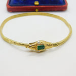 Victorian Yellow Gold Snake Serpent Bracelet Emerald & Diamond Set c1880 Antique