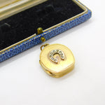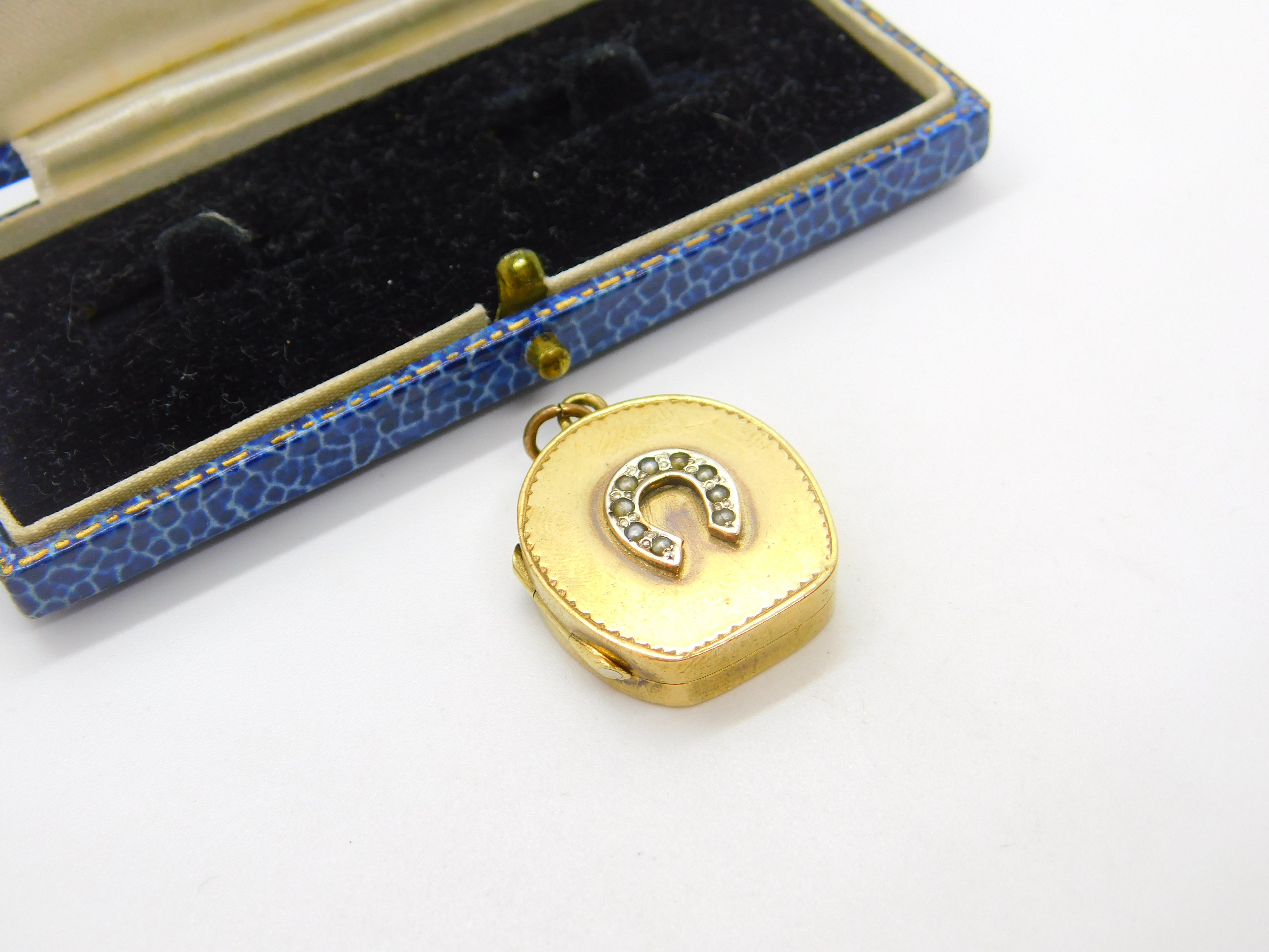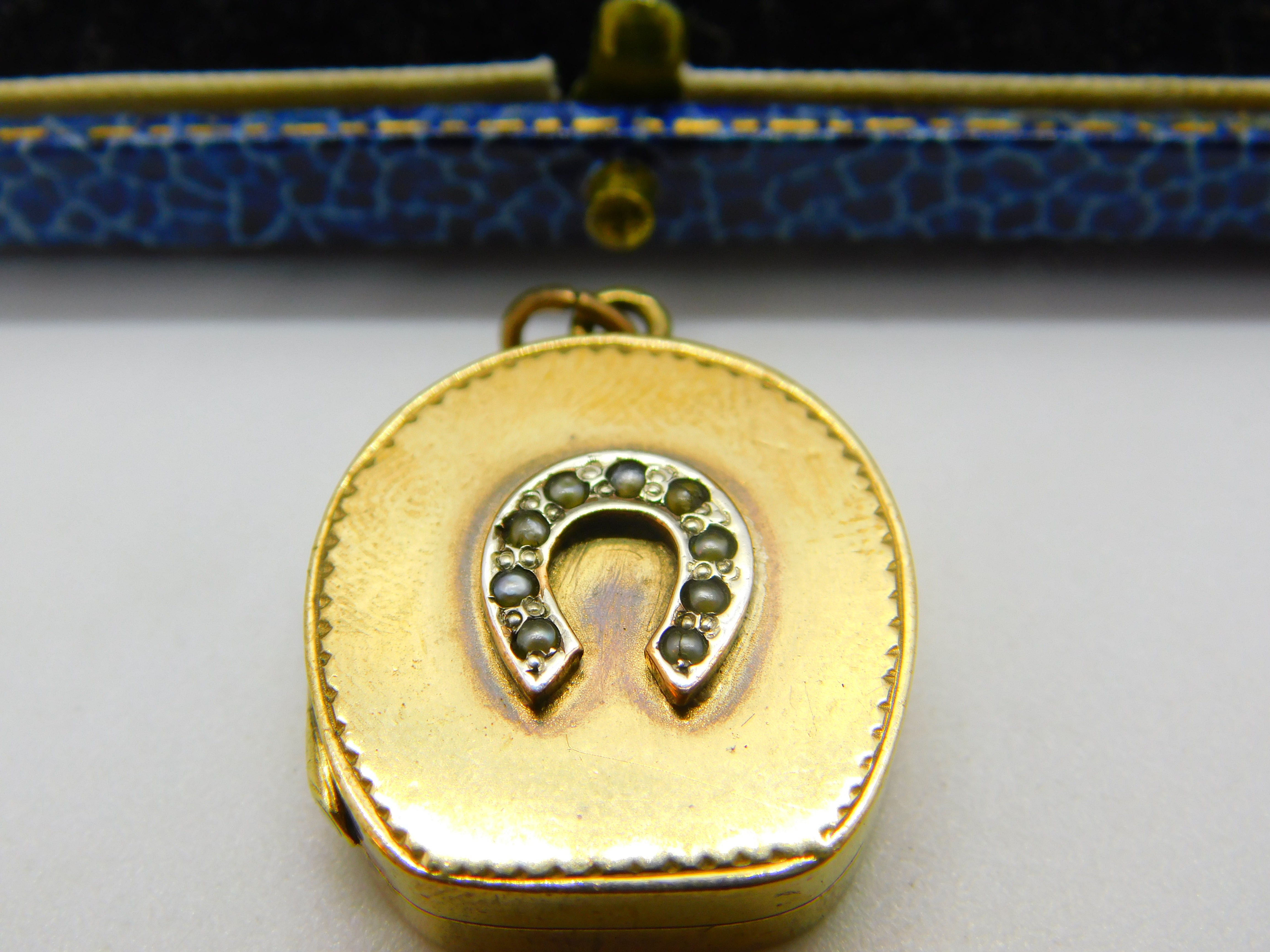 Victorian Yellow Metal & Seed Pearl Good Luck Horseshoe Locket 'A.C Pike' c1860