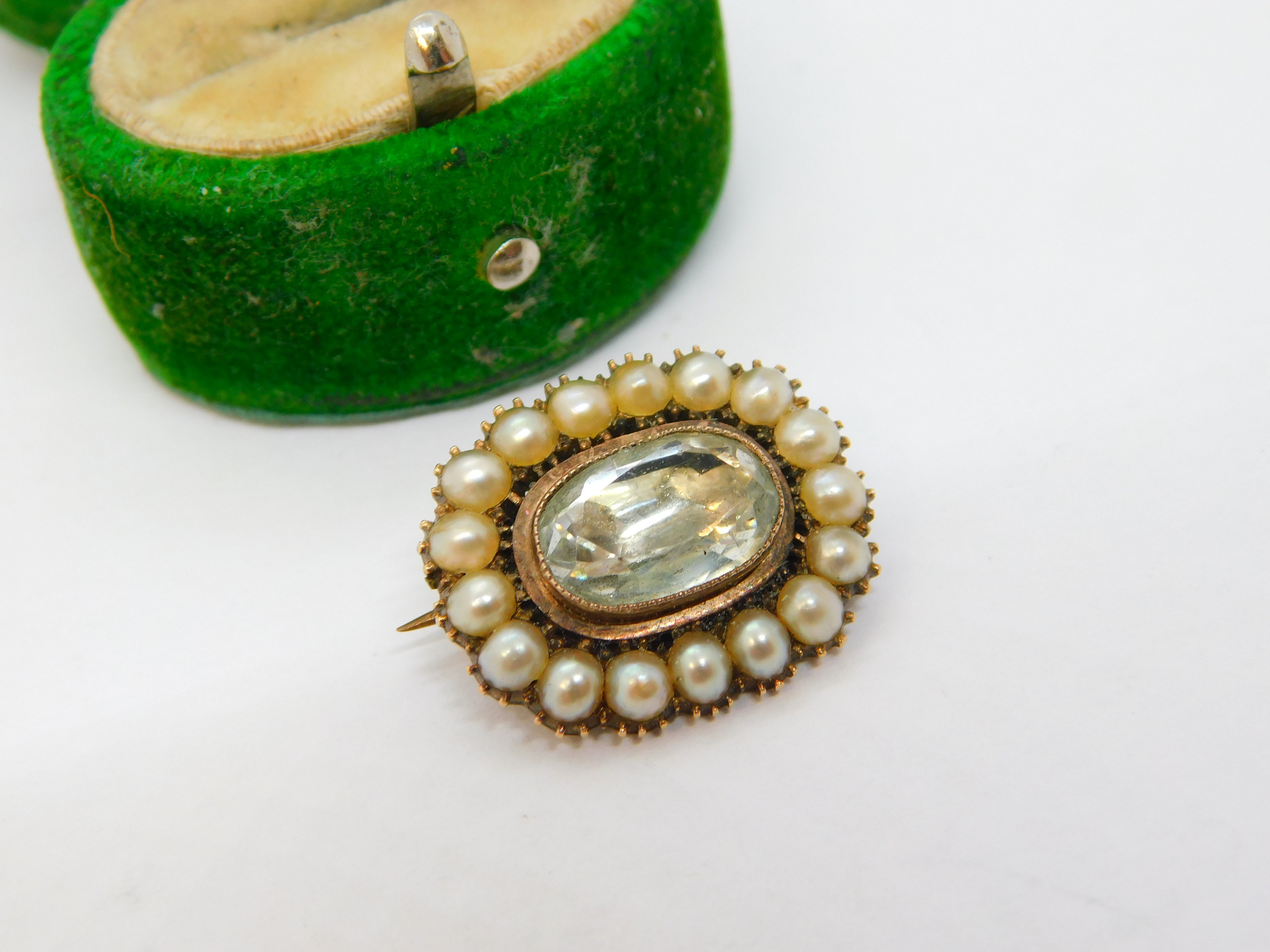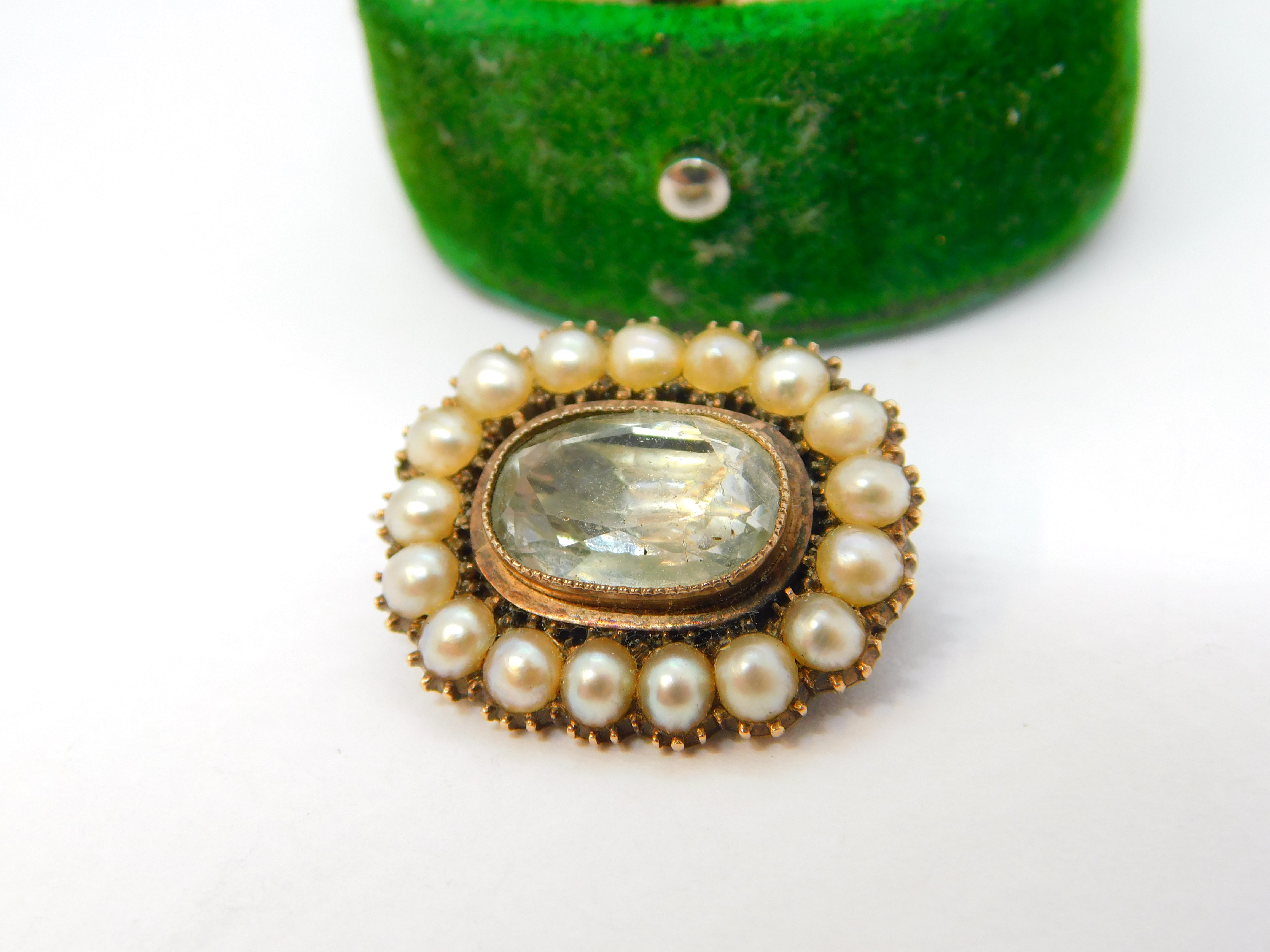 William IV 18ct Yellow Gold, Rock Crystal & Pearl Mourning Brooch Antique 1835