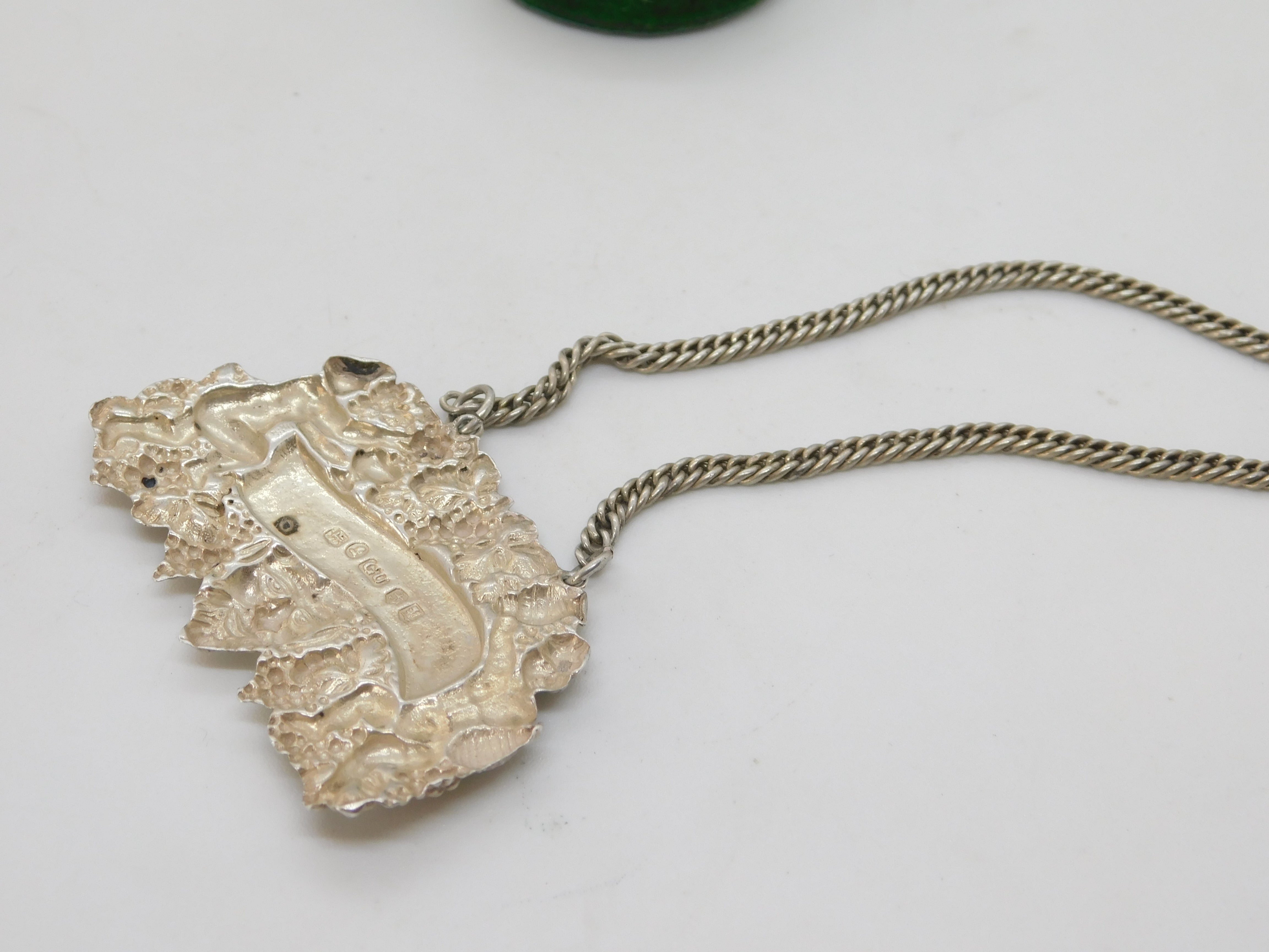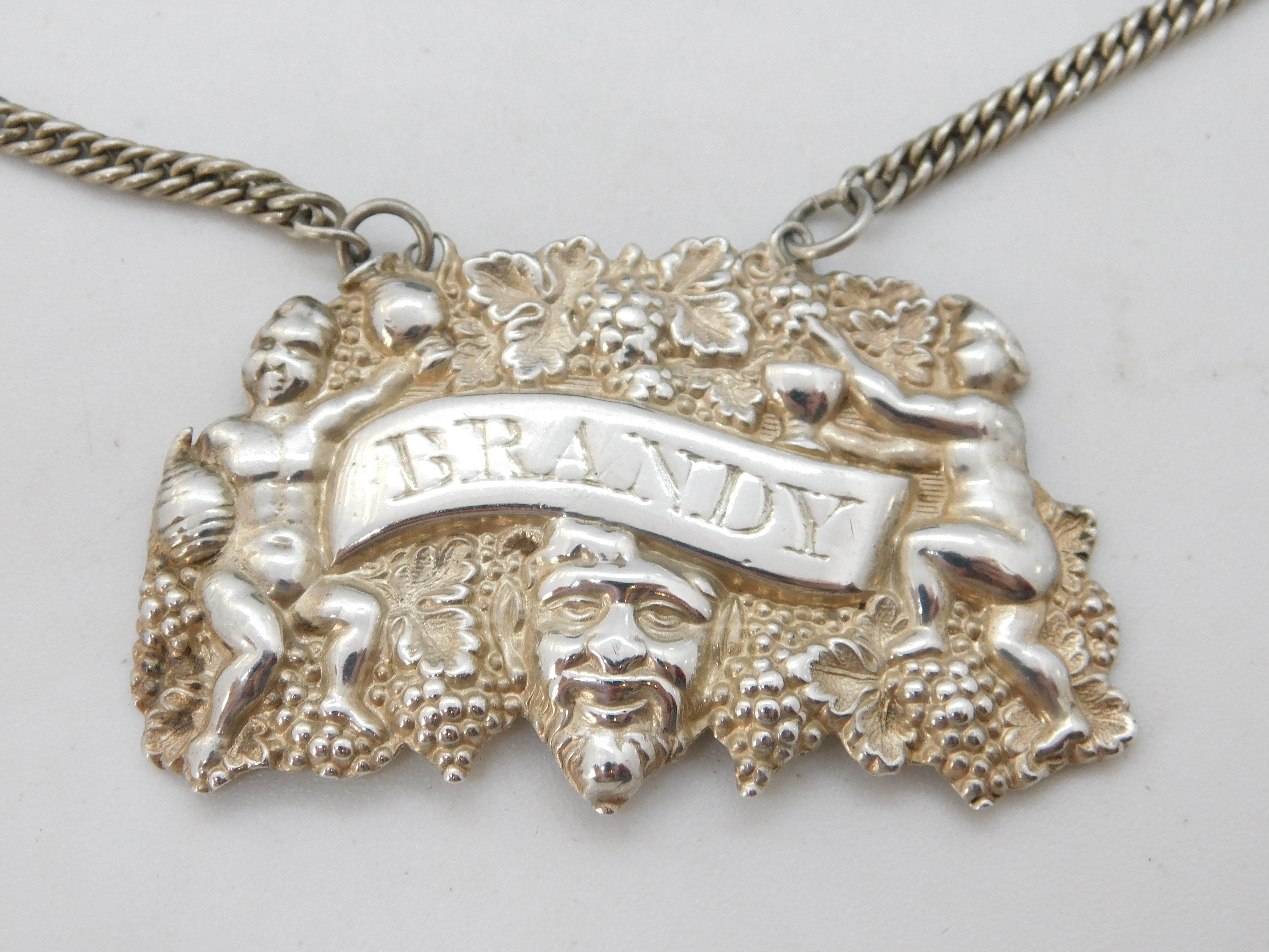 Details: A fantastic and wonderfully designed antique georgian sterling silver bacchus pattern Brandy decanter label hallmarked Birmingham 1834 by George Unite. This is a wonderful item that would make a perfect gift or addition to any collection. The BOX pictured is for PRESENTATION ONLY and is NOT included in the listings but used to frame the pictures unless specifically stated otherwise.