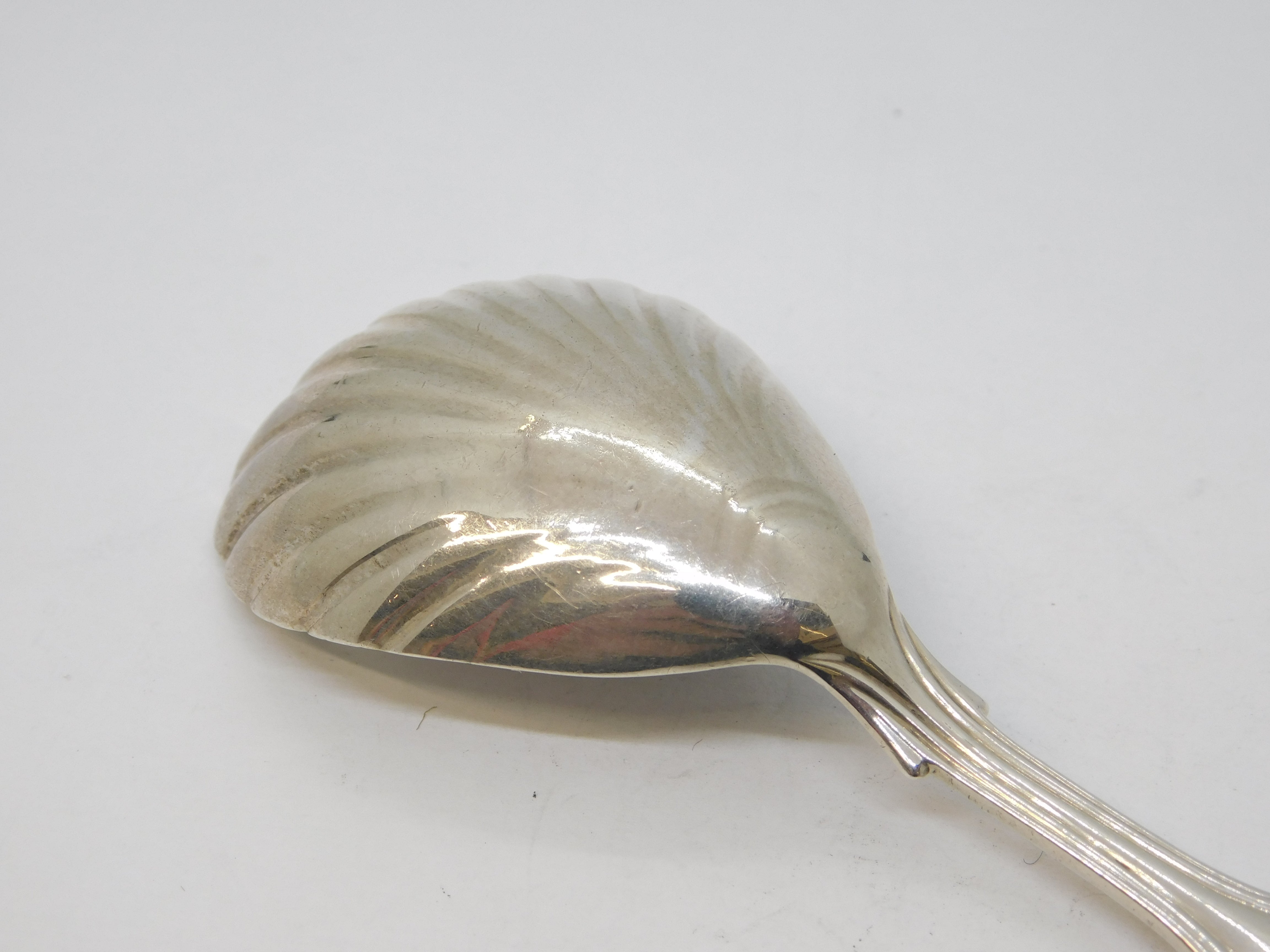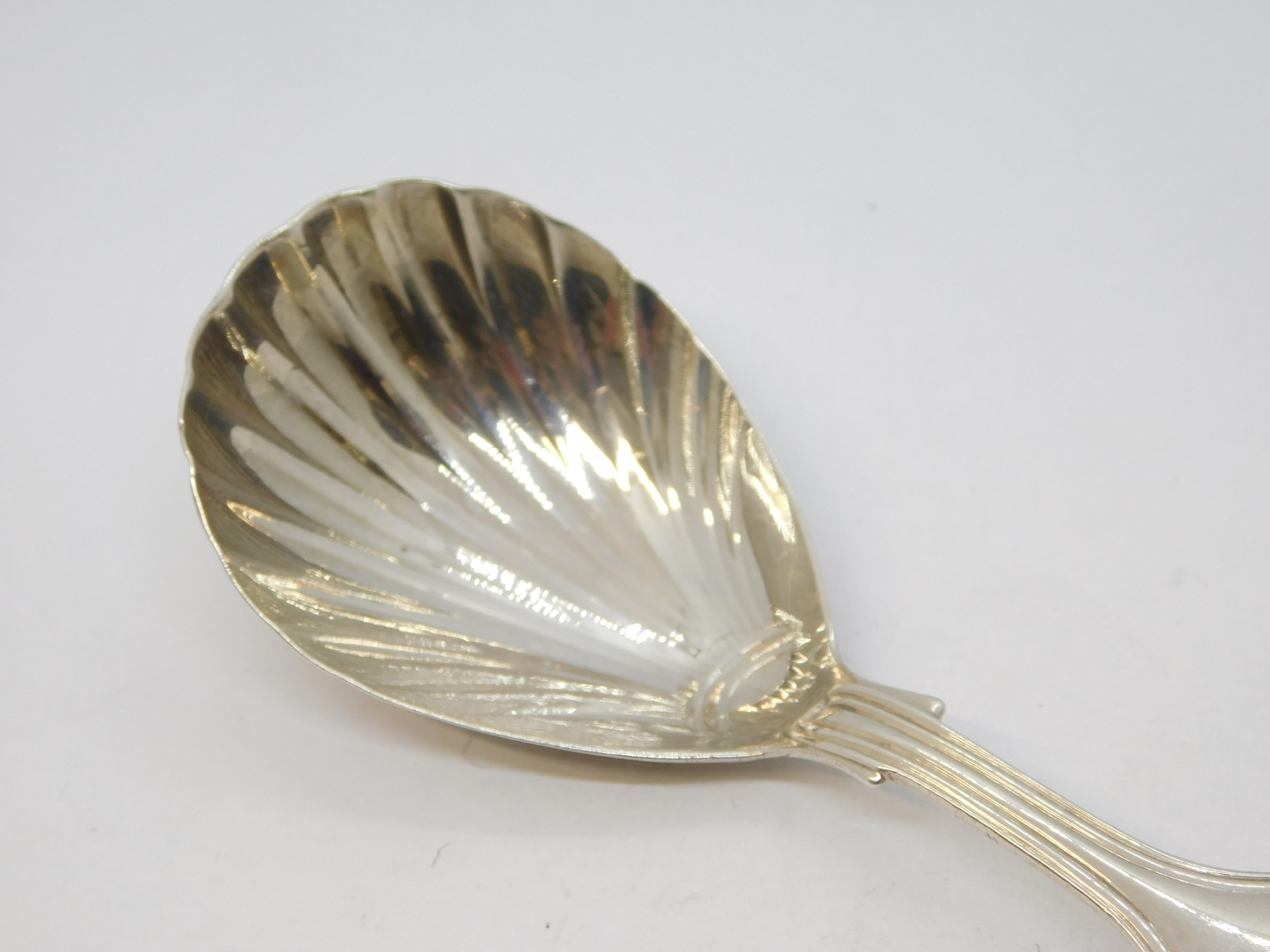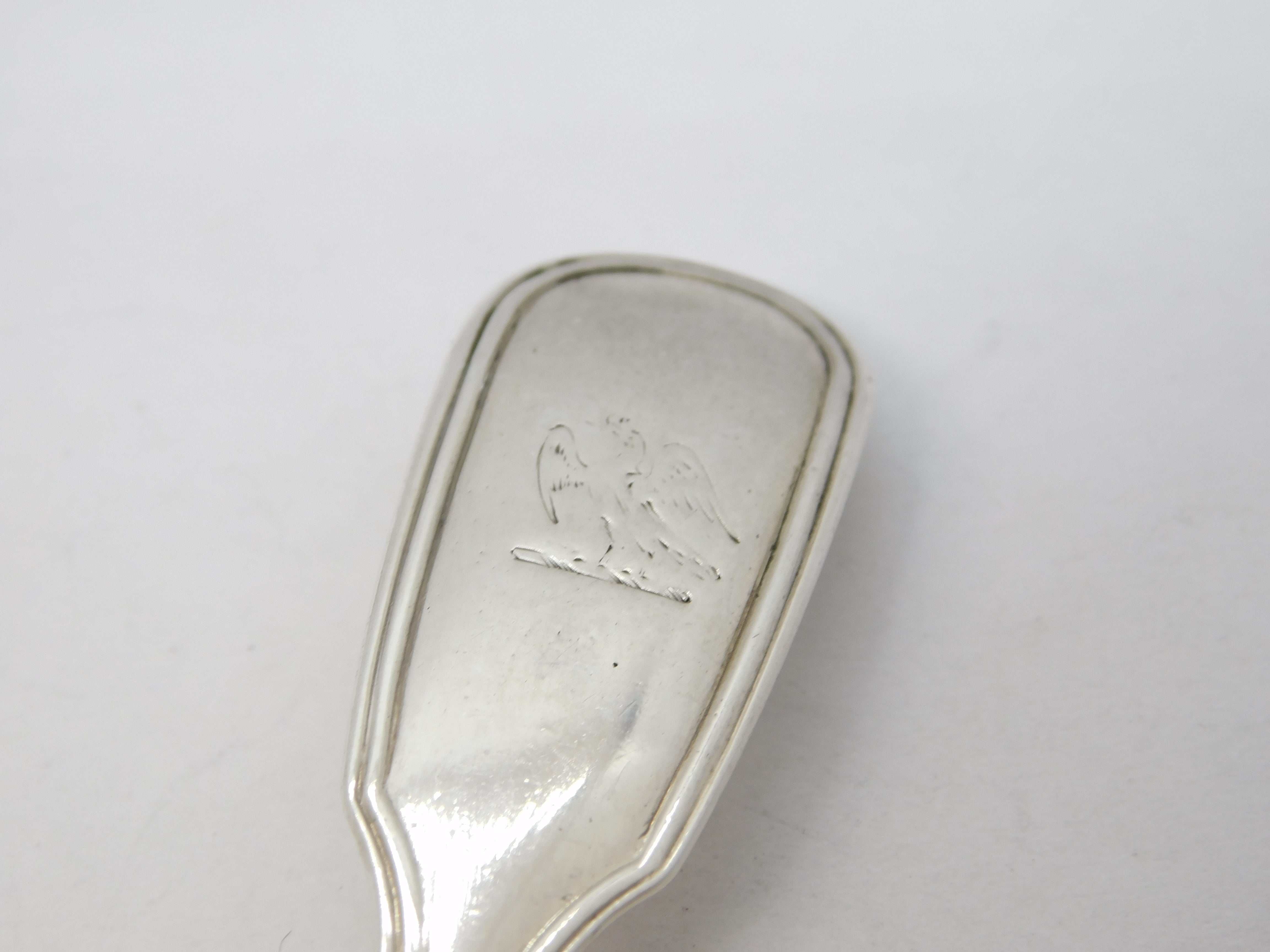 Details: A fantastic and wonderfully designed antique georgian sterling silver fiddle thread tea caddy spoon with shell bowl and eagle crest to the terminal hallmarked London 1835 by William Eley. This is a wonderful item that would make a perfect gift or addition to any collection.