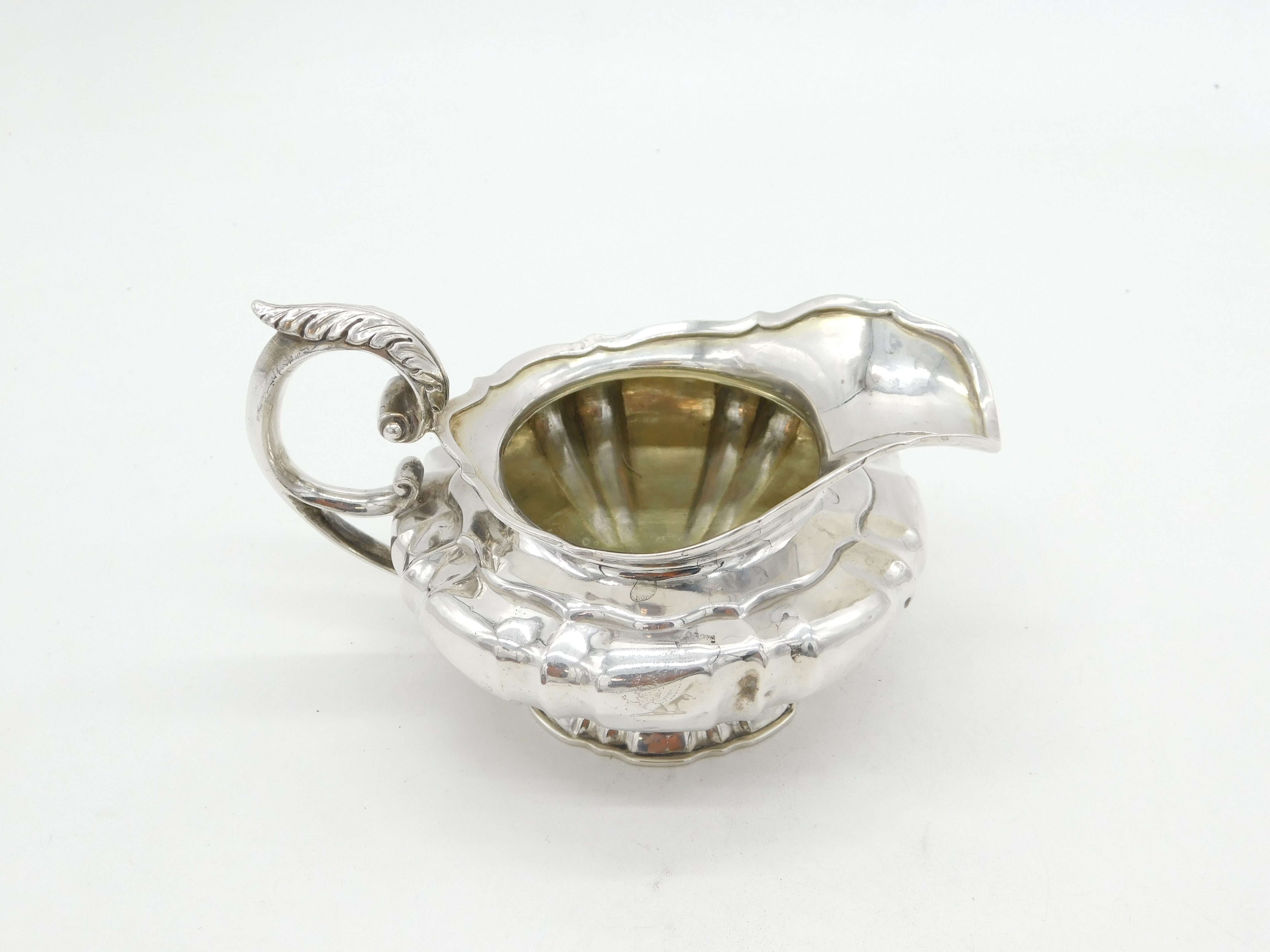 Details: A fantastic and wonderfully designed antique georgian sterling silver fluted cream jug with charming acanthus pattern handle hallmarked London 1831 by Michael Starkey, crest to the edge. This is a wonderful item that would make a perfect gift or addition to any collection.
