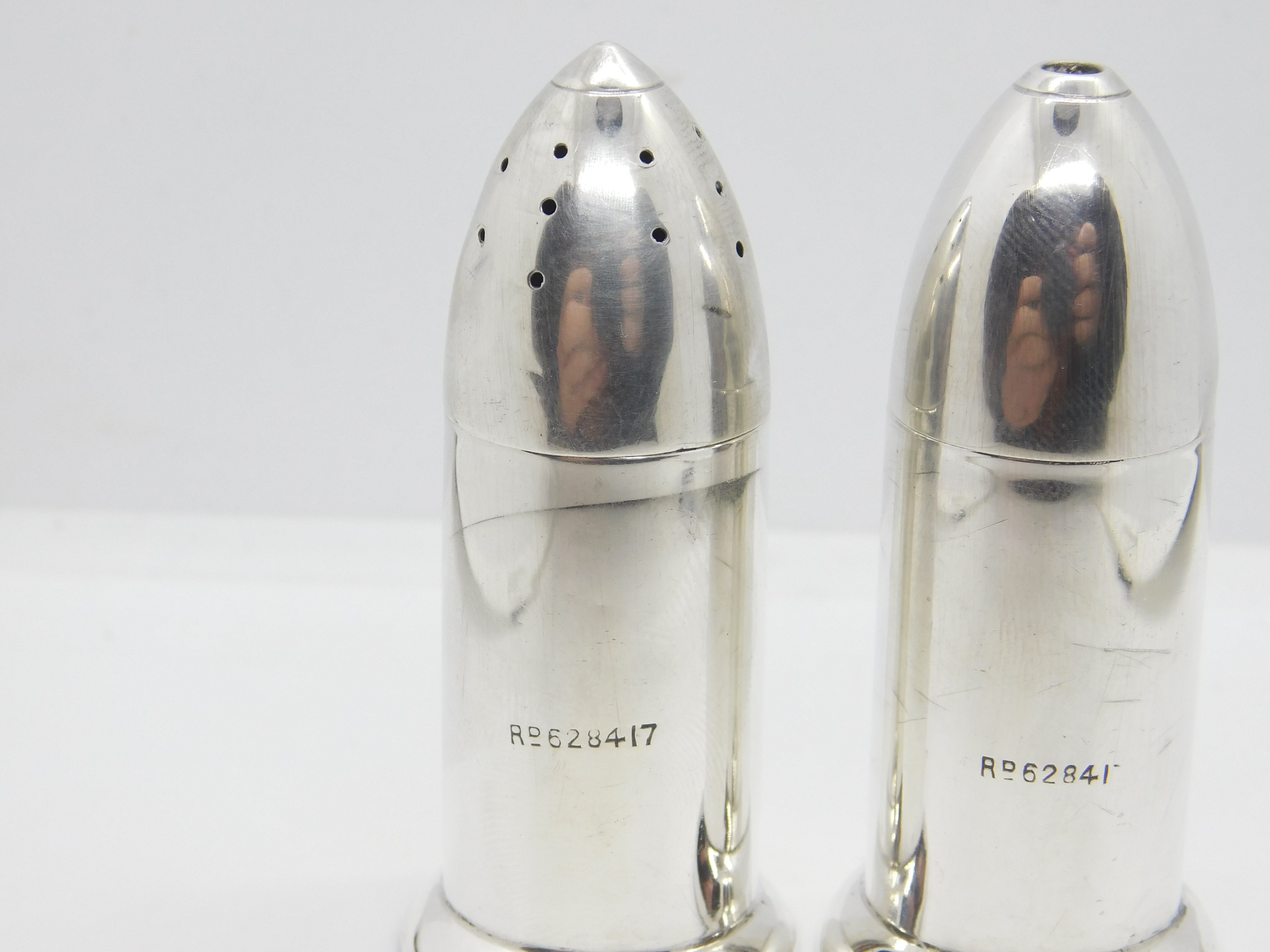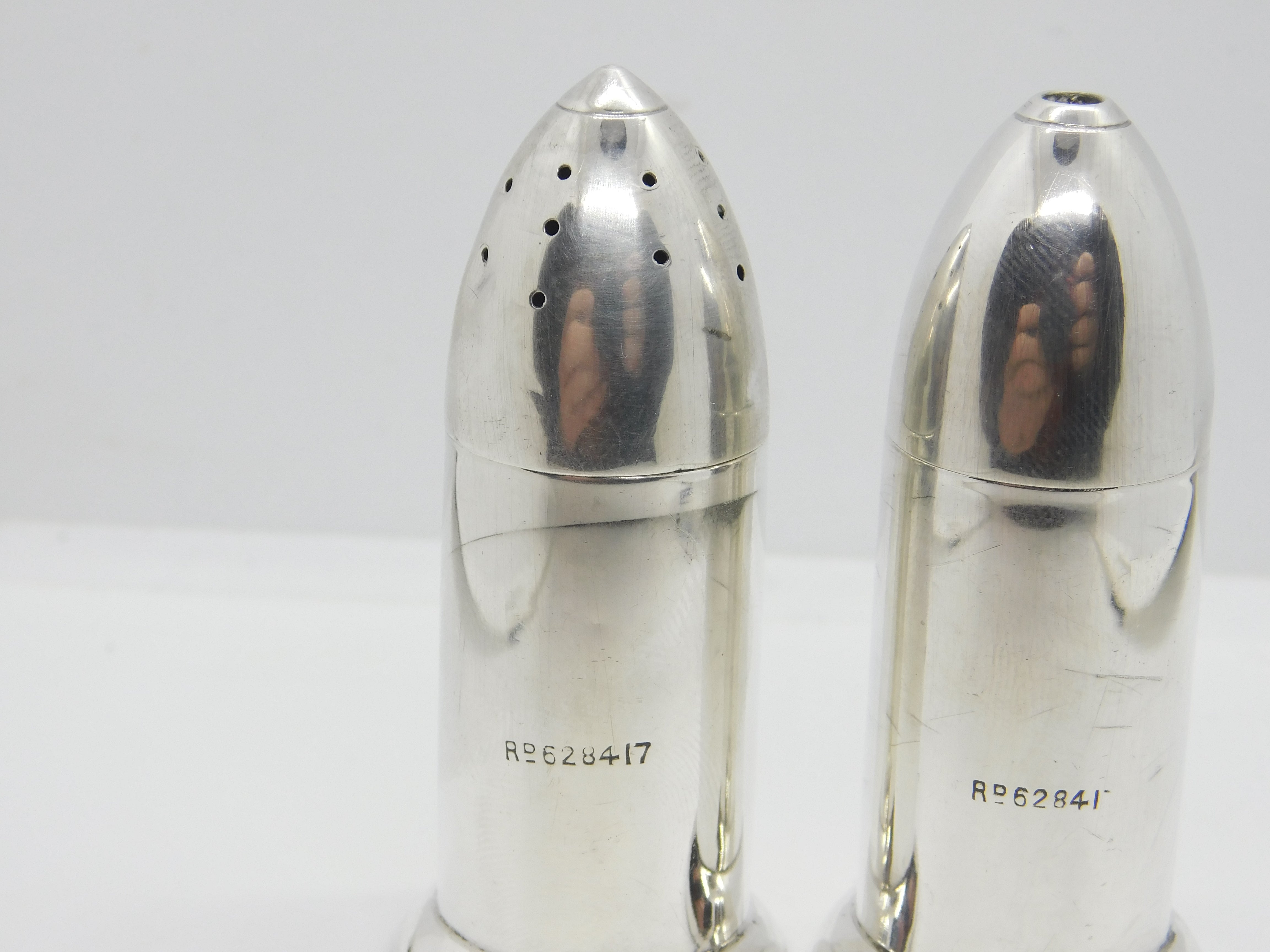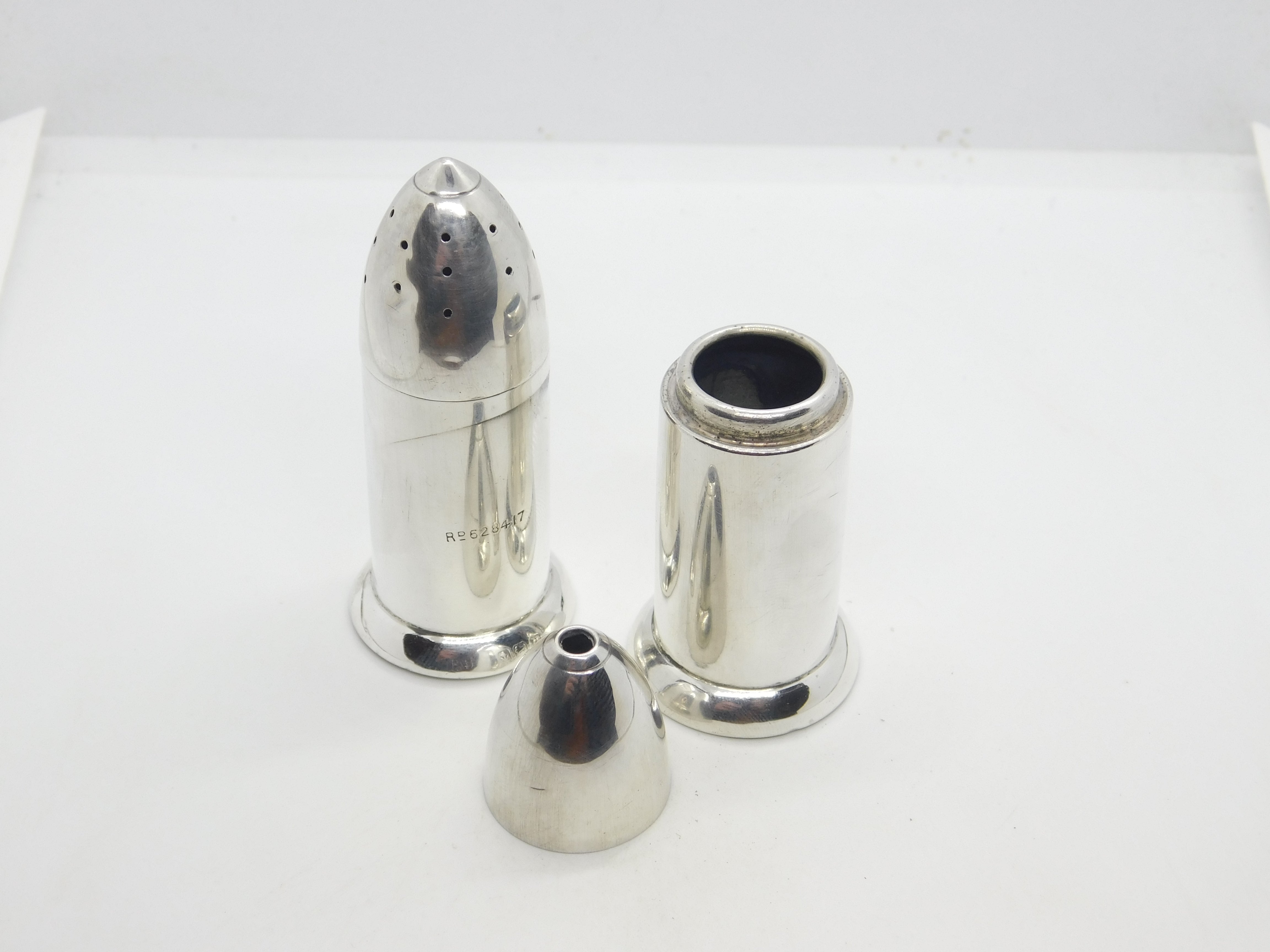 WW1-era Pair of Novelty Sterling Silver Shell Form Salt & Pepper Shakers Antique 1919