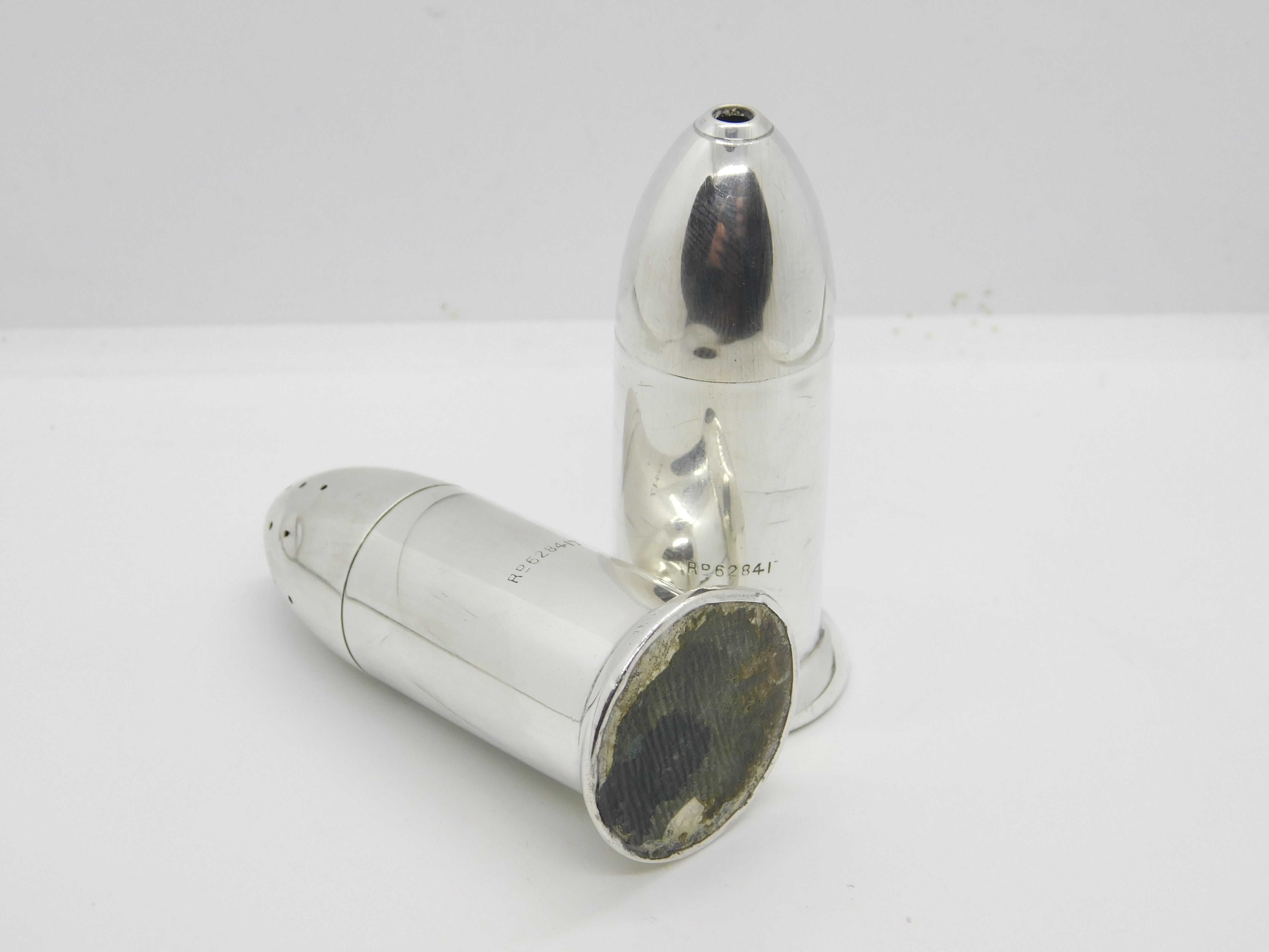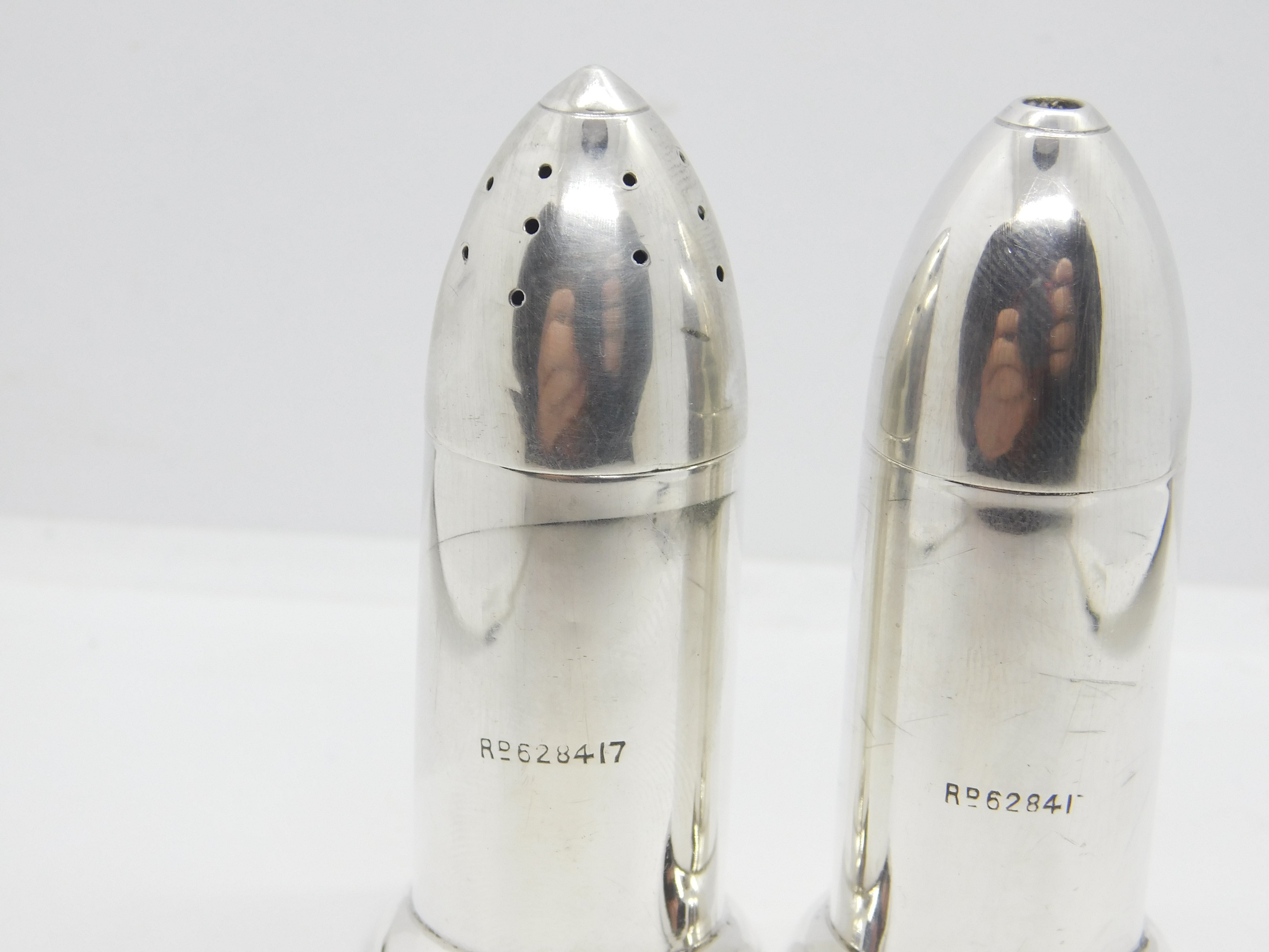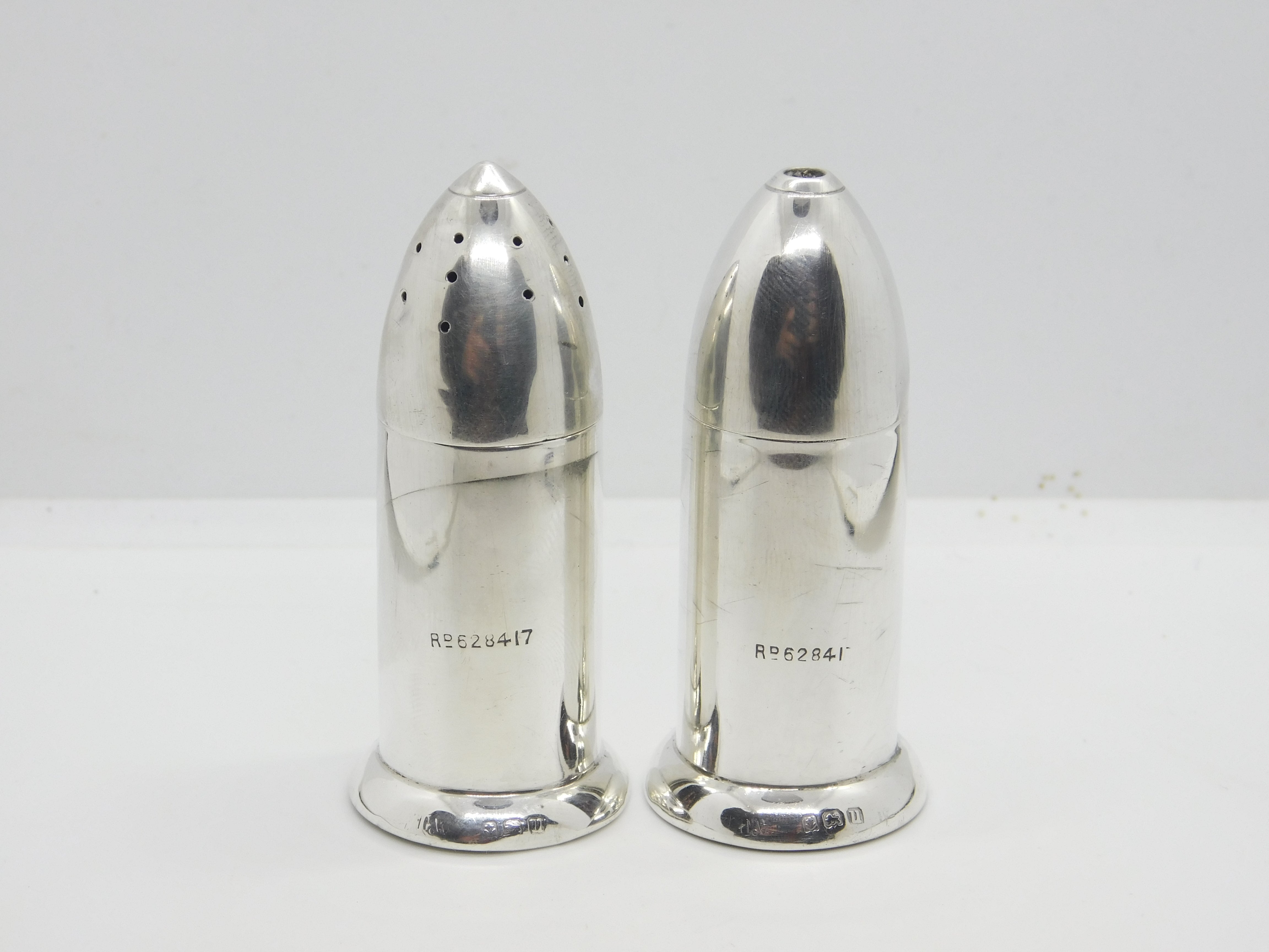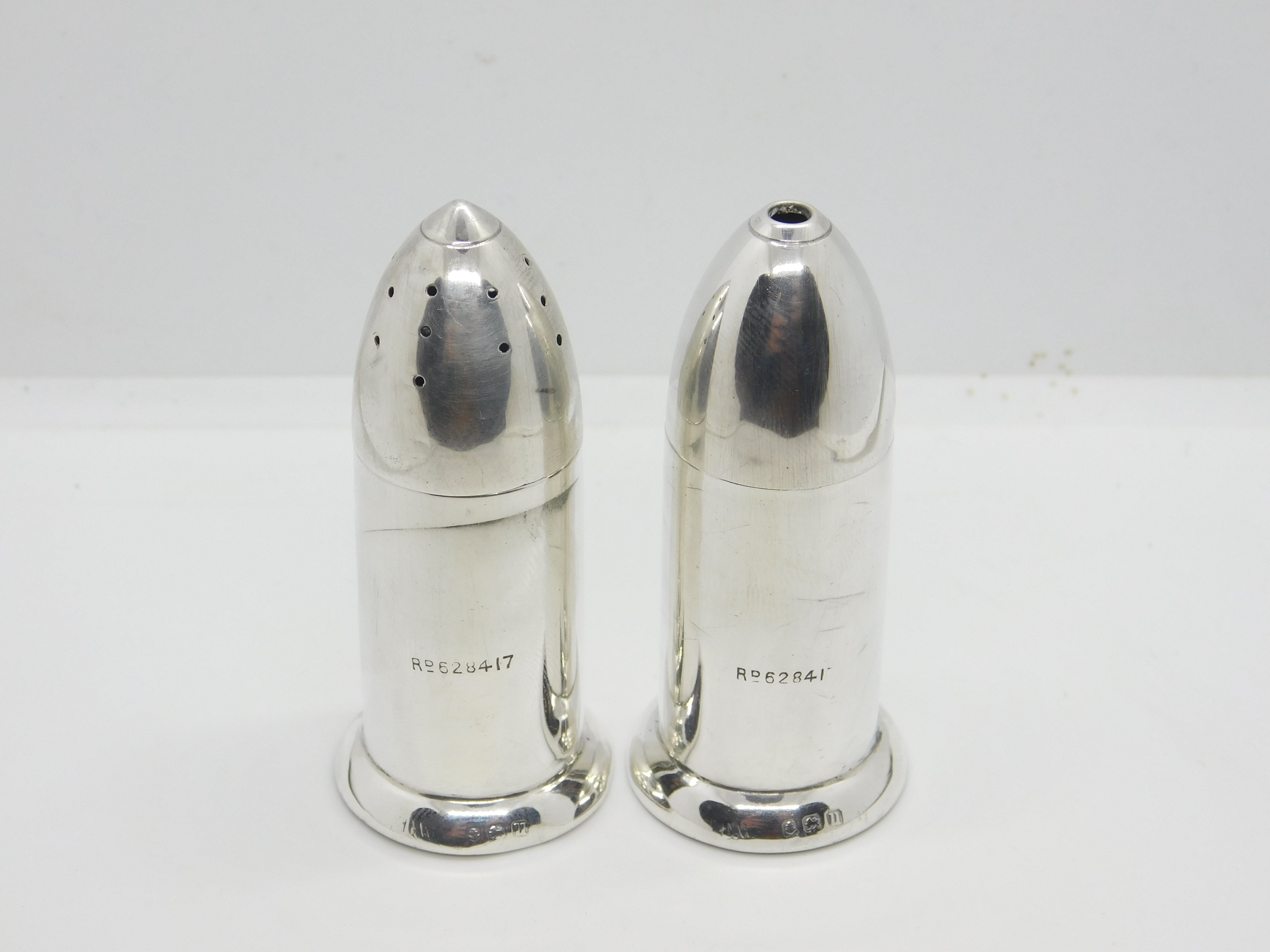 WW1-era Pair of Novelty Sterling Silver Shell Form Salt & Pepper Shakers Antique 1919