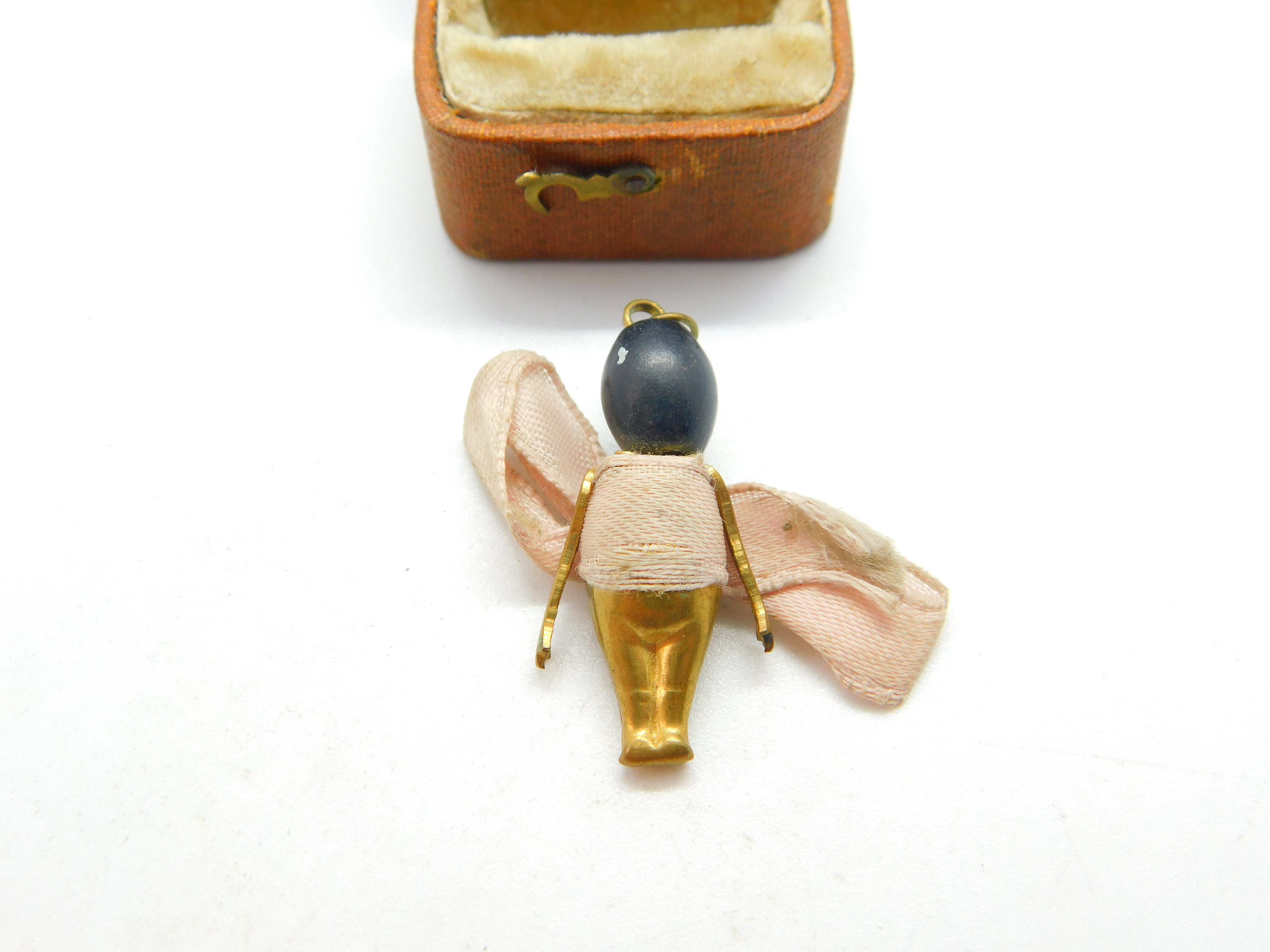 Details: A fantastic and wonderfully designed antique WW1 era brass and wooden head fumsup touch wood charm pendant with lovely detailing c1915 tied up with a charming bow. This is a wonderful item that would make a perfect gift or addition to any collection. The BOX pictured is for PRESENTATION ONLY and is NOT included in the listings but used to frame the pictures unless specifically stated otherwise.