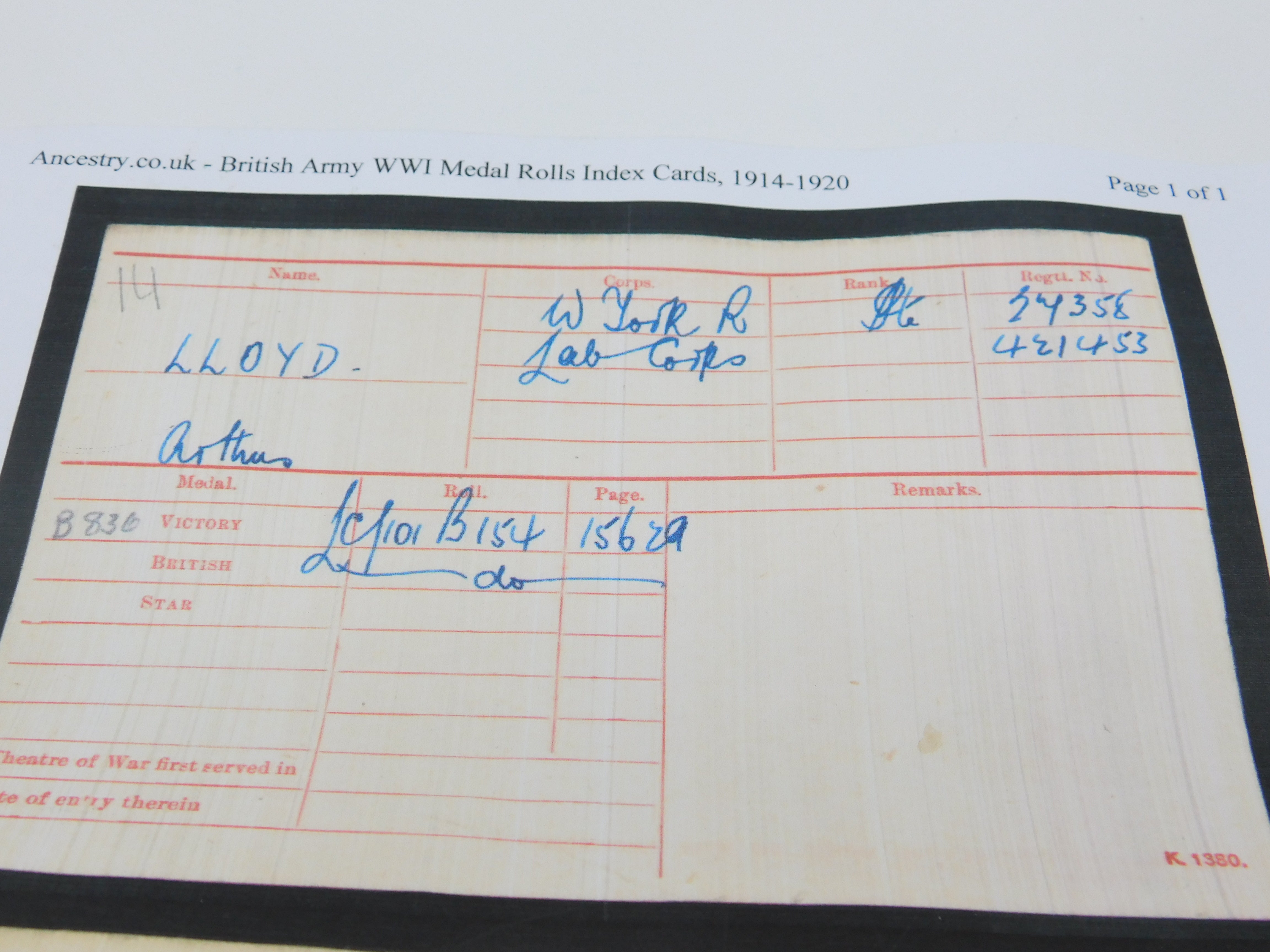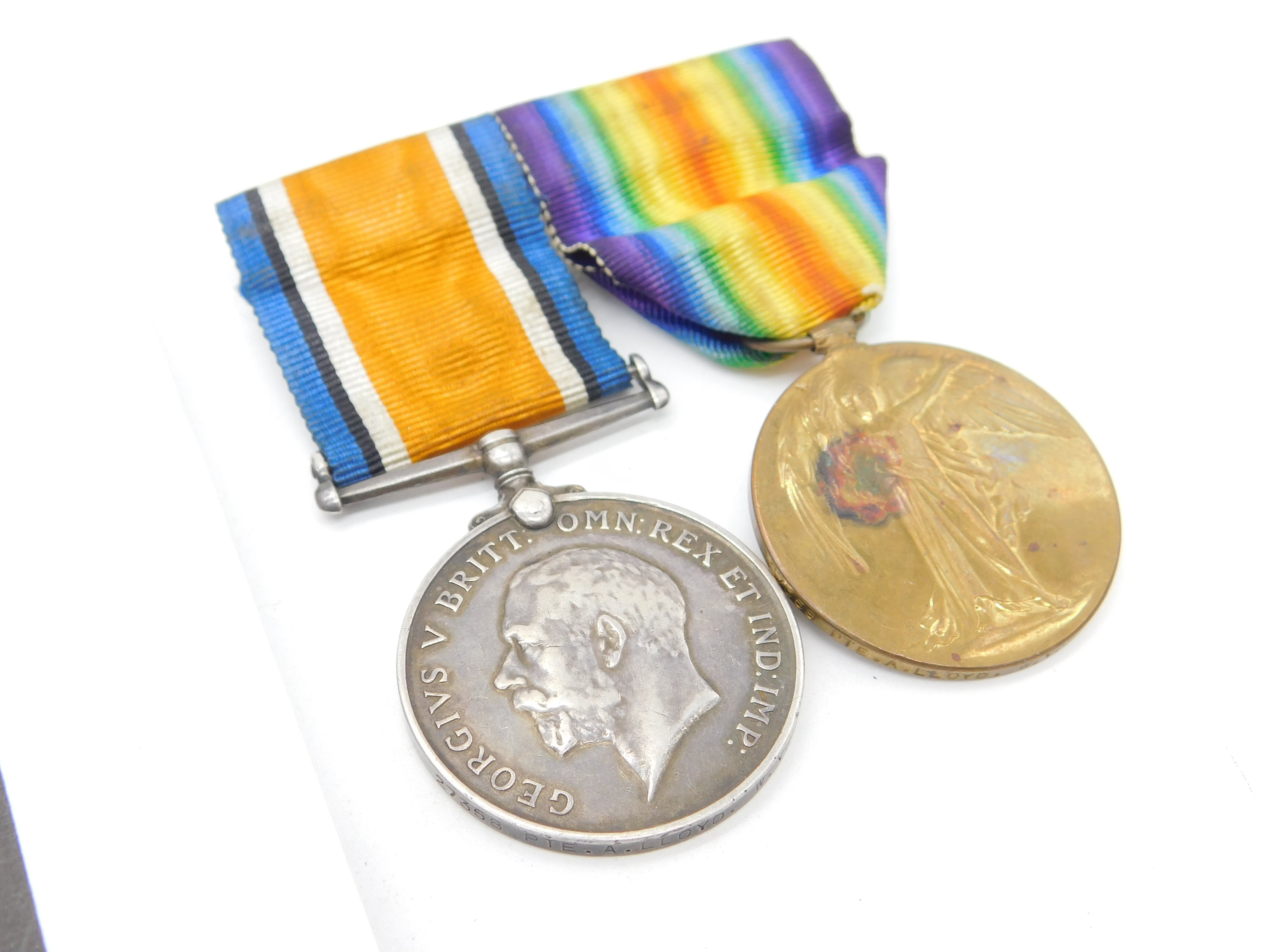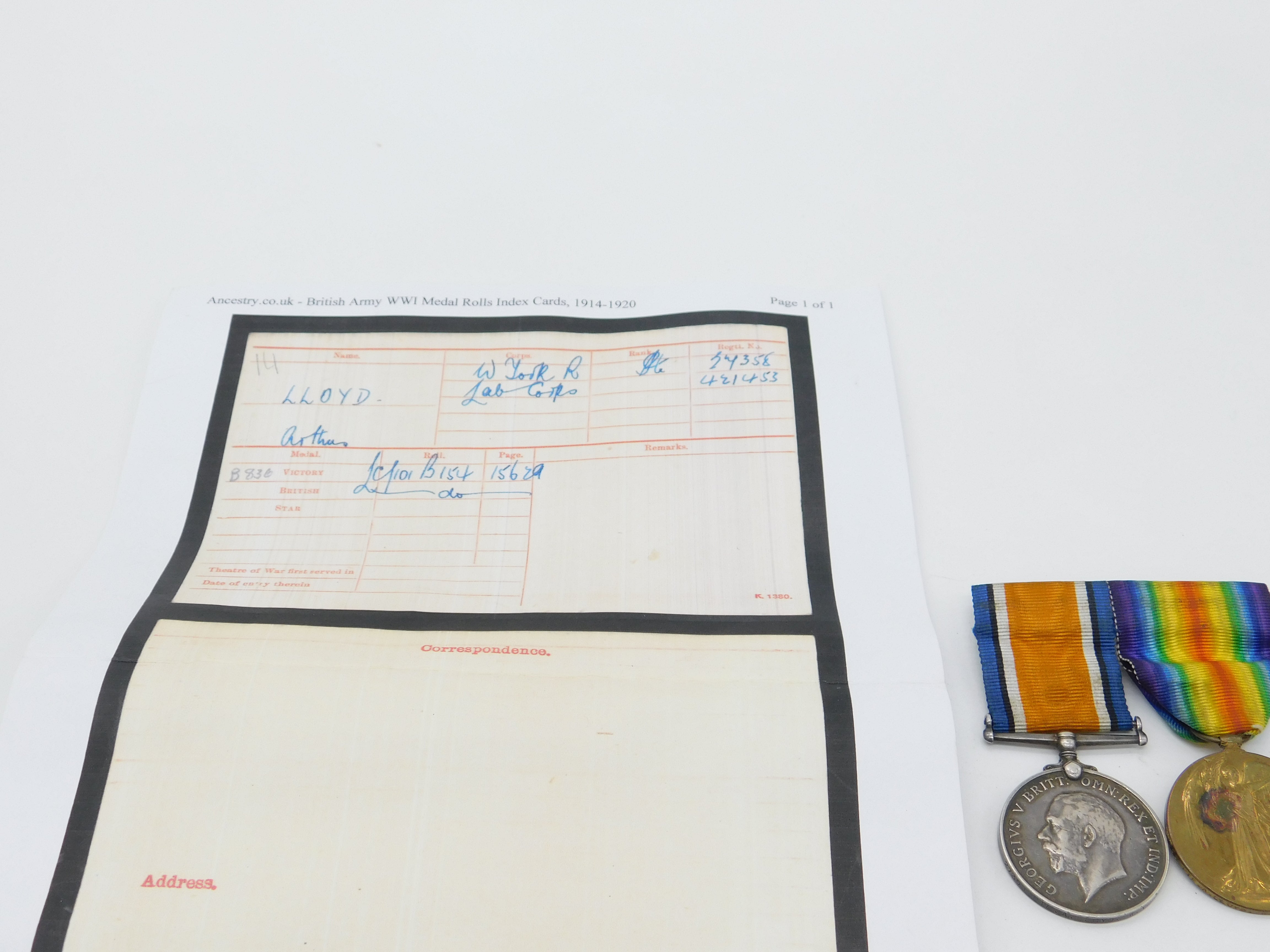WW1 Medal Pair Service & Victory Medal with Paperwork 'Arthur Lloyd' 1918
