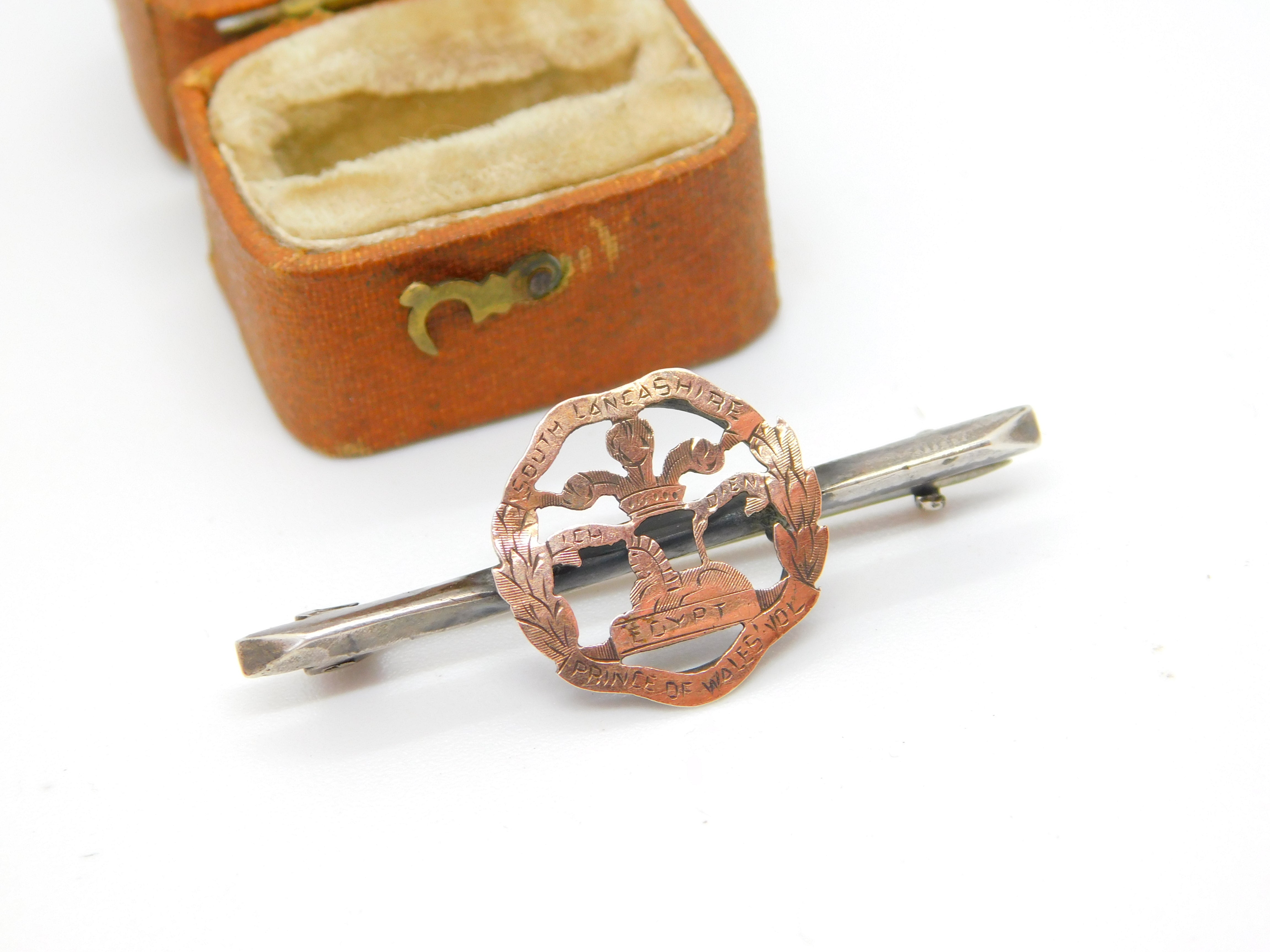 WWI 9ct Gold & Sterling Silver South Lancashire Regiment Sweetheart Brooch 1914