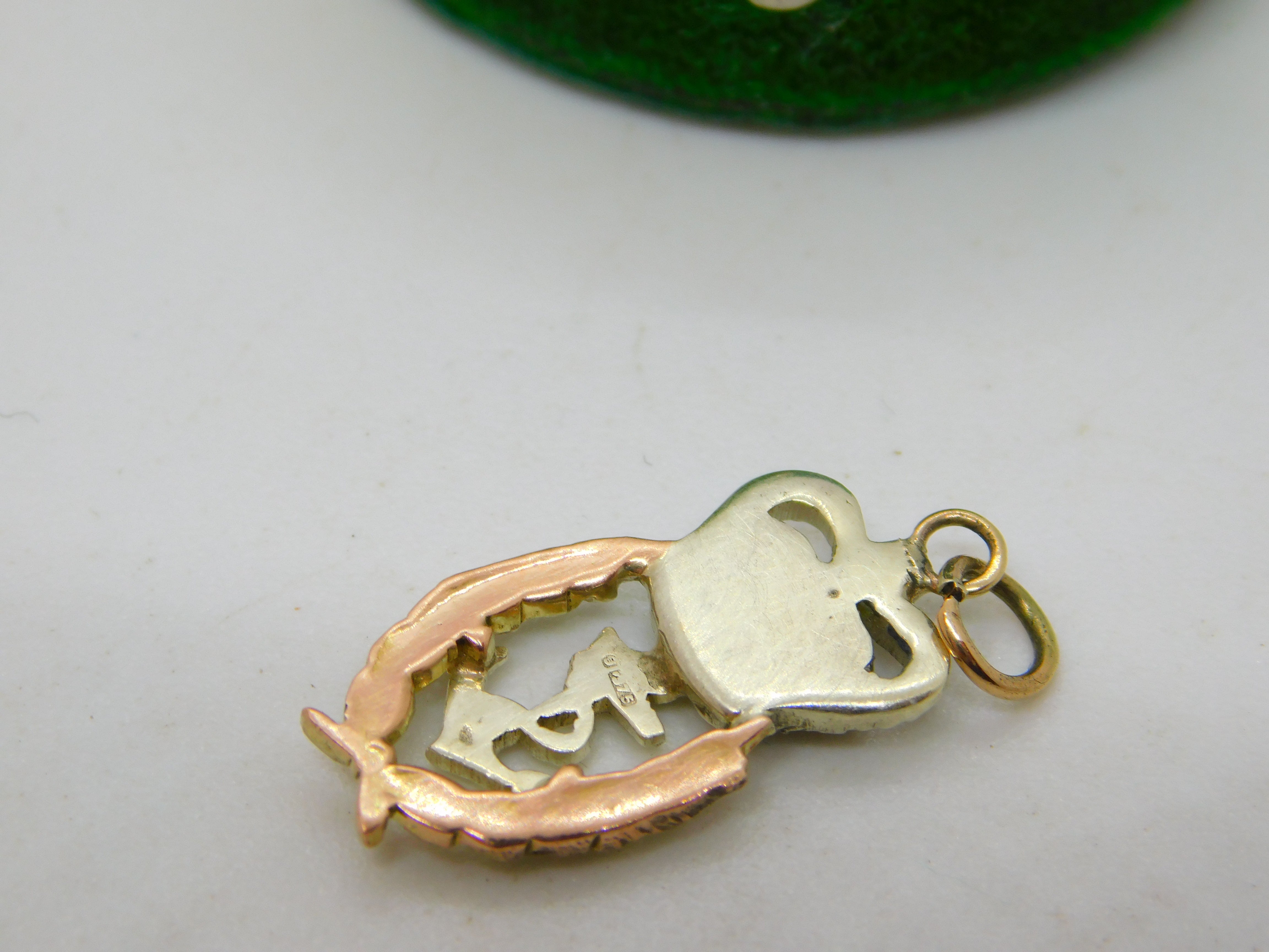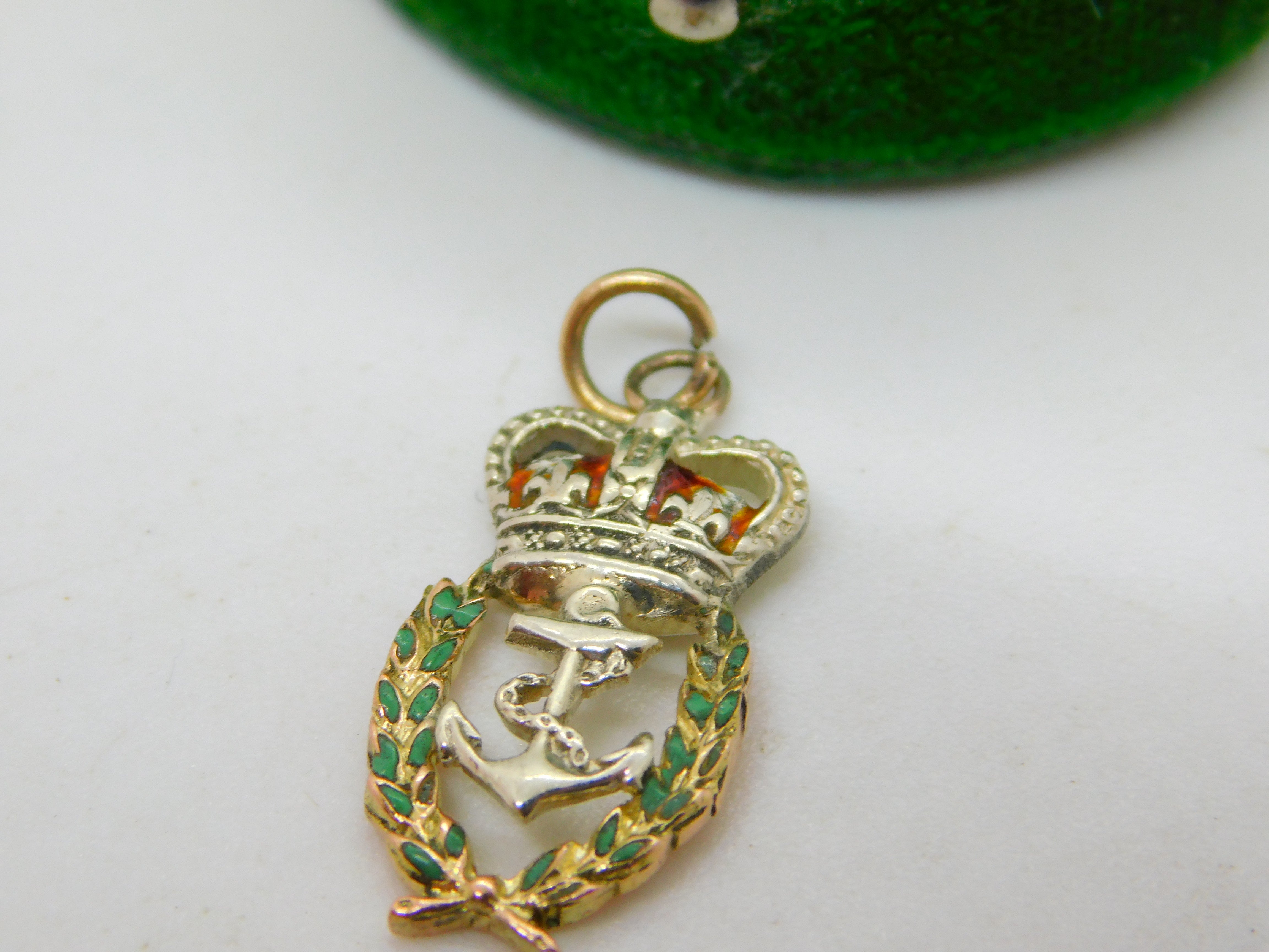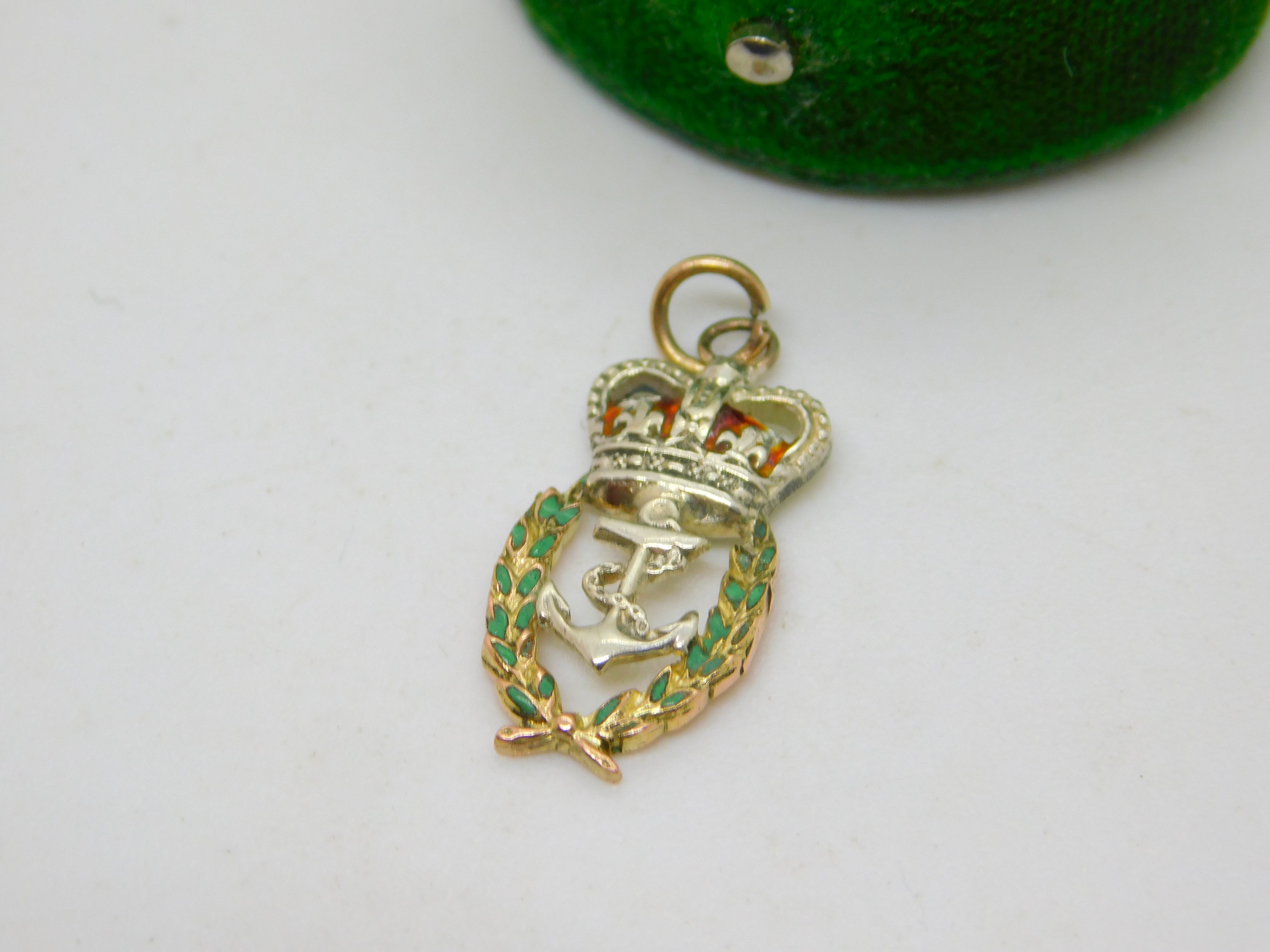 WWII 9ct Bi-Colour Gold & Enamel Royal Navy Sweetheart Pendant Antique c1940