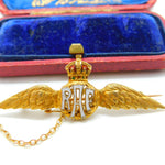 WWII-Era 15ct Yellow Gold & Enamel RAF Sweetheart Brooch Antique c1940