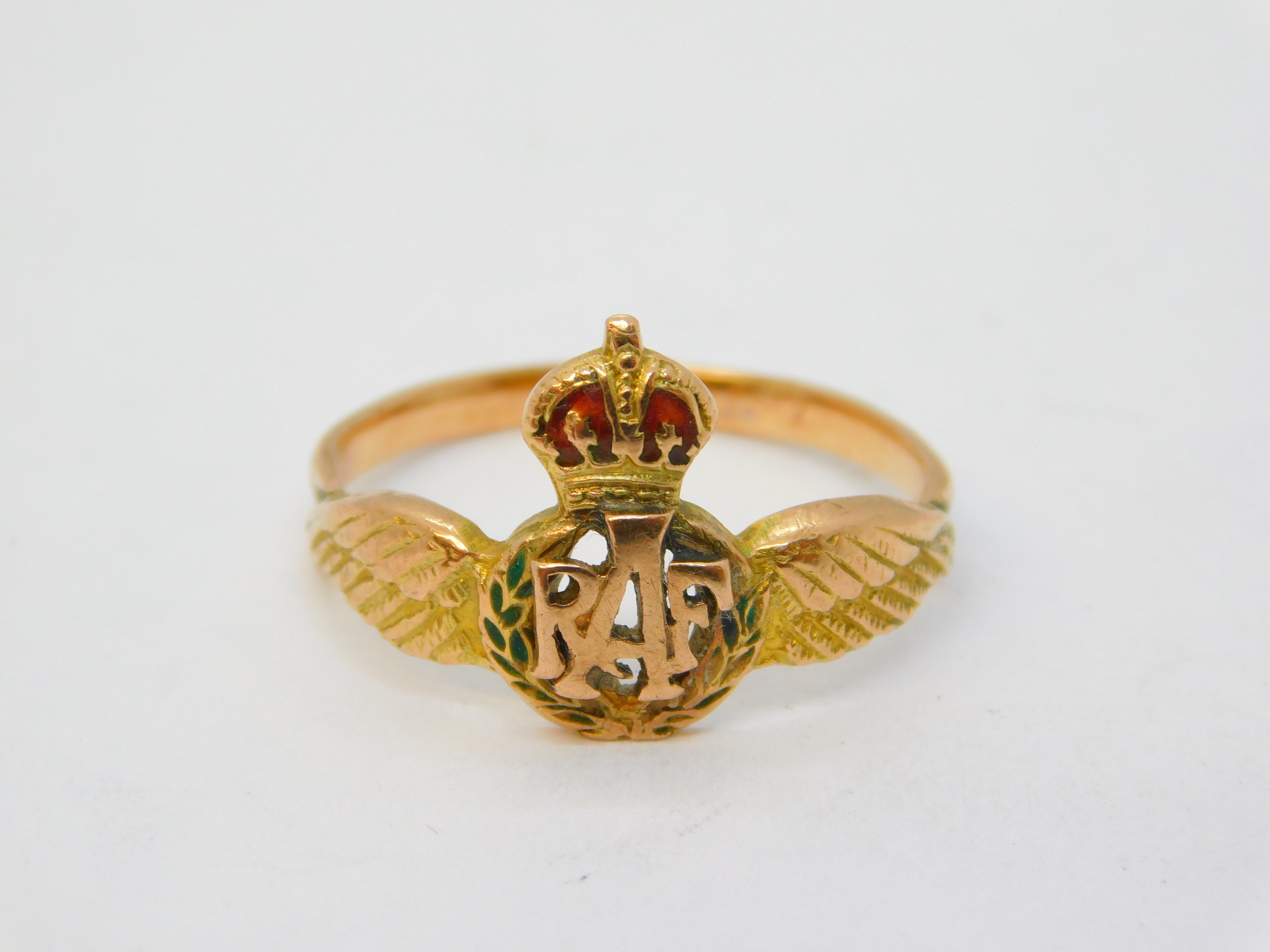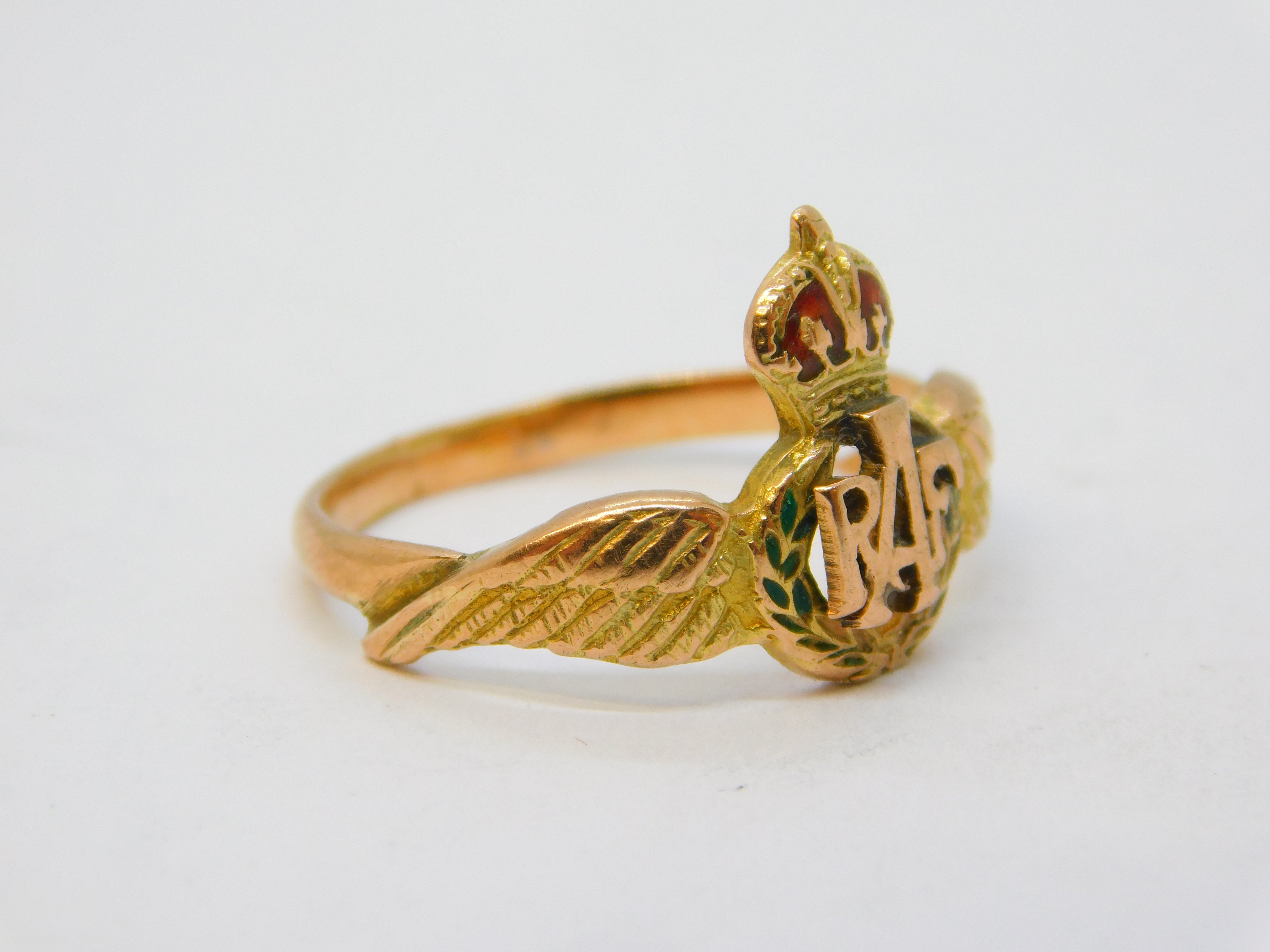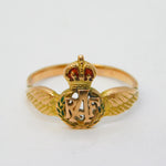 WWII-era 9ct Yellow Gold & Enamel RAF Airforce Signet Ring Antique c1940
