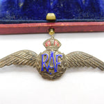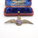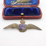 WWII Sterling Silver & Enamel RAF Wings Sweetheart Brooch Antique c1940