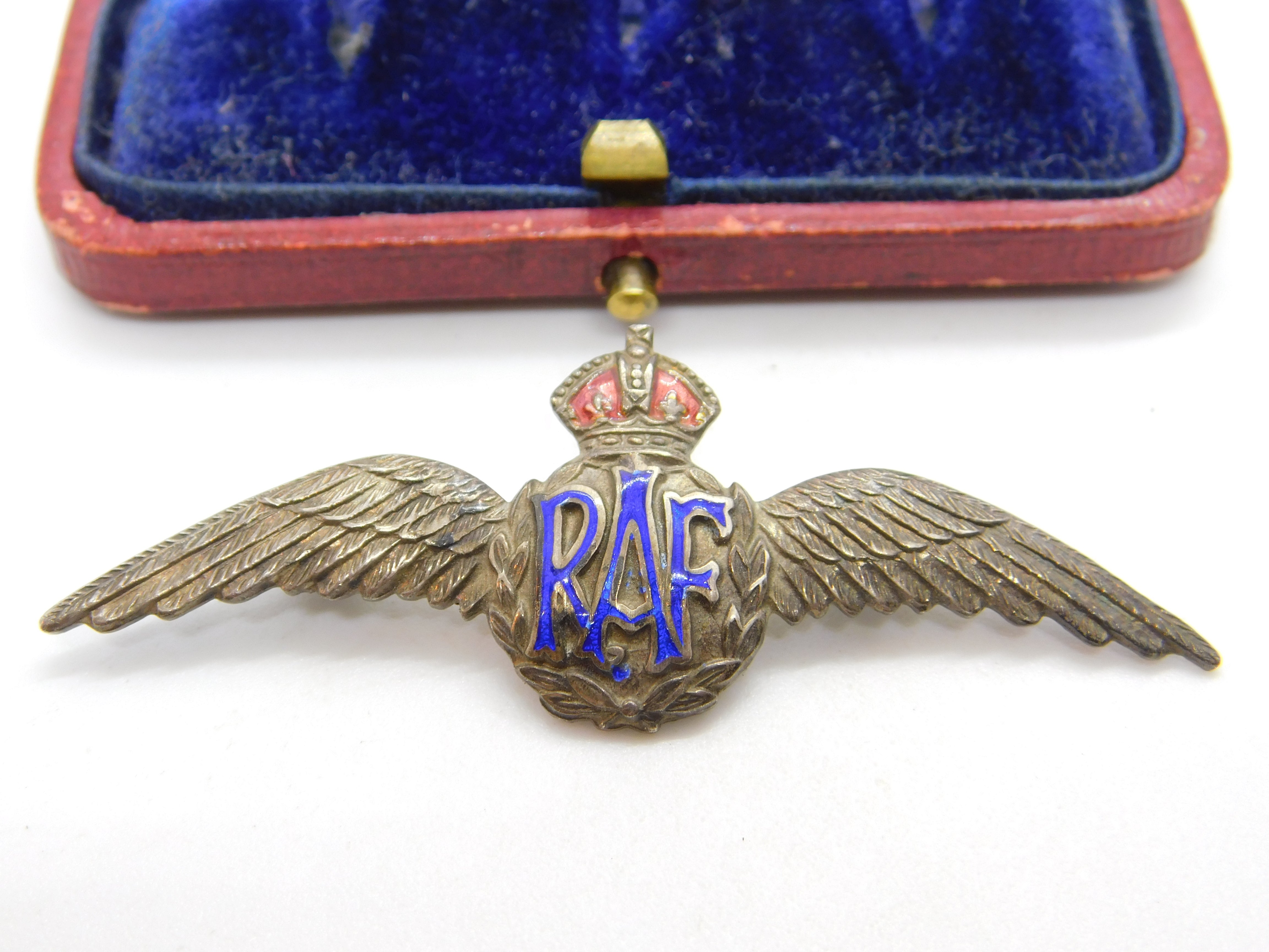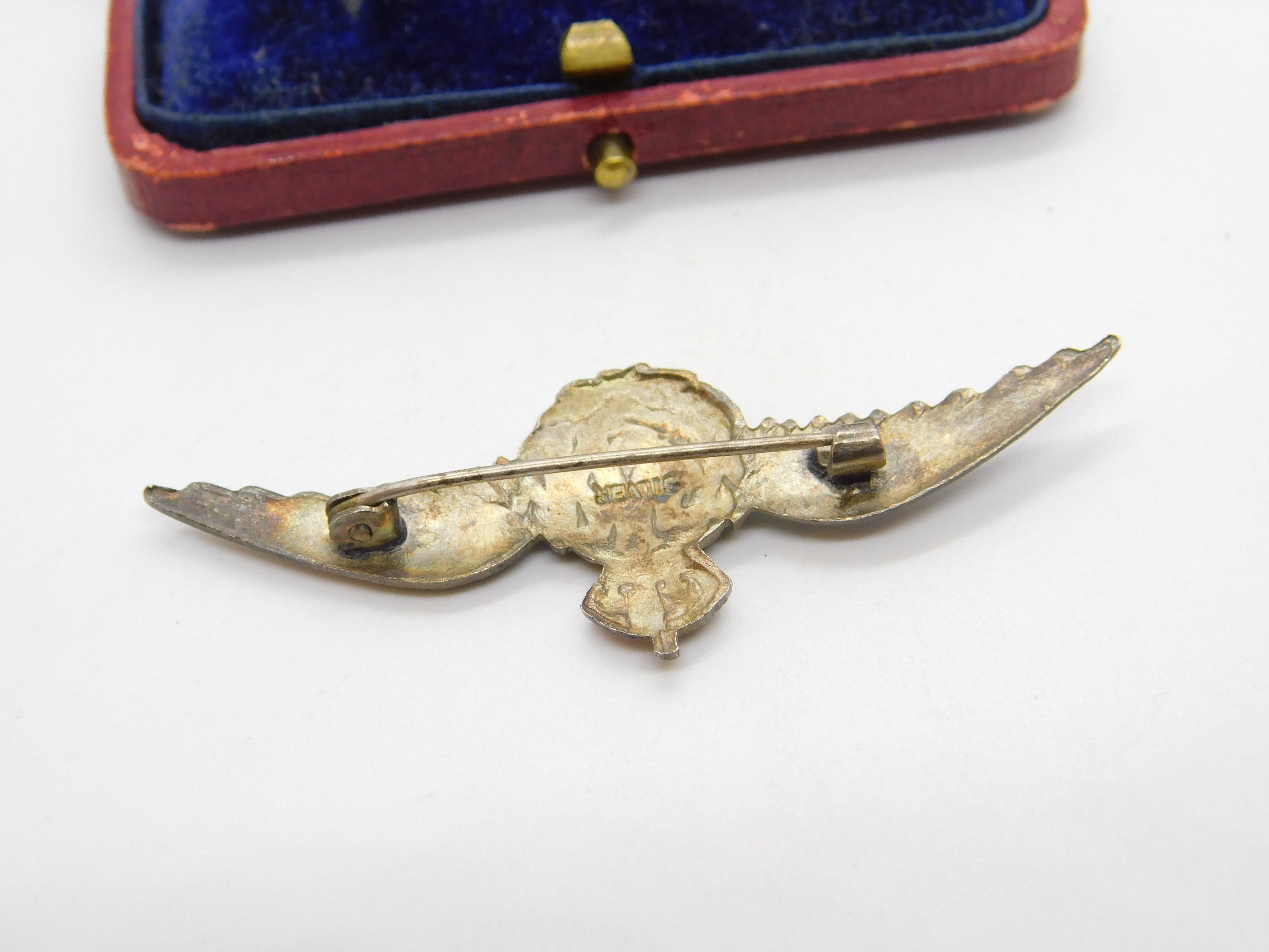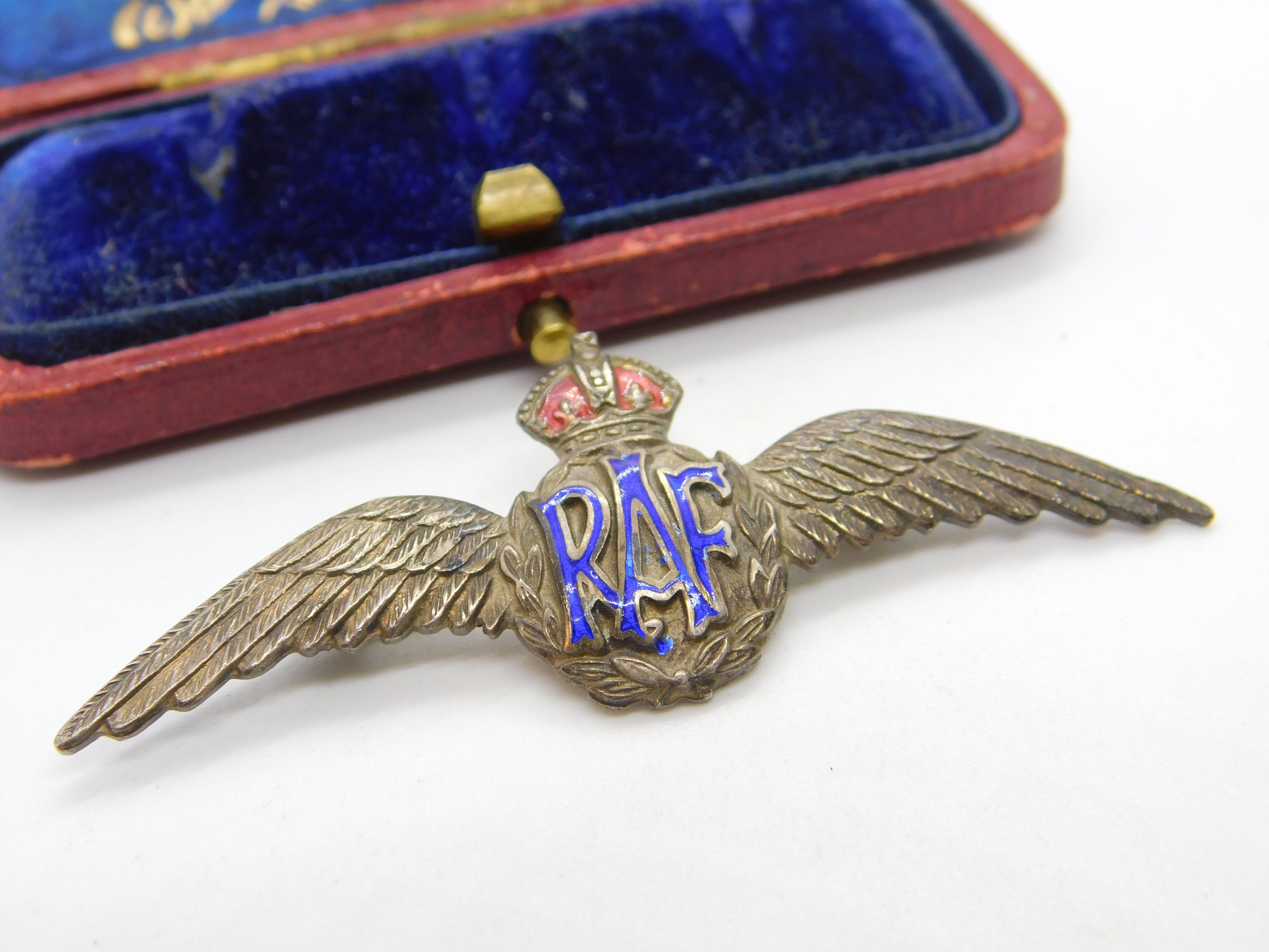 Details: A fantastic and wonderfully designed antique WWII sterling silver & enamel RAF wings sweetheart brooch hallmarked to the reverse c1940. This is a wonderful item that would make a perfect gift or addition to any collection. The BOX pictured is for PRESENTATION ONLY and is NOT included in the listings but used to frame the pictures unless specifically stated otherwise.